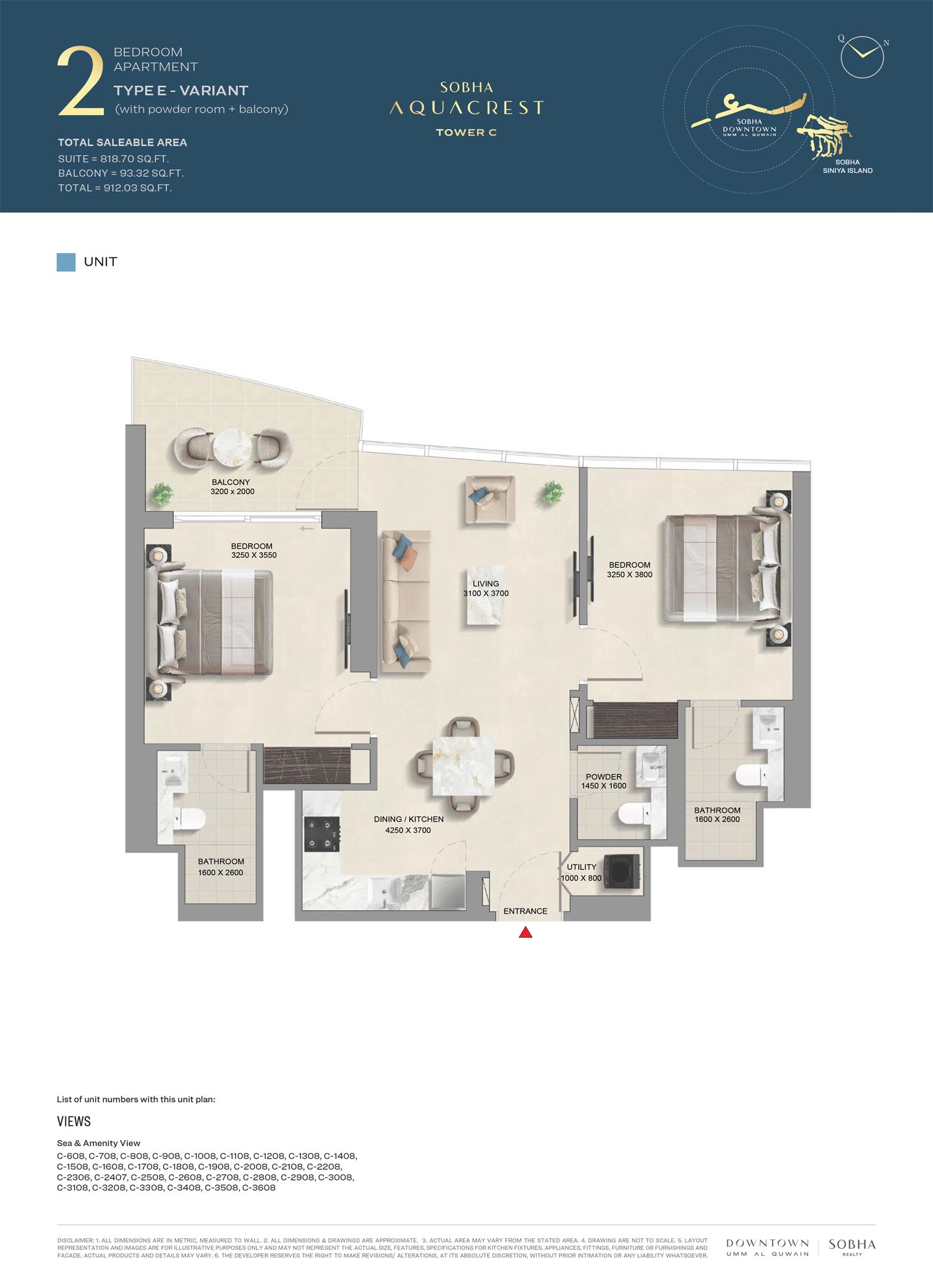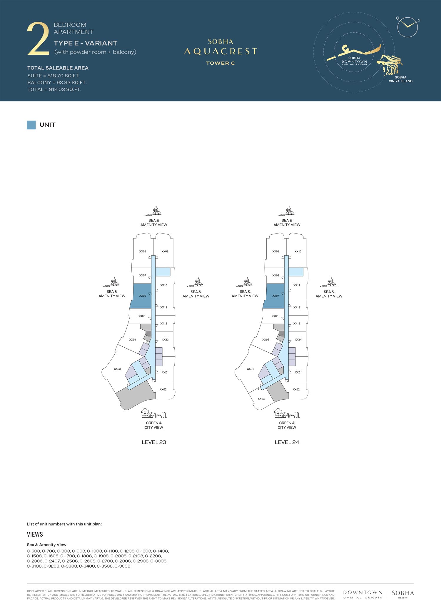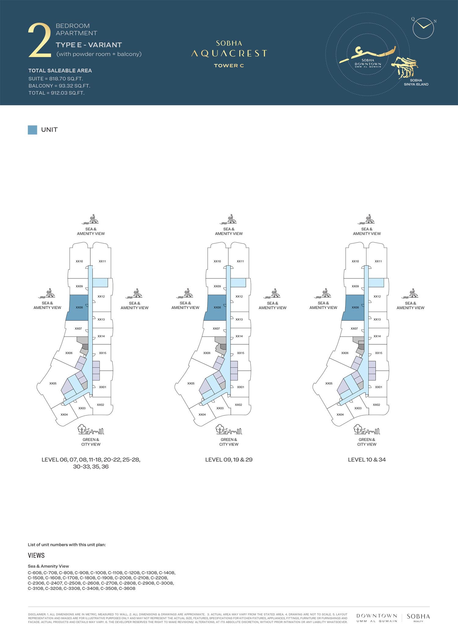 | Tower C | 2 Bedrooms | Level 02-36 (Type E Variant) | 912.03 Sq Ft | Click Here |