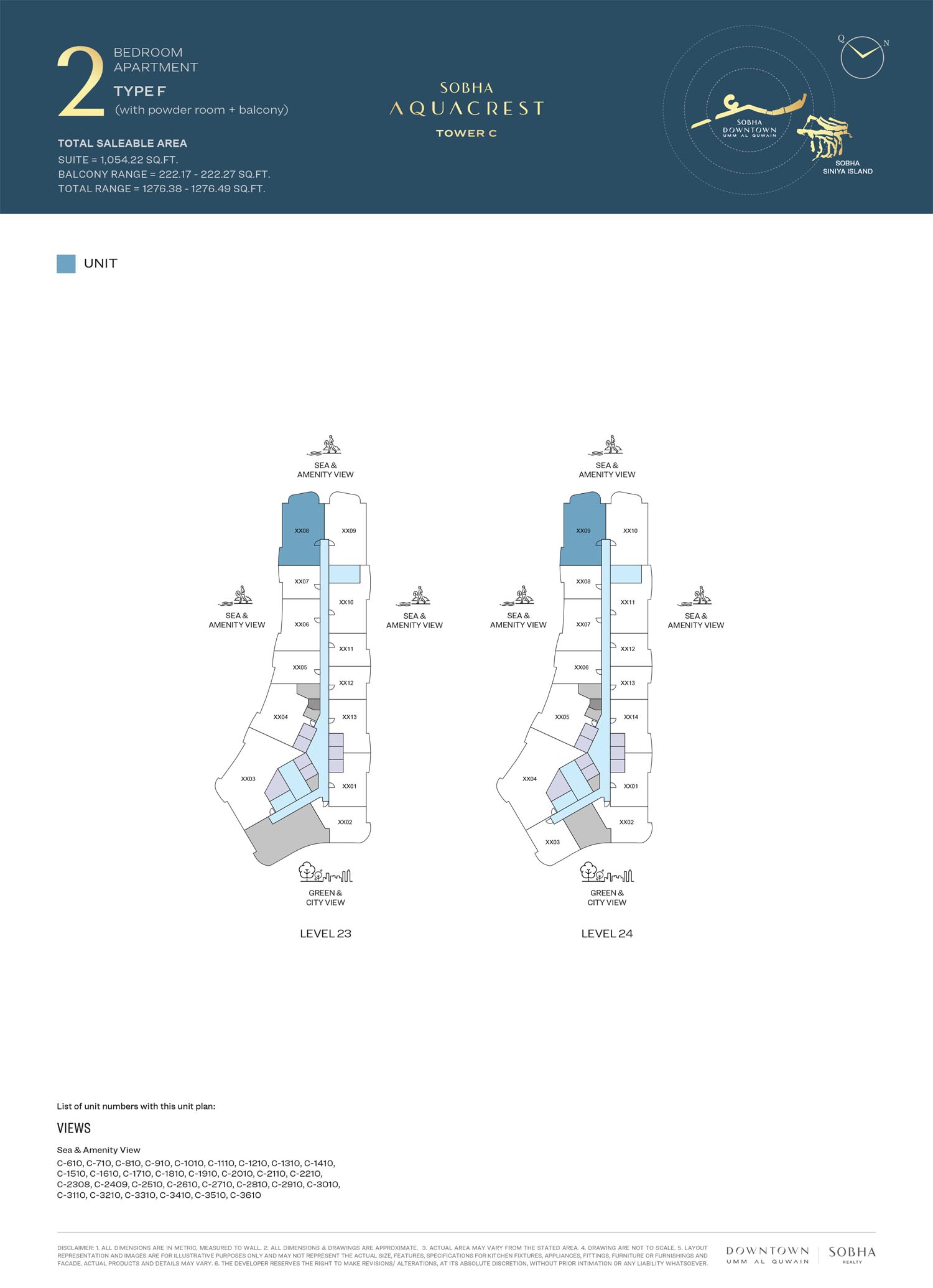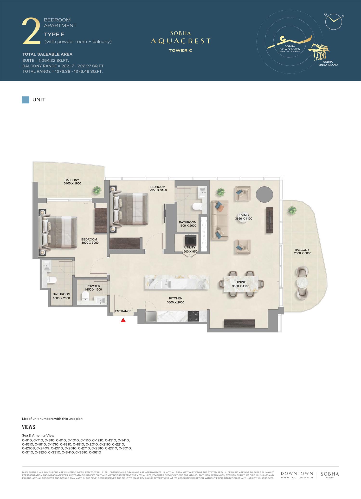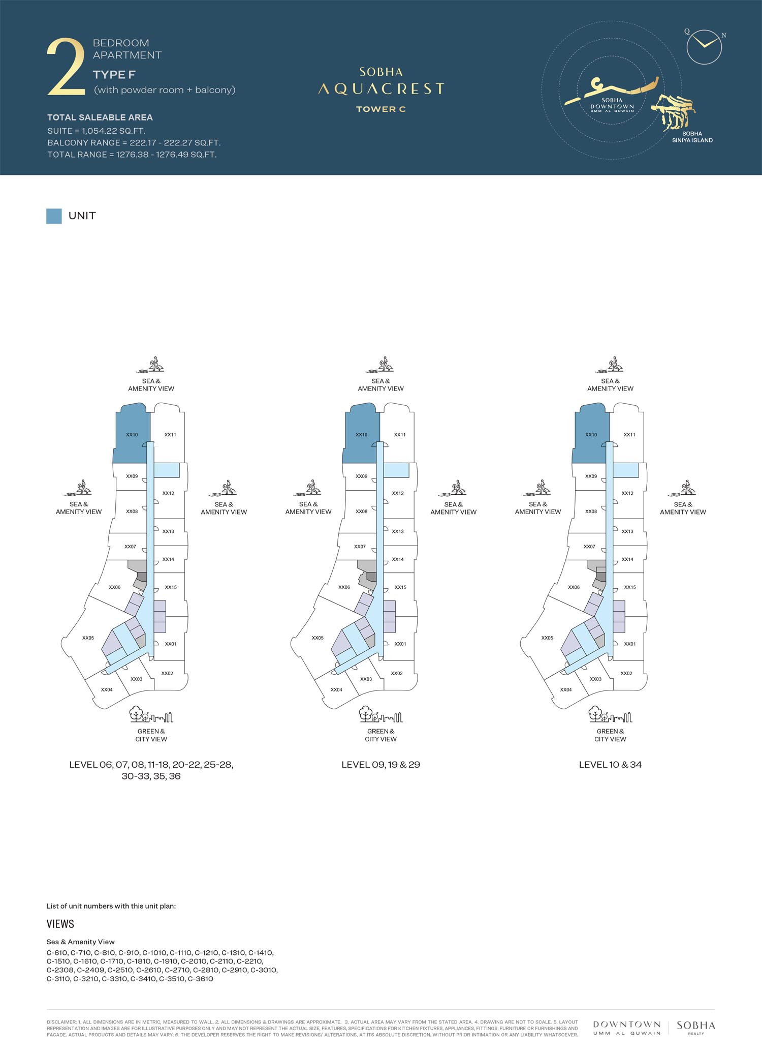 | Tower C | 2 Bedrooms | Level 02-36 (Type F) | 1276.49 Sq Ft | Click Here |