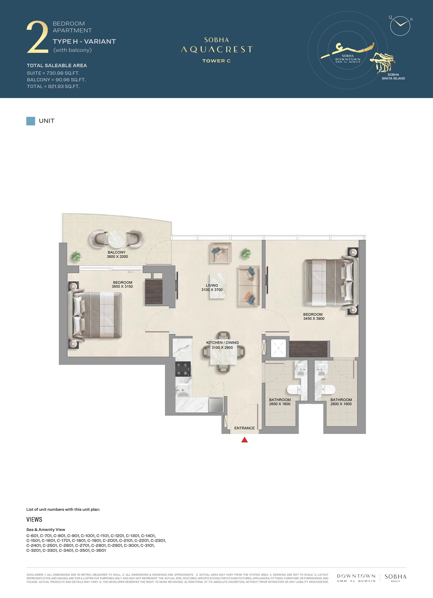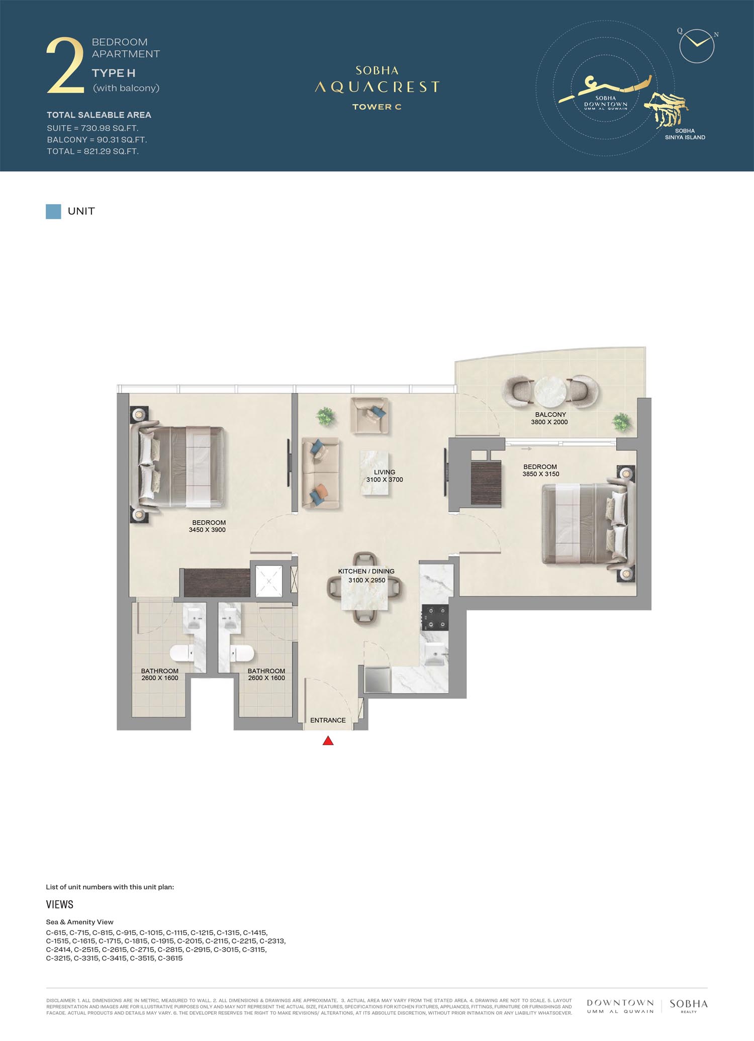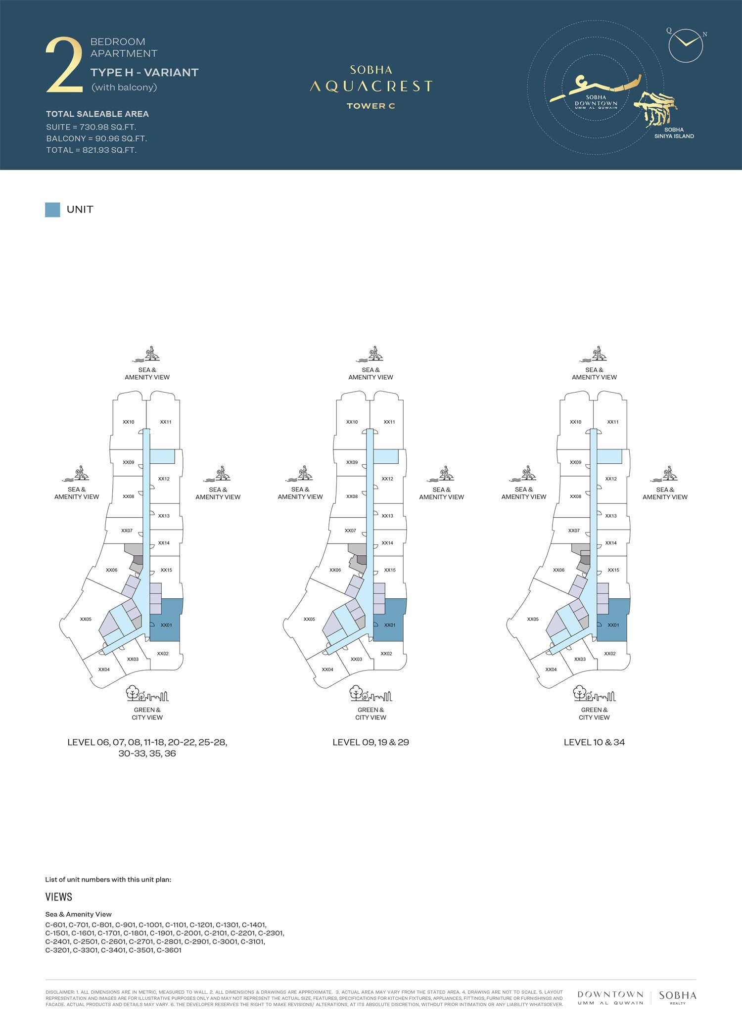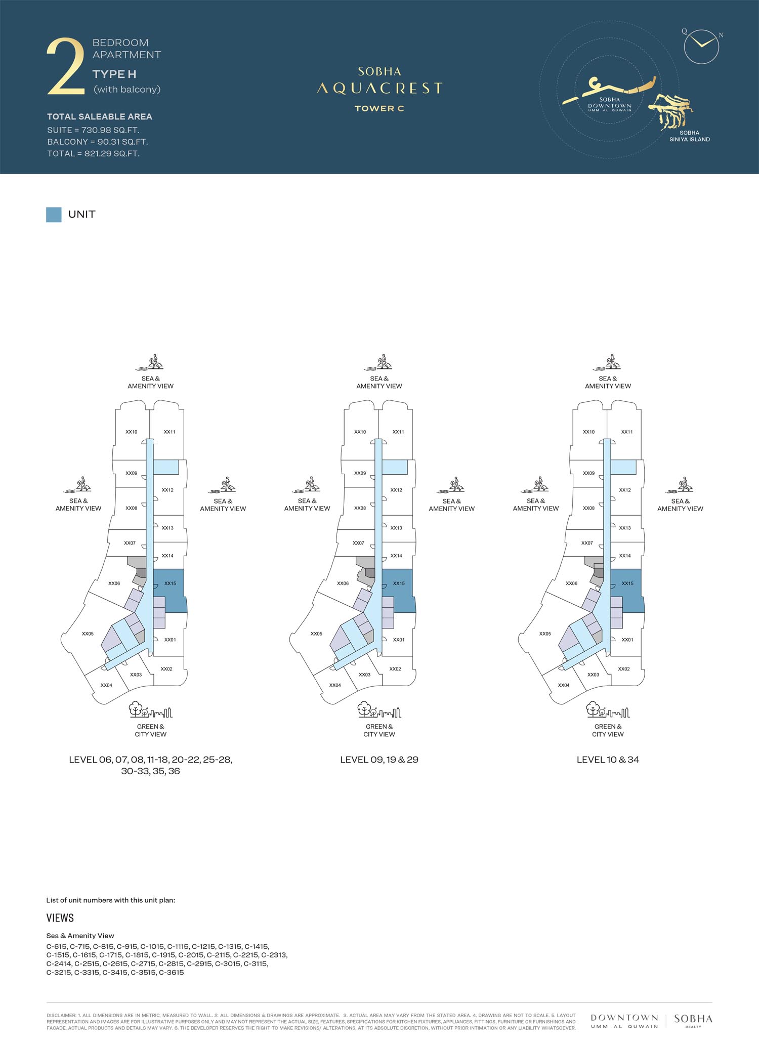 | Tower C | 2 Bedrooms | Level 02-36 (Type H Variant) | 821.93 Sq Ft | Click Here |