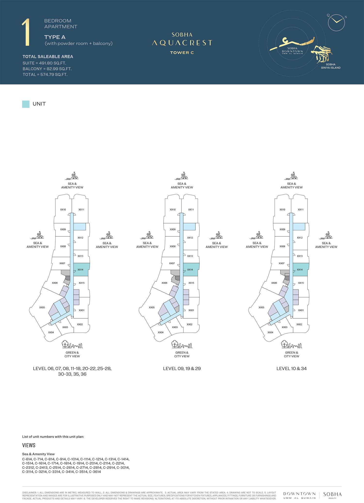 | Tower C | 1 Bedroom | Level 06-36 (Type A) | 574.79 Sq Ft | Click Here |