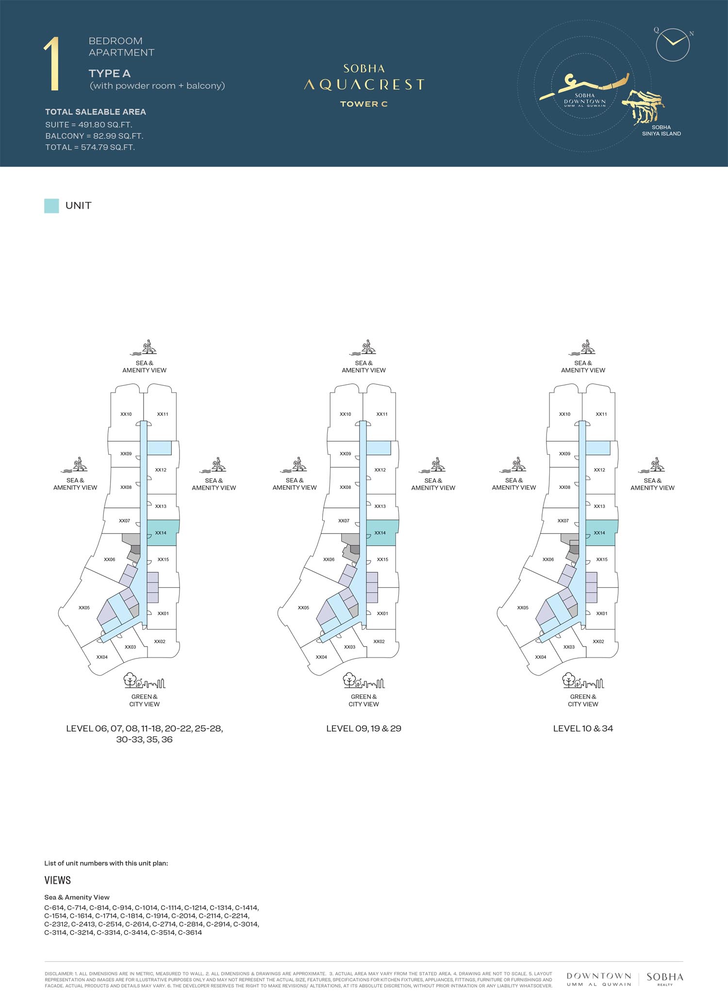 | Tower C | 1 Bedroom | Level 06-36 (Type A) | 574.97 Sq Ft | Click Here |