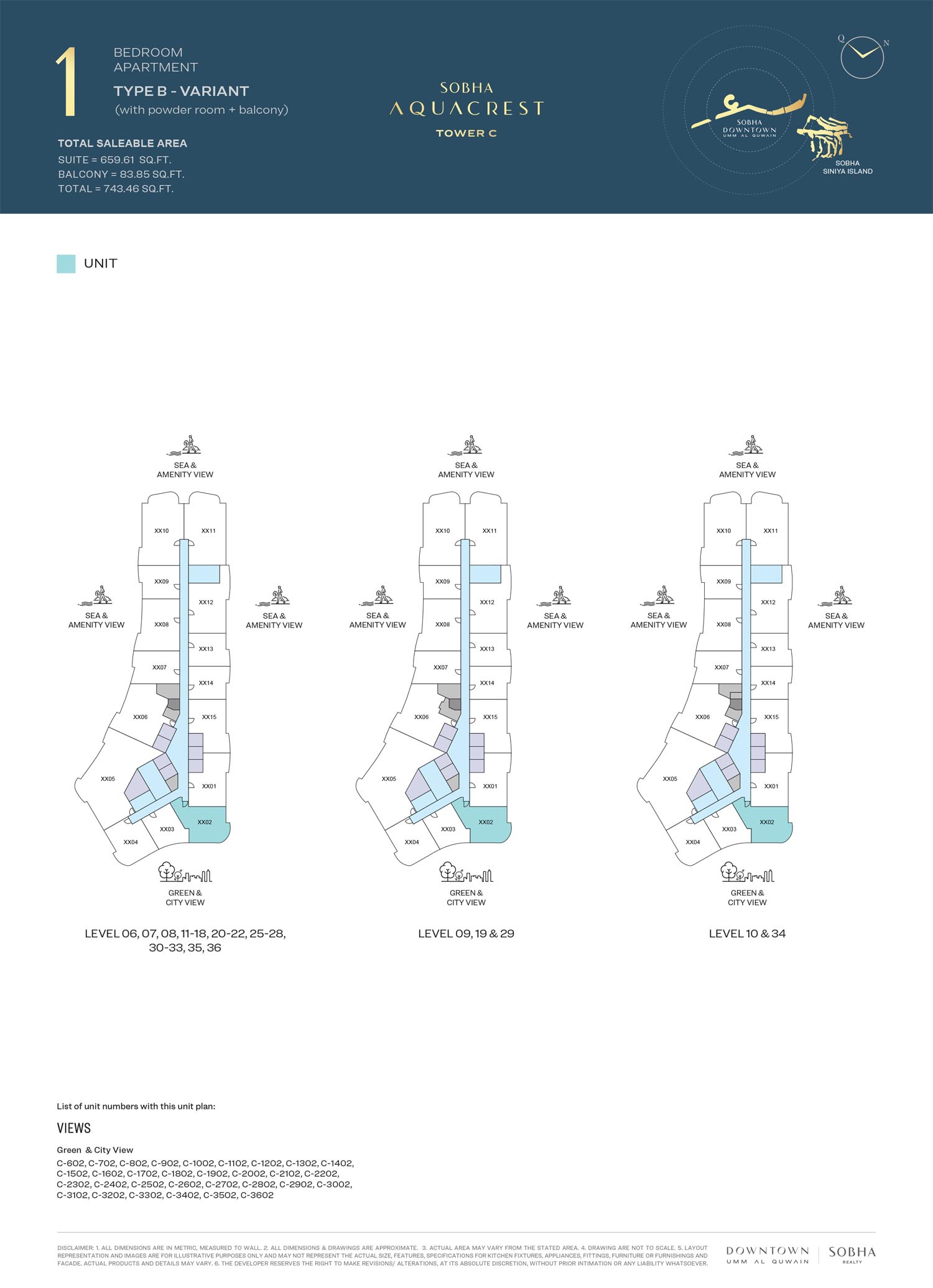 | Tower C | 1 Bedroom | Level 02-36 (Type B Variant) | 743.46 Sq Ft | Click Here |