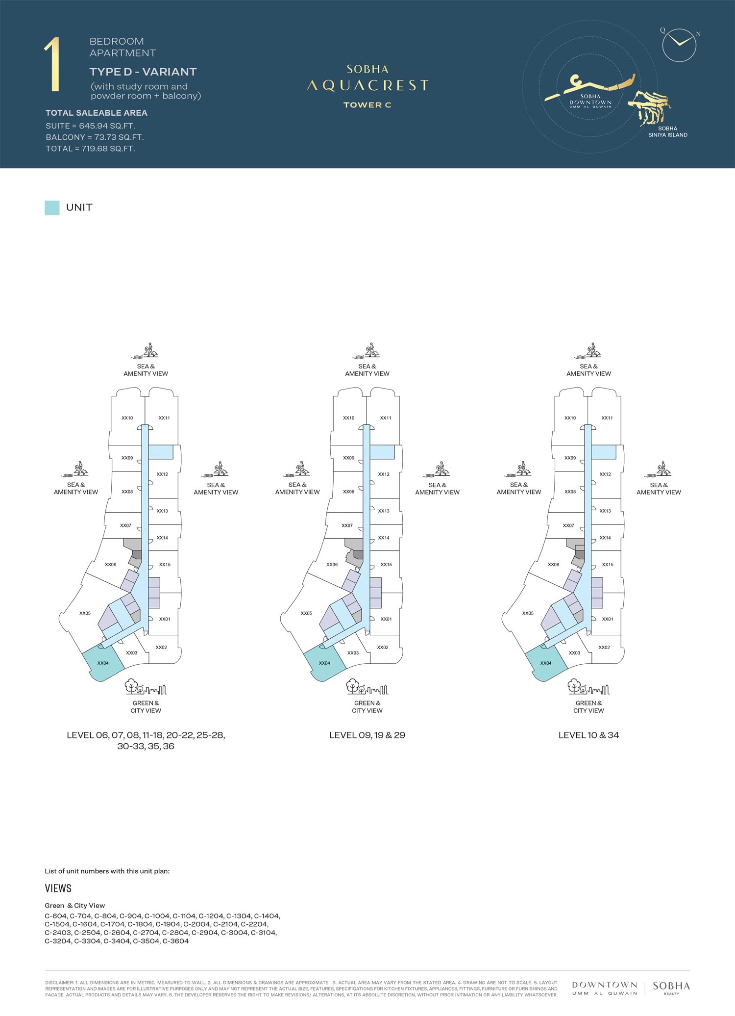 | Tower C | 1 Bedroom | Level 06-36 (Type D Variant) | 719.68 Sq Ft | Click Here |