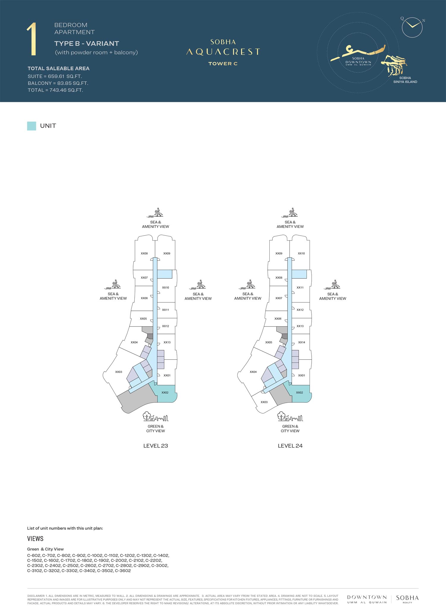 | Tower C | 1 Bedroom | Level 23-24 (Type B Variant) | 743.46 Sq Ft | Click Here |