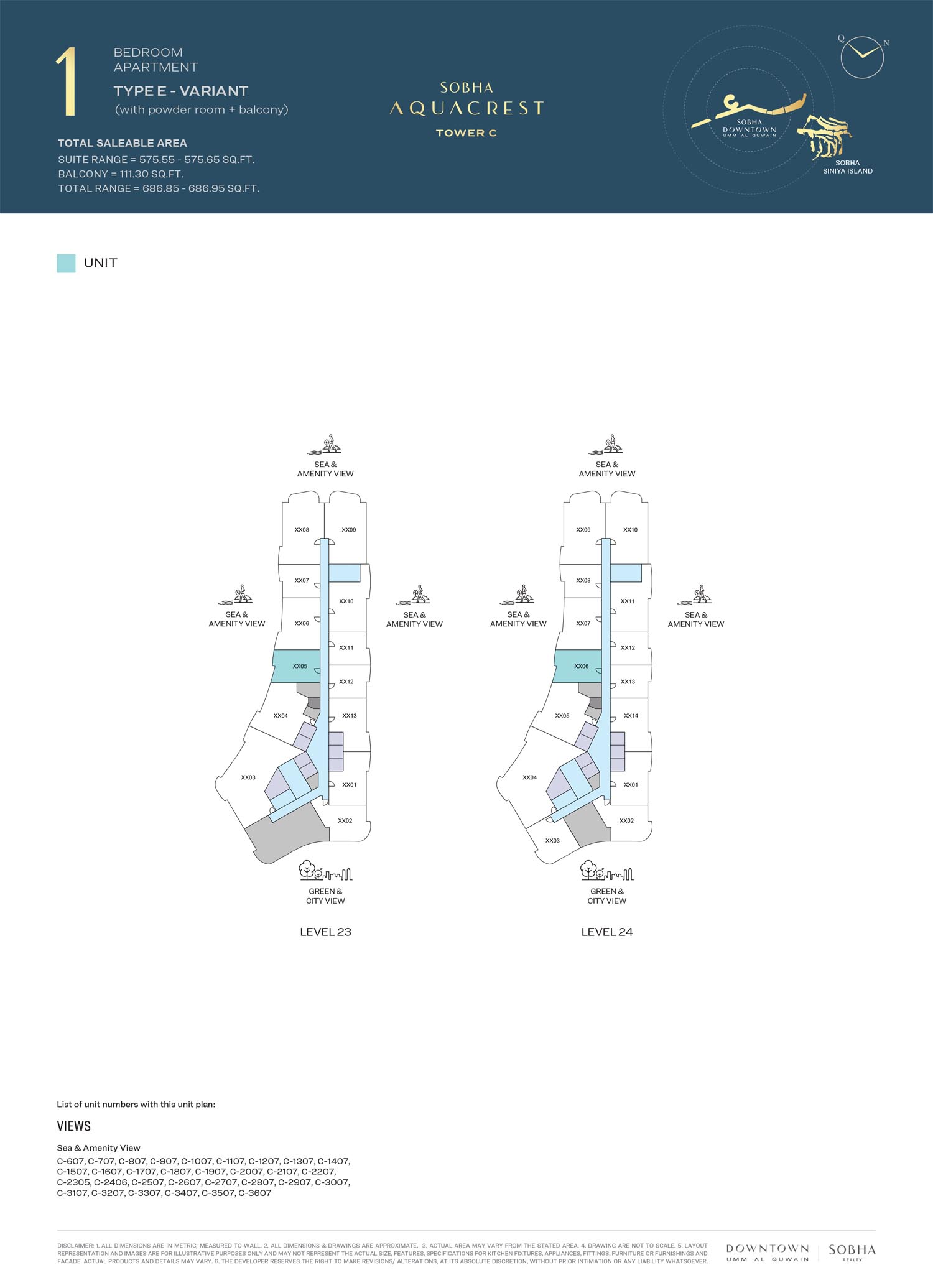| Tower C | 1 Bedroom | Level 23-24 (Type E Variant) | 686.95 Sq Ft | Click Here |