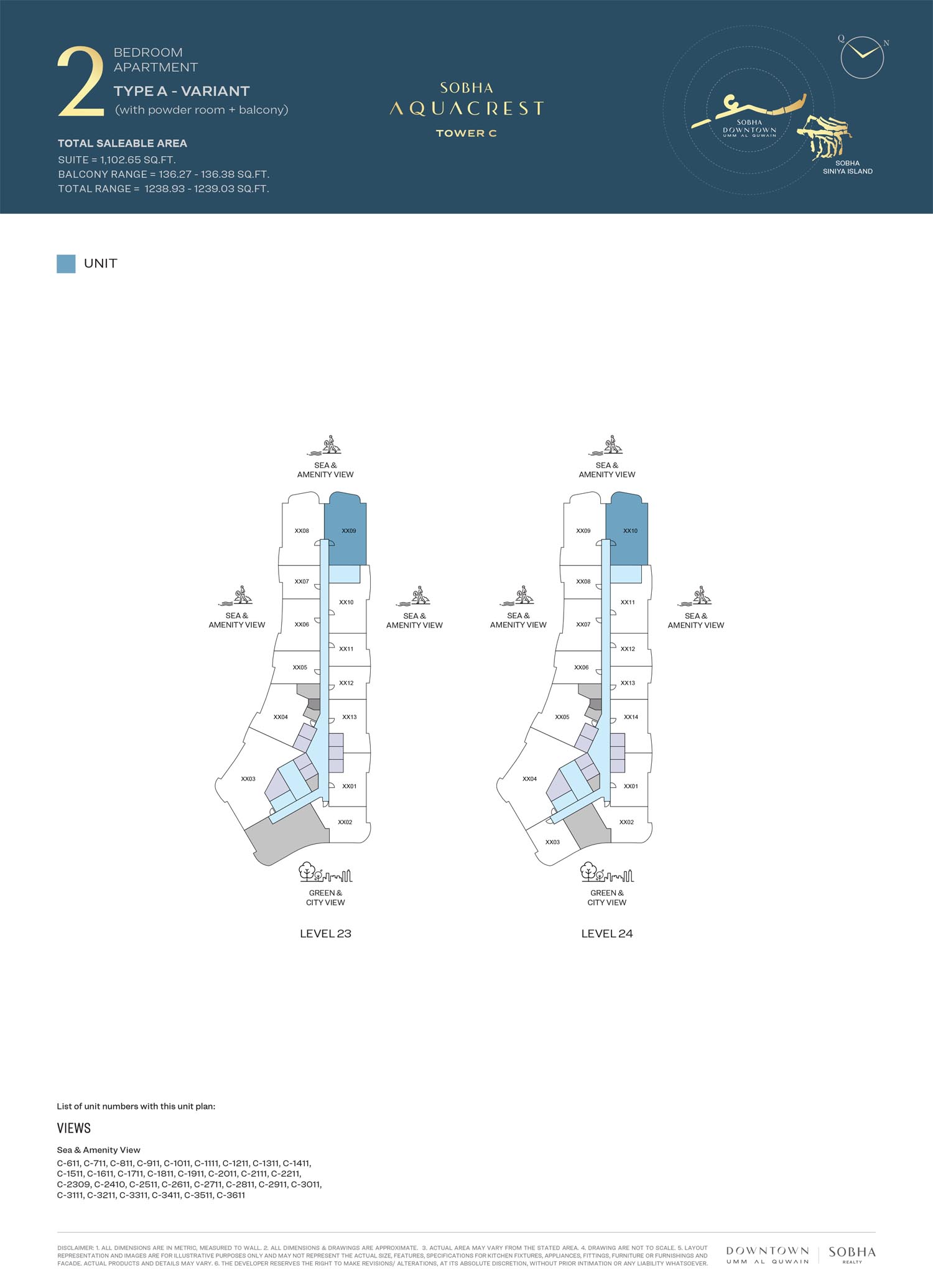 | Tower C | 2 Bedrooms | Level 23-24 (Type A Variant) | 1239.03 Sq Ft | Click Here |