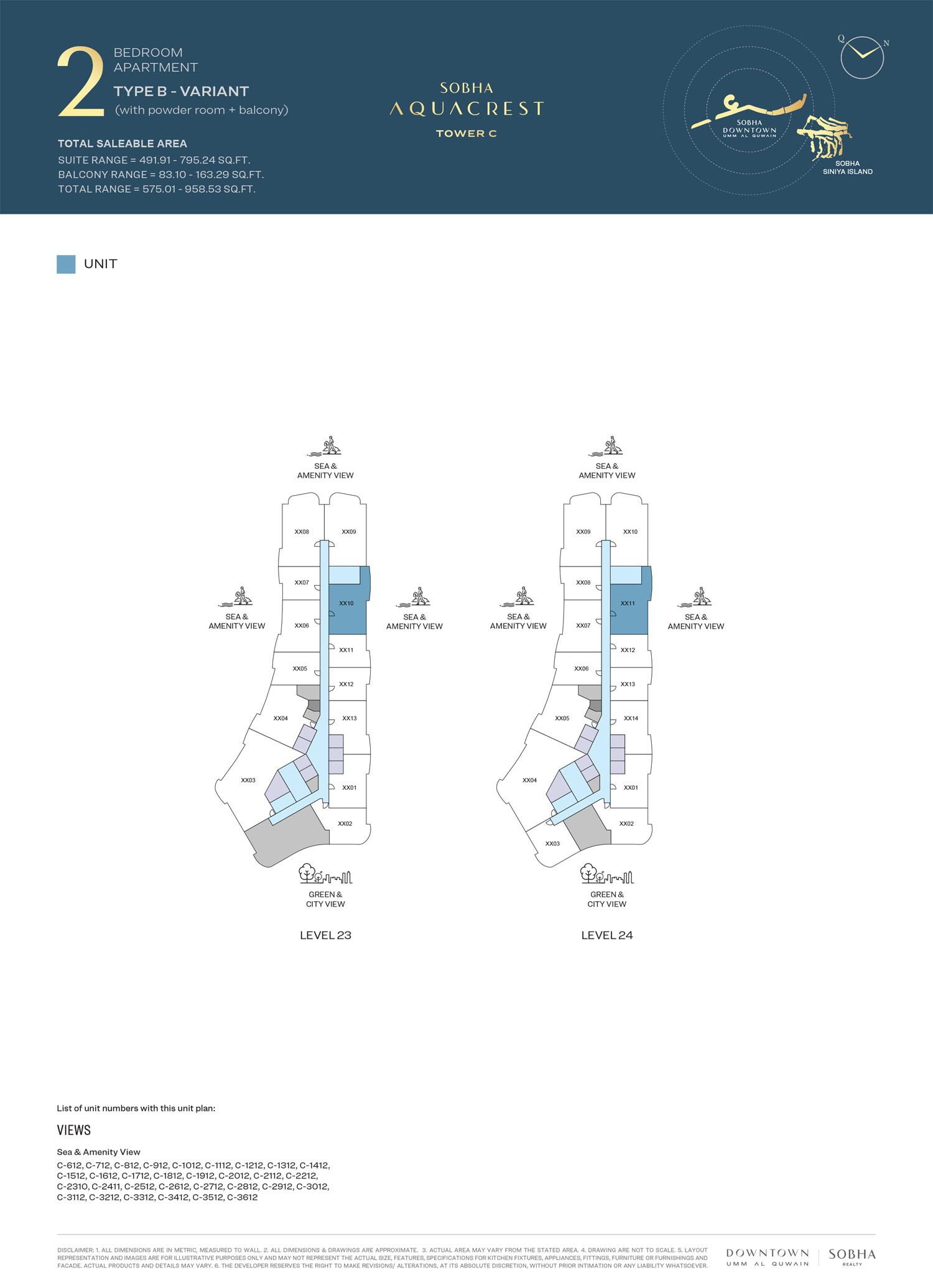 | Tower C | 2 Bedrooms | Level 23-24 (Type B Variant) | 958.53 Sq Ft | Click Here |