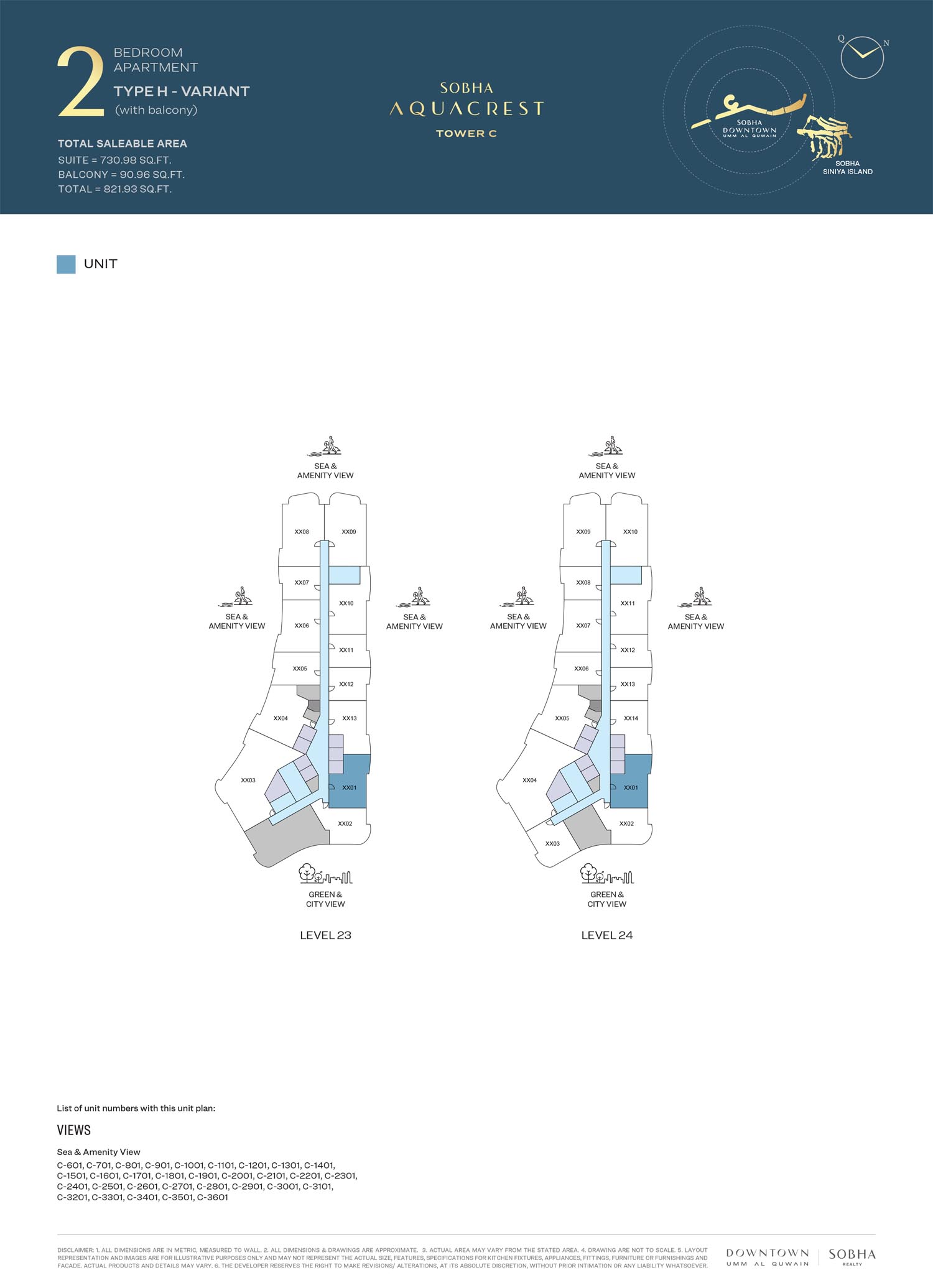 | Tower C | 1 Bedroom | Level 23-24 (Type A Variant) | 582.97 Sq Ft | Click Here |