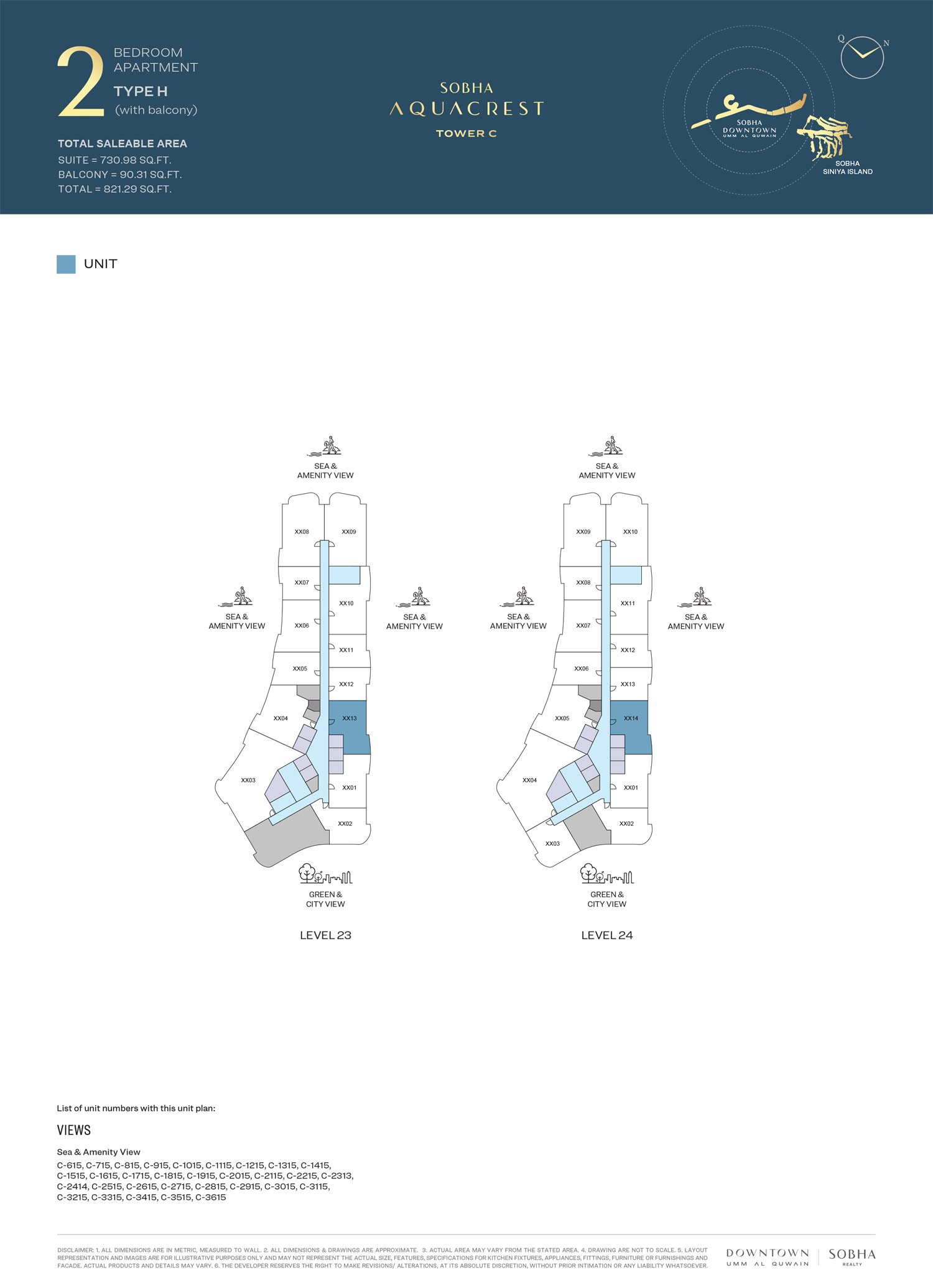 | Tower C | 2 Bedrooms | Level 23-24 (Type H Variant) | 821.93 Sq Ft | Click Here |