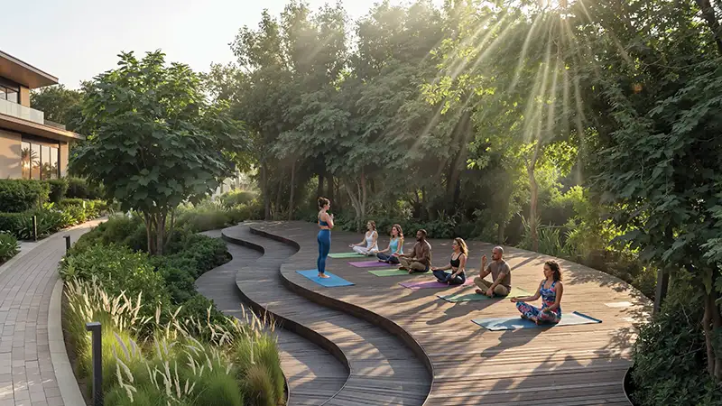 - Thoughtfully designed masterplan integrates wellness loops, cycling tracks, and shaded pathways encouraging active, balanced living.