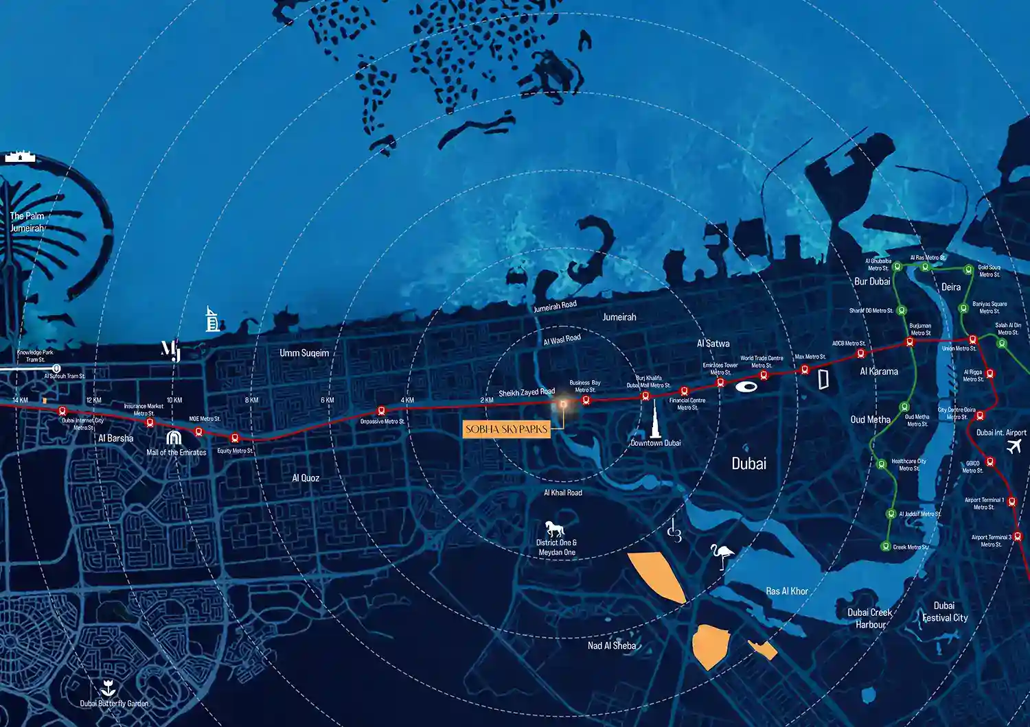 - Location at Sheikh Zayed Road ensures unmatched connectivity - minutes from Business Bay, Downtown, DIFC, D3, and just 20 minutes to Dubai International Airport.