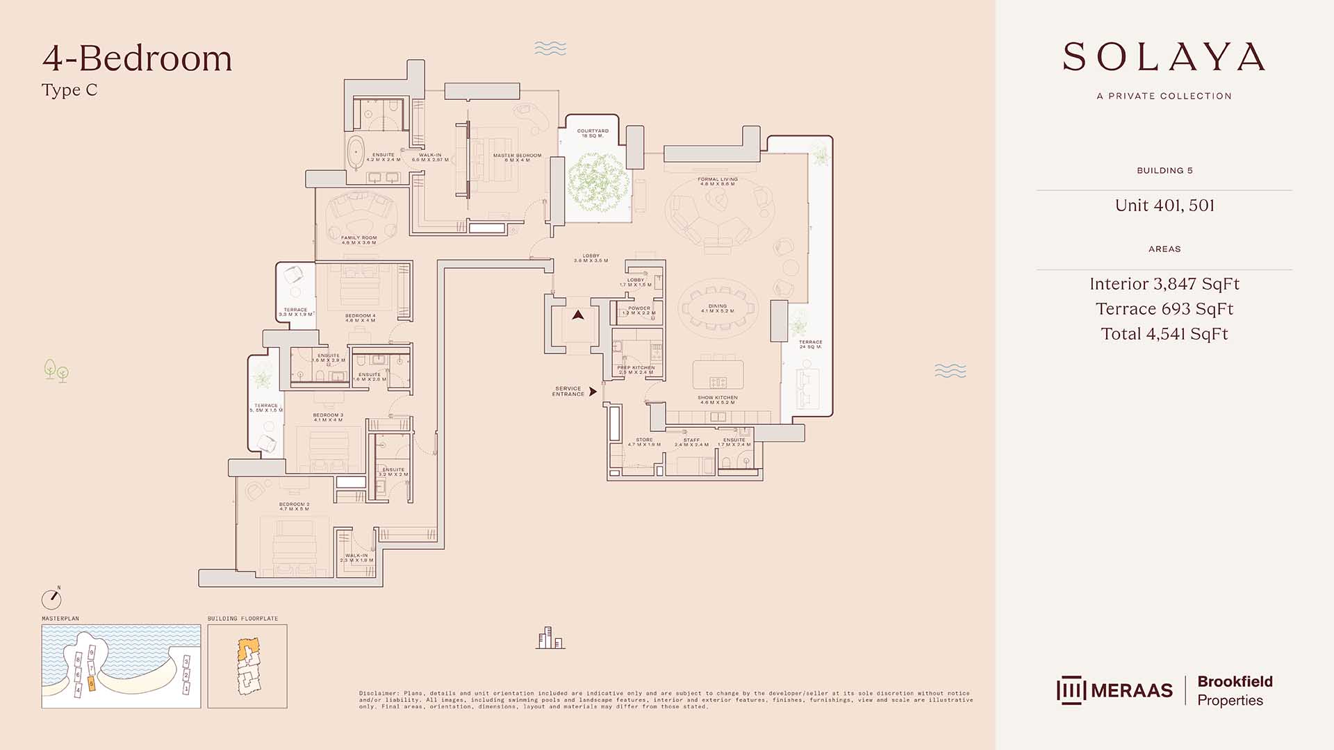 Solaya Residences rises with a timeless allure, where grand and open-plan floor plans are provided in the 2 to 5-bedroom luxury apartments, duplexes, & penthouses. There are diverse choices of homes such as Classic, Garden Residences, Signature style duplex and the exclusive penthouses. All units share a design that is seamlessly linked to the outdoors' beauty, where floor-to-ceiling windows, balconies, terraces, and pools are crafted to offer unobstructed views of the sea, bustling city, and the rich landscapes. The open spaces with furnishings, soft and aesthetic elements, finishes, textures, and features offer an ambience of calm sophistication.