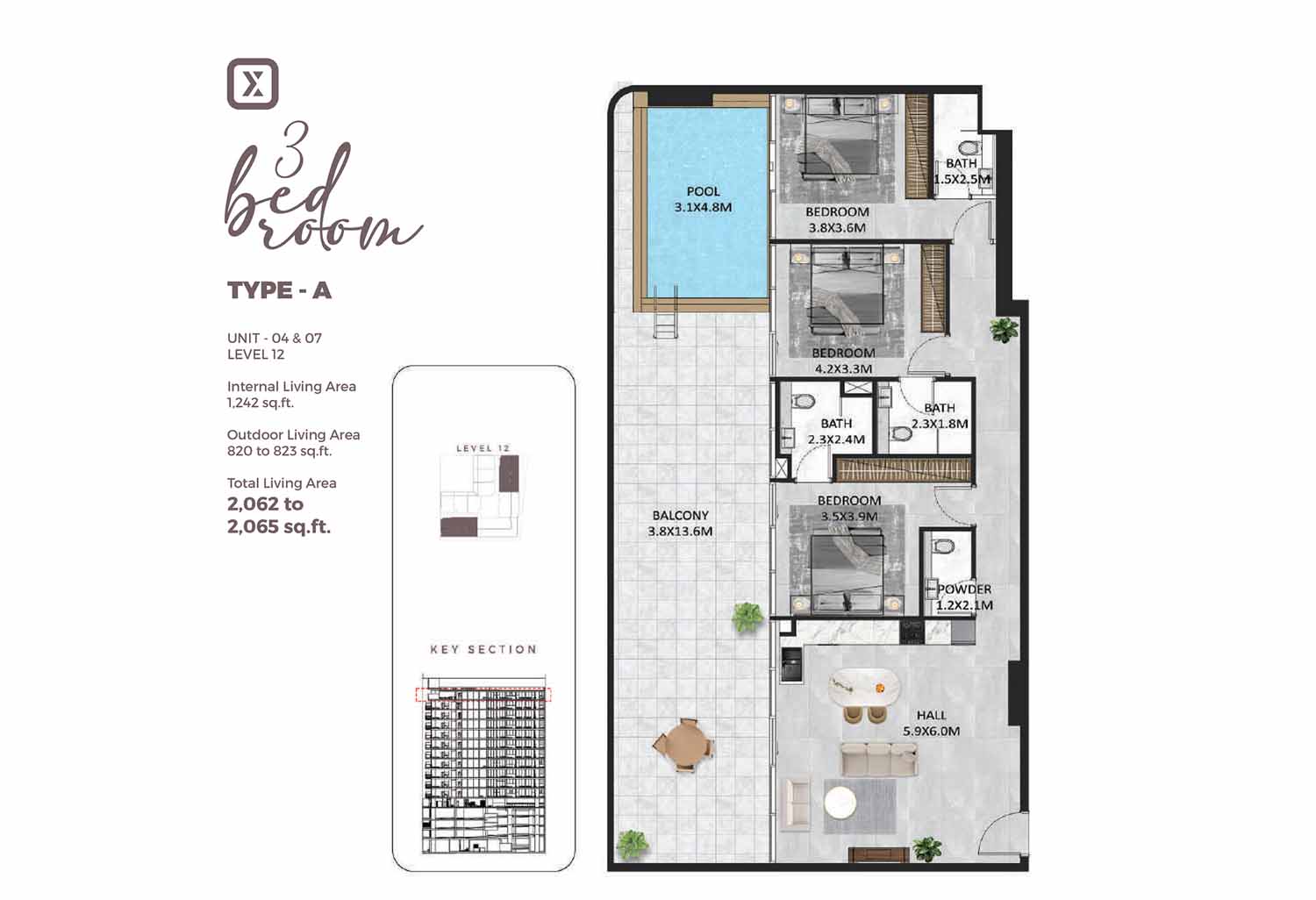 The thoughtfully designed floor plan of studios, 1, 2 & 3-bedroom apartments are included in the significant home address of Square X Residence in JVC at Dubai. This branded complex features 1 & 2-bedroom units with study rooms and smart home elements of Bosh and Apple Home.