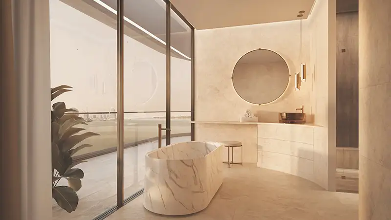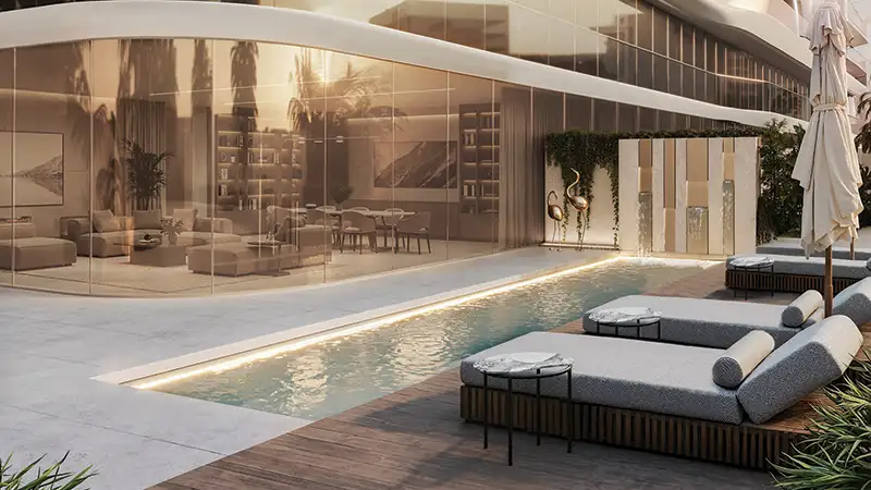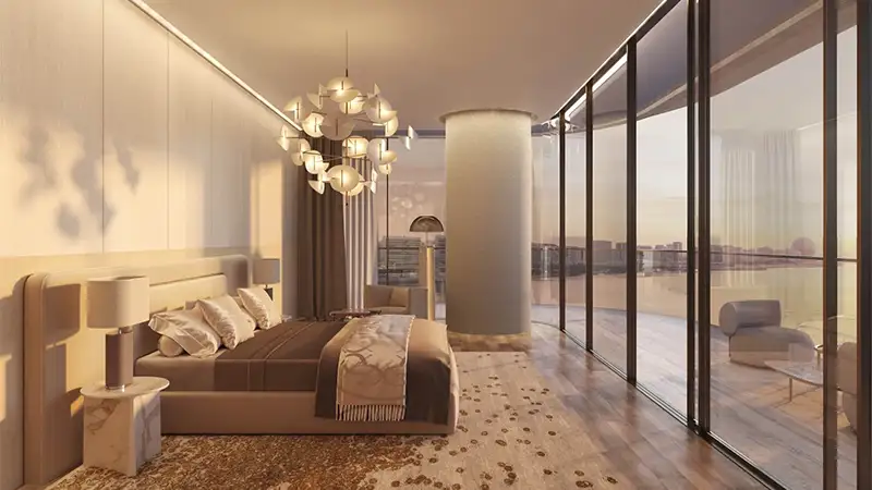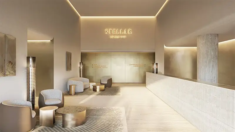 To develop a unique sense of place, the master plan of Stellar by Elie Saab architecture and landscape is exclusive in every sense. It is anchored by a leading waterfront, the development is a sculptural amenity and is located in an environment of recreation, green space and civic facility. The residential block is enclosed by landscaped terraces and walks which merges with the larger fabric of the island. Having a modest amount of 144 homes, comprising of garden villas, apartments and penthouses, the scheme still has an exclusive nature and human proportion that beckons neighbourliness and tranquillity. Outdoor living has been considered with lots of terraces, balconies and podium gardens and the design has been built to ensure maximum light, ventilation and windowed views.