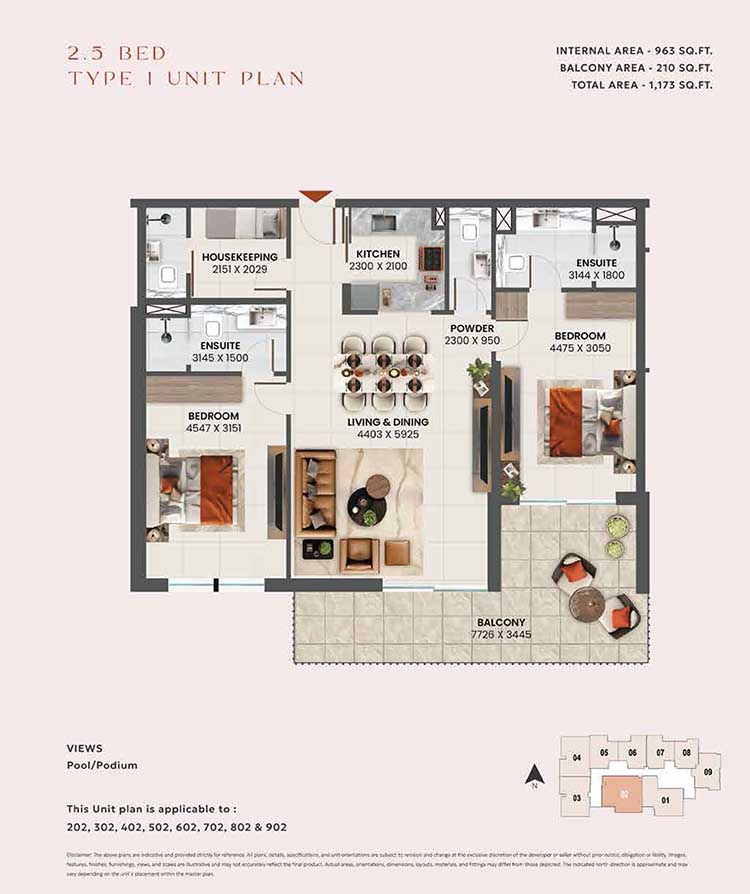 Sunvale provides a wide range of intelligently floor plan of 1, 2, 2.5, 3 and 3.5 bedroom apartments to meet the demands of the modern lifestyle. The layout is well organized to make the most out of the space without compromising on the feel of open space and comfort. Each of the units has well defined living, dining, bedrooms with the addition of balconies which continue the living space to the outside. The kitchens are built with a practical and beautiful design, using intelligent layouts and fine finishes. Bedrooms are a personal space that has plenty of storage options, and the bathrooms have a modern fit. All in all, there is a harmonious mix of functionality, comfort, and modern design aesthetics.