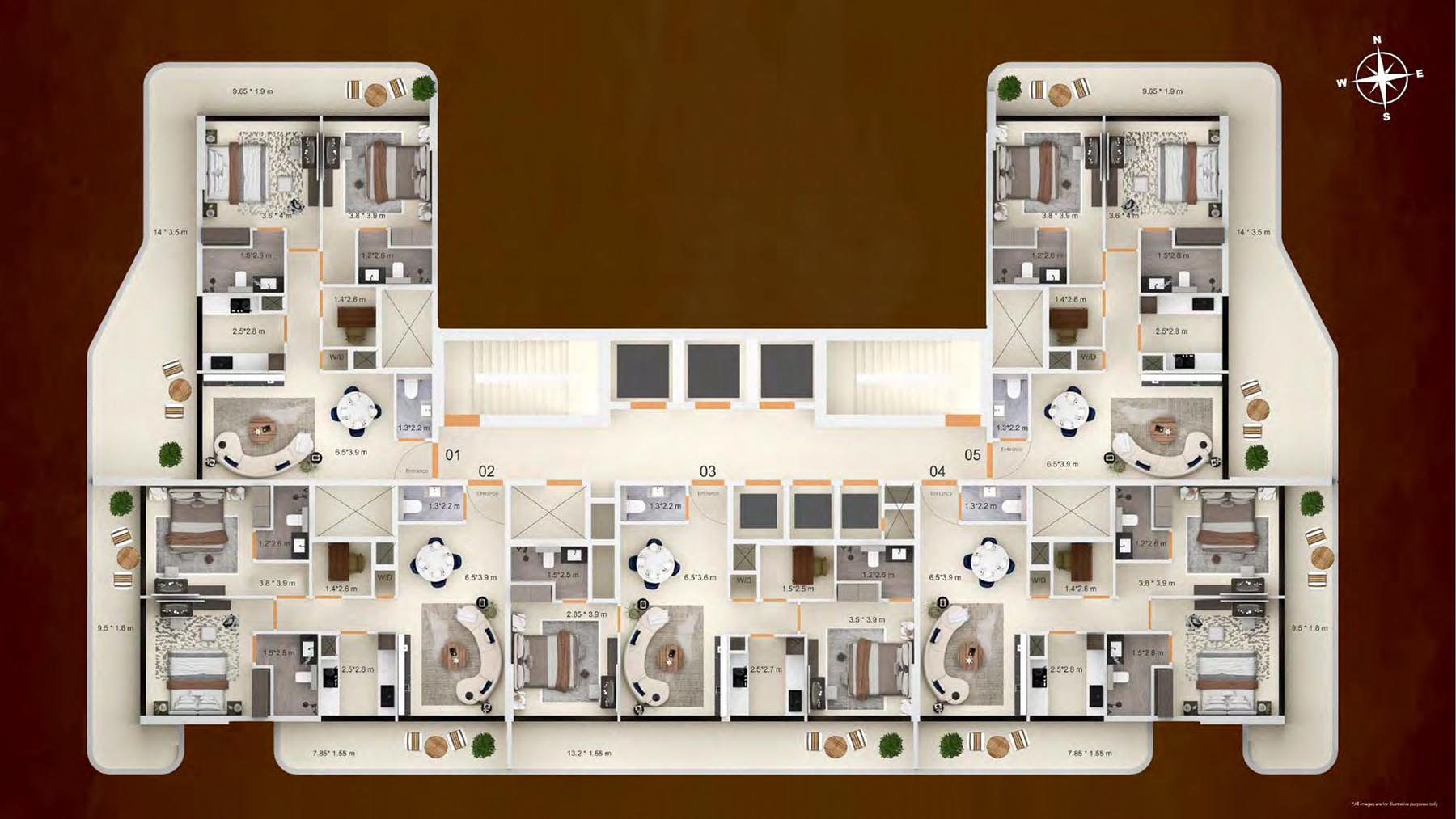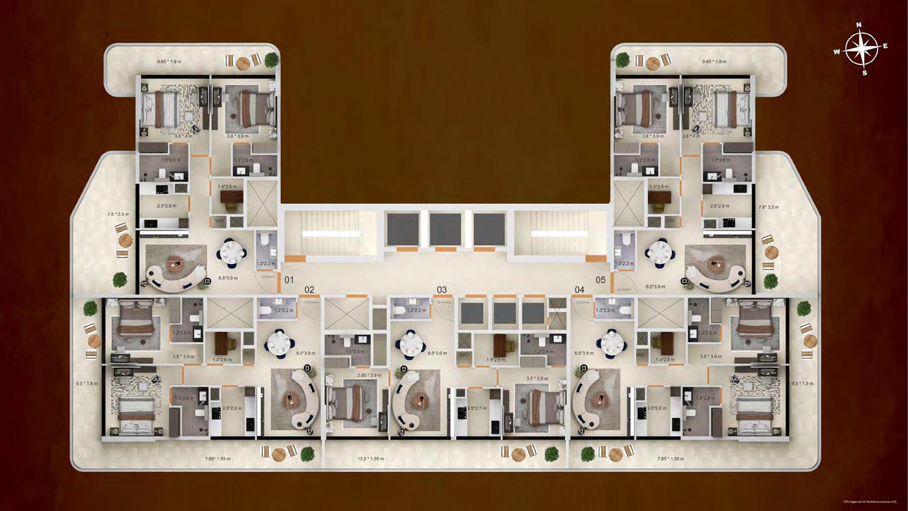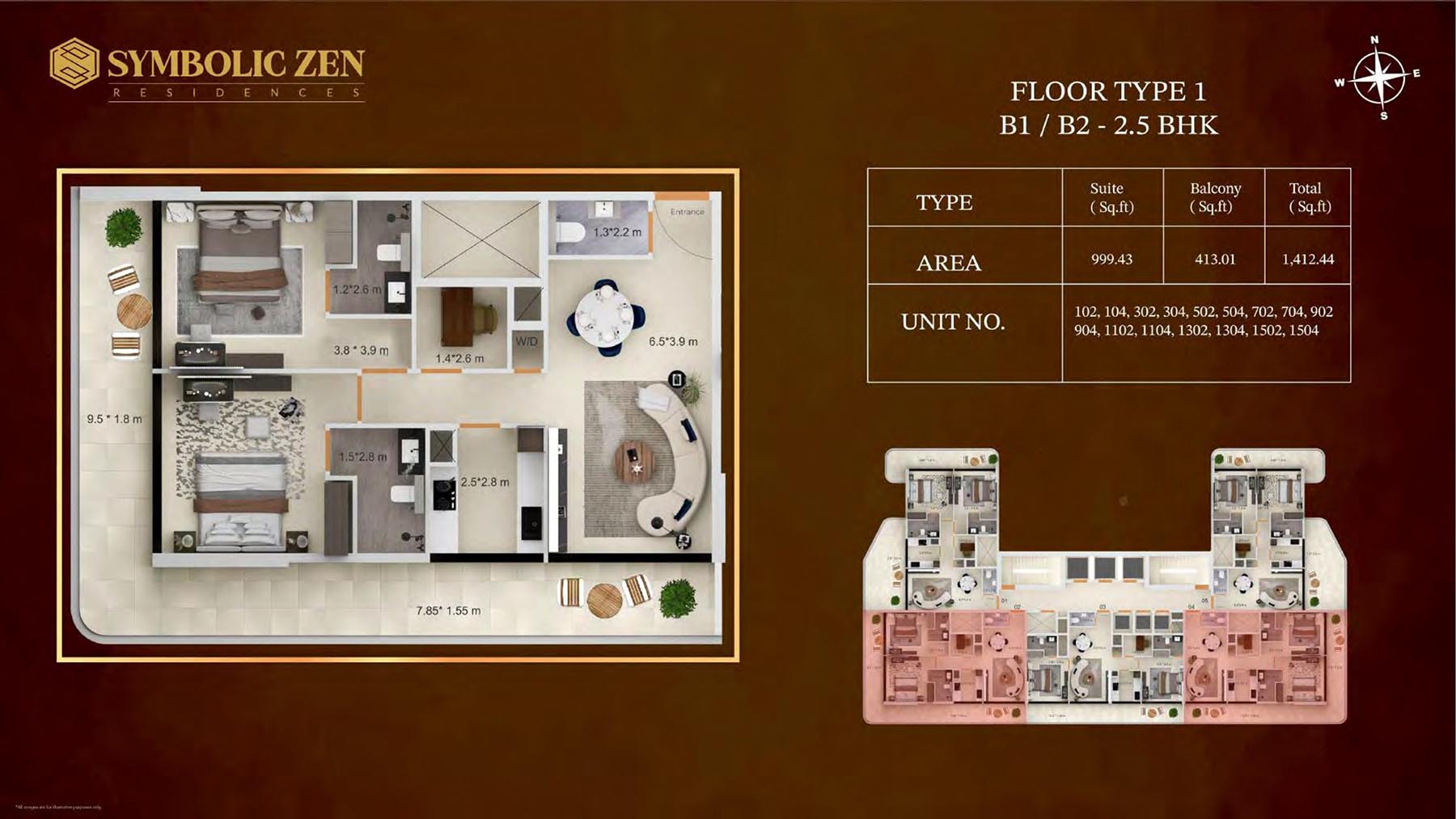 At Symbolic Zen Residences, the designer floor plan layouts of apartments mirror peaceful and unambiguous designs to attract everyone. Residents find the spaces between living areas and dining spaces along with modern cooking zones connected to the peaceful dimensions of ample bedrooms. The balconies transcend ordinary extensions because they function as contemplative spaces that provide peaceful moments for enjoying morning or evening tranquillity. Detailed consideration shows through the way windows have been positioned the exceptional quality of materials applied and the addition of clever storage solutions.