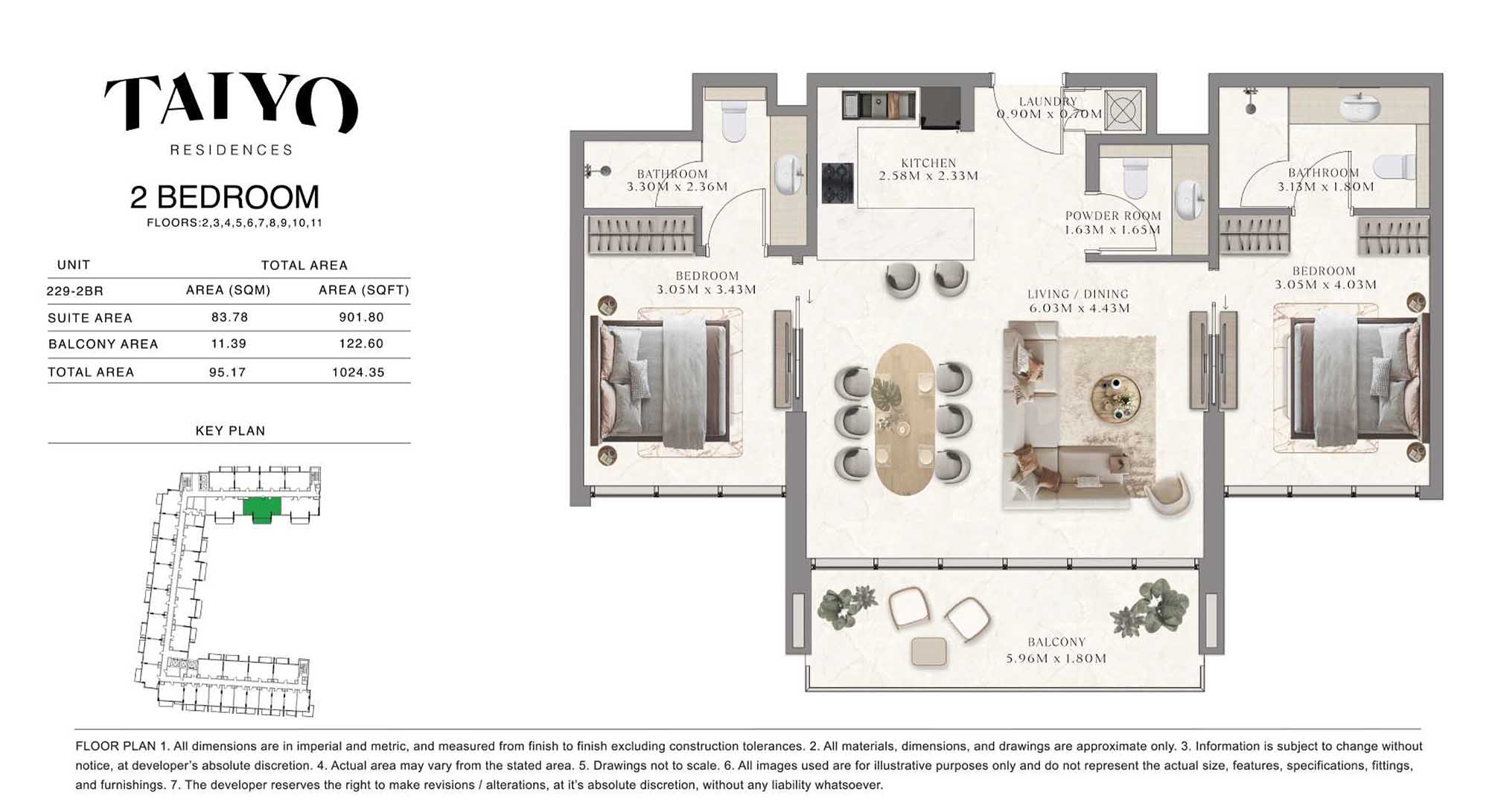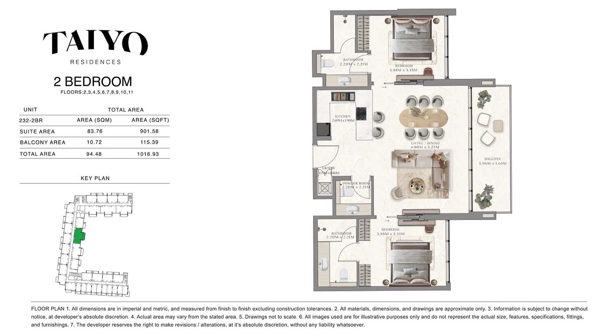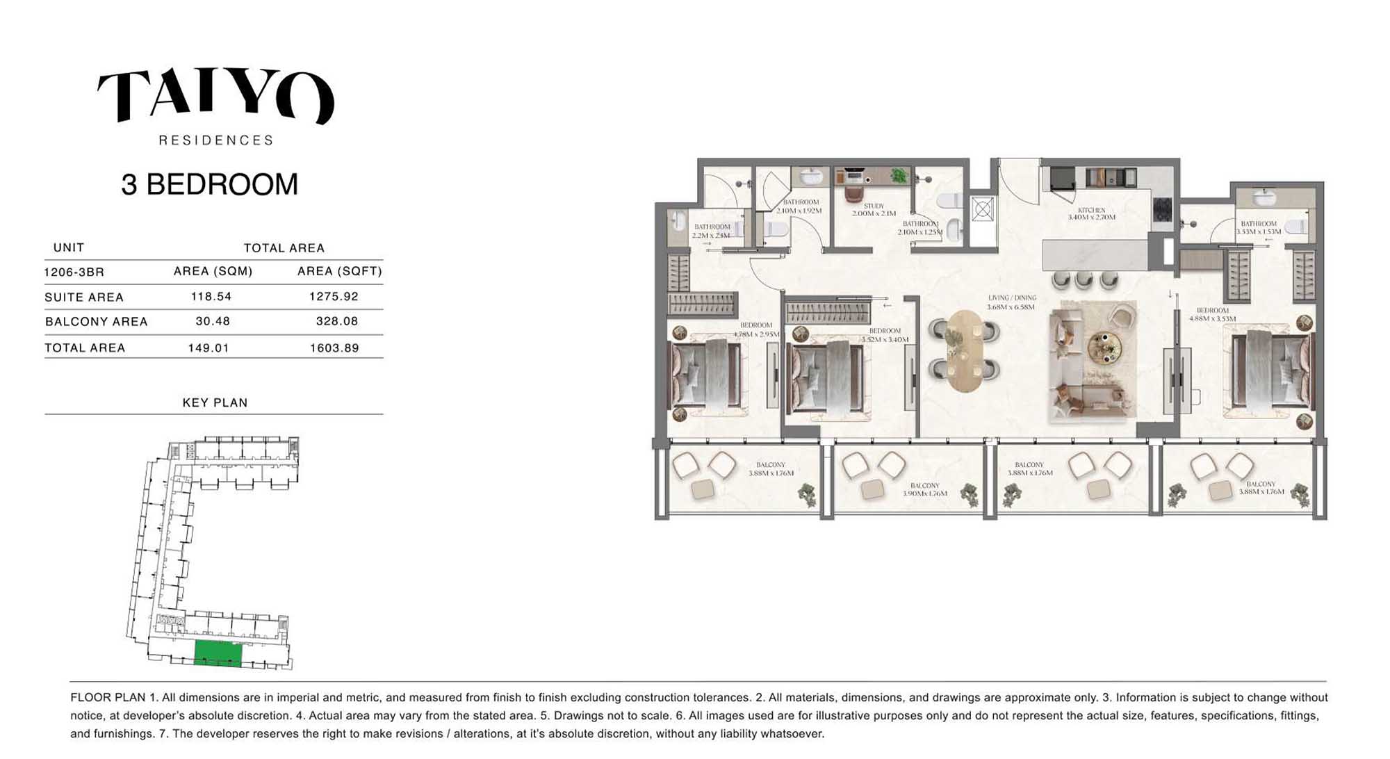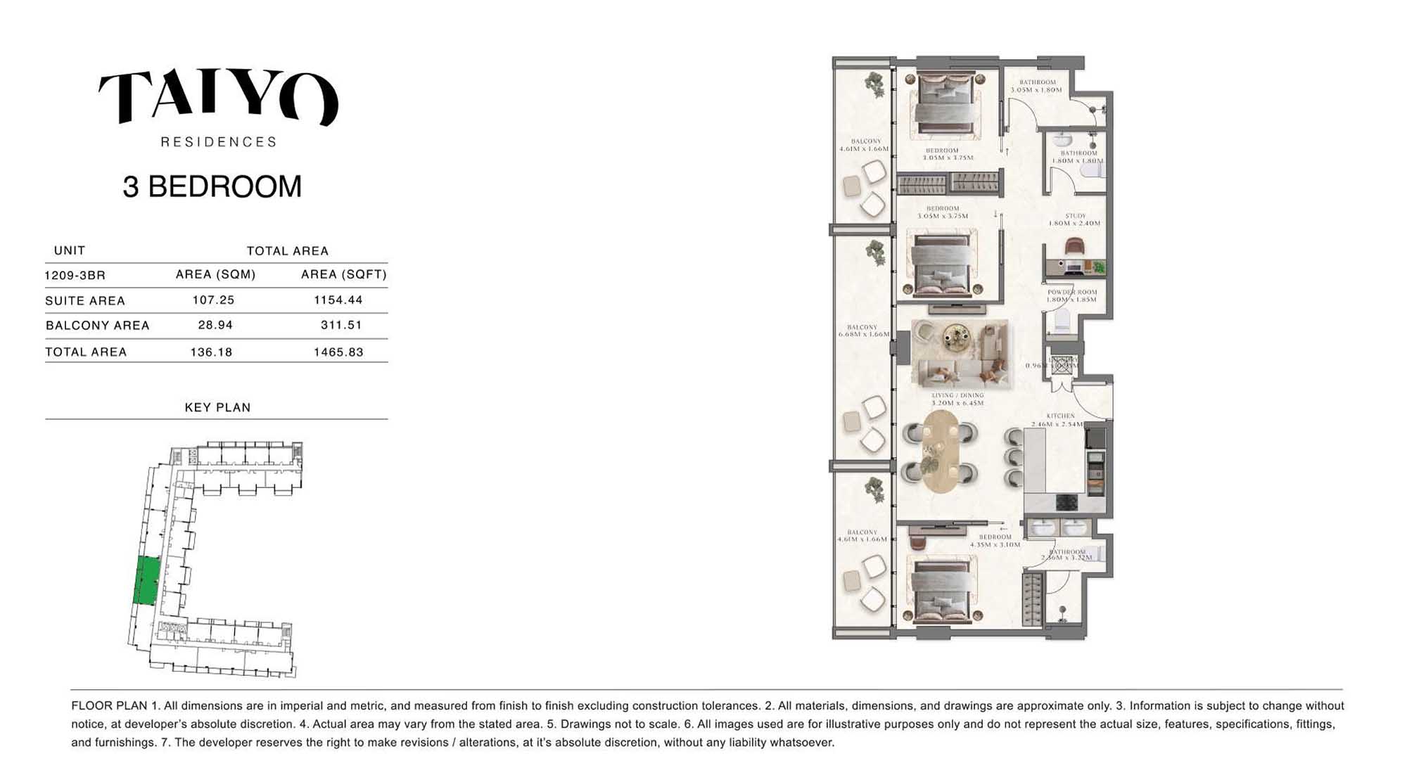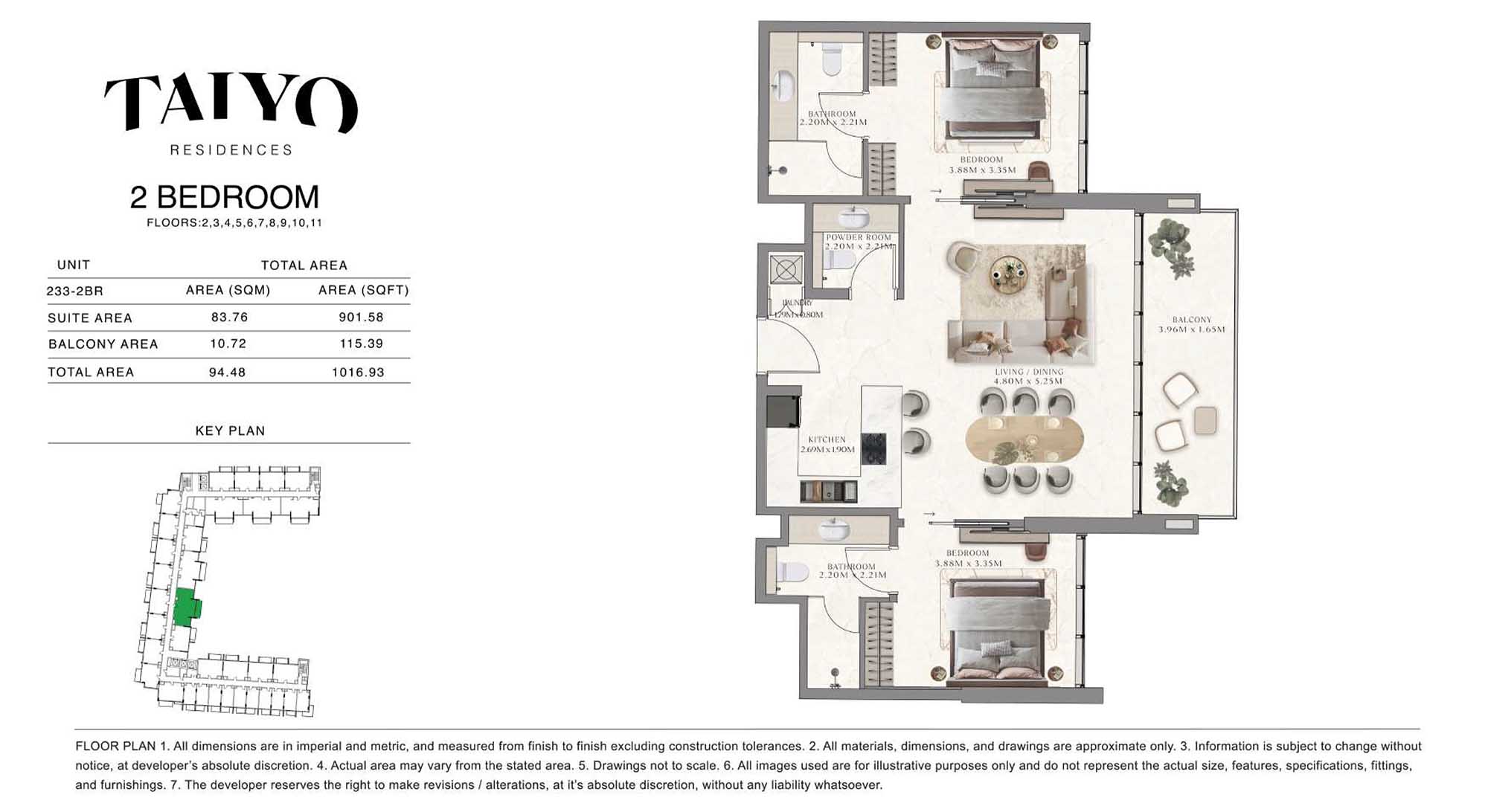 Taiyo Residences provides floor plans that demonstrate expert spatial design methodology with studios, 1, 2 and 3-bedroom apartments. All layouts within the development maintain a harmonious blend of style and practicality along with effective paths and abundant daylight. The units have integrated kitchens, premium sanitary fixtures and private balcony extensions which provide an indoor-outdoor living experience. Residents experience an airy and welcoming atmosphere because the tall ceilings and windows extending to the ceiling promote an open environment.