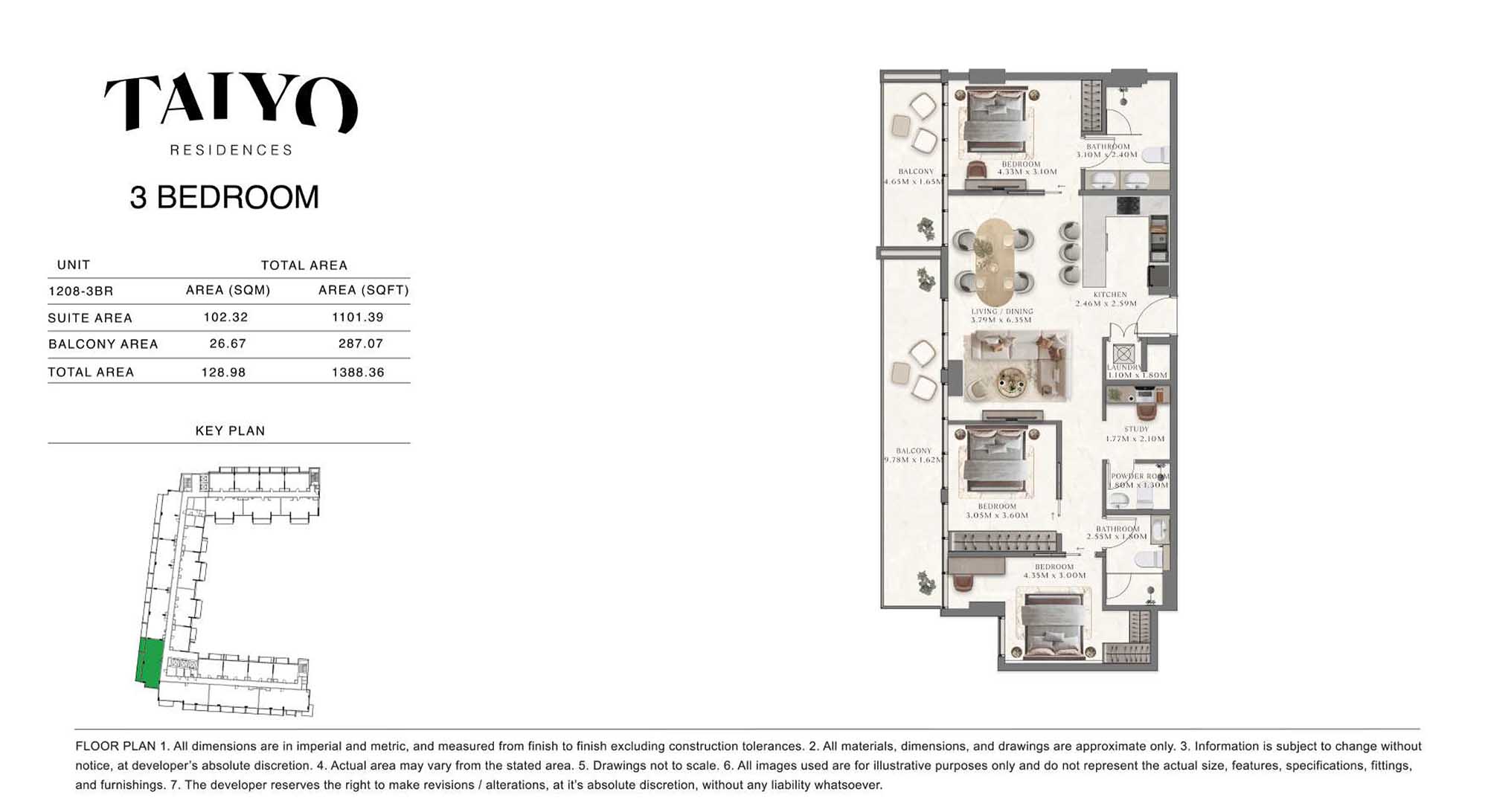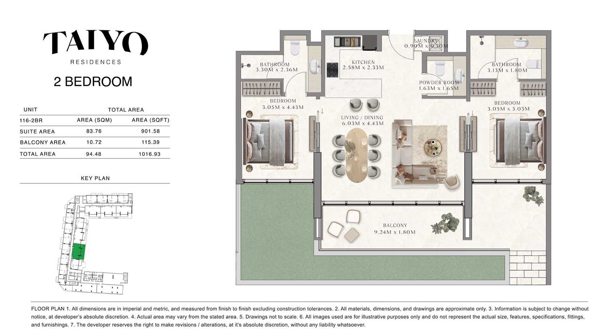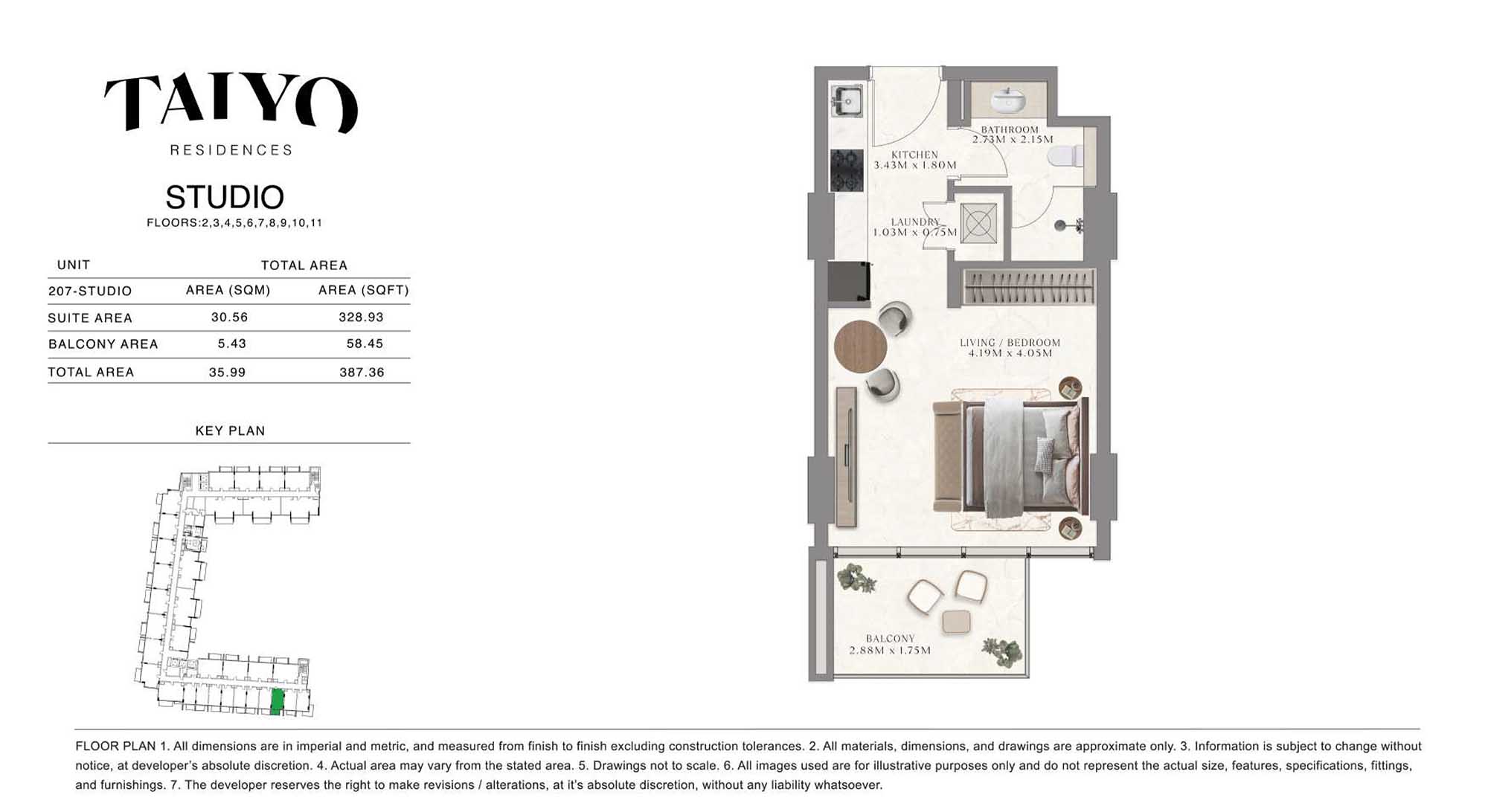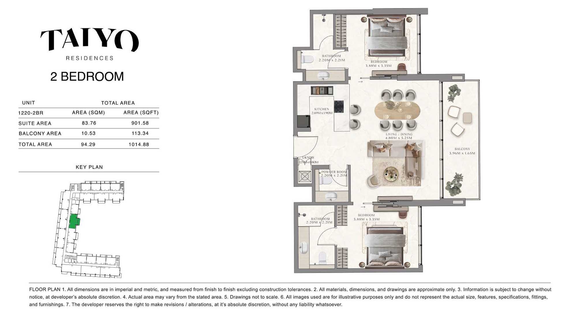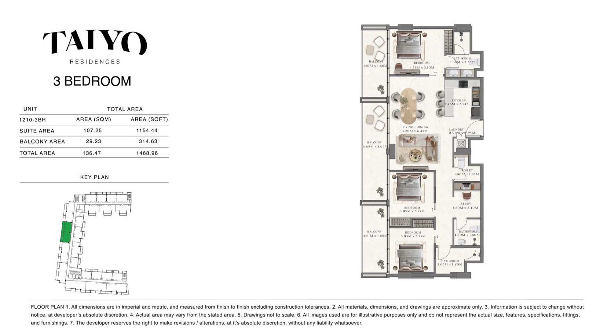 Taiyo Residences provides floor plans that demonstrate expert spatial design methodology with studios, 1, 2 and 3-bedroom apartments. All layouts within the development maintain a harmonious blend of style and practicality along with effective paths and abundant daylight. The units have integrated kitchens, premium sanitary fixtures and private balcony extensions which provide an indoor-outdoor living experience. Residents experience an airy and welcoming atmosphere because the tall ceilings and windows extending to the ceiling promote an open environment.