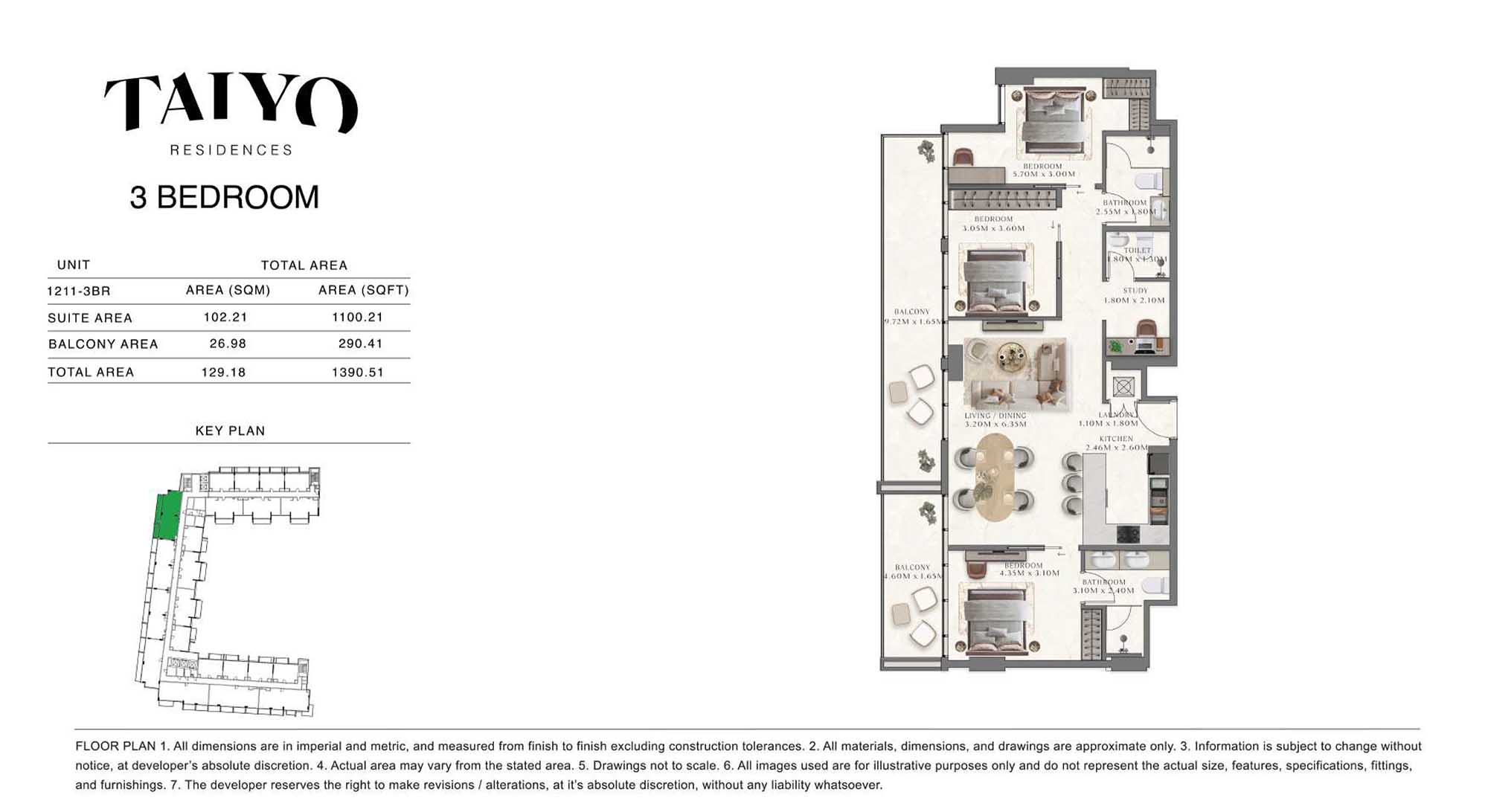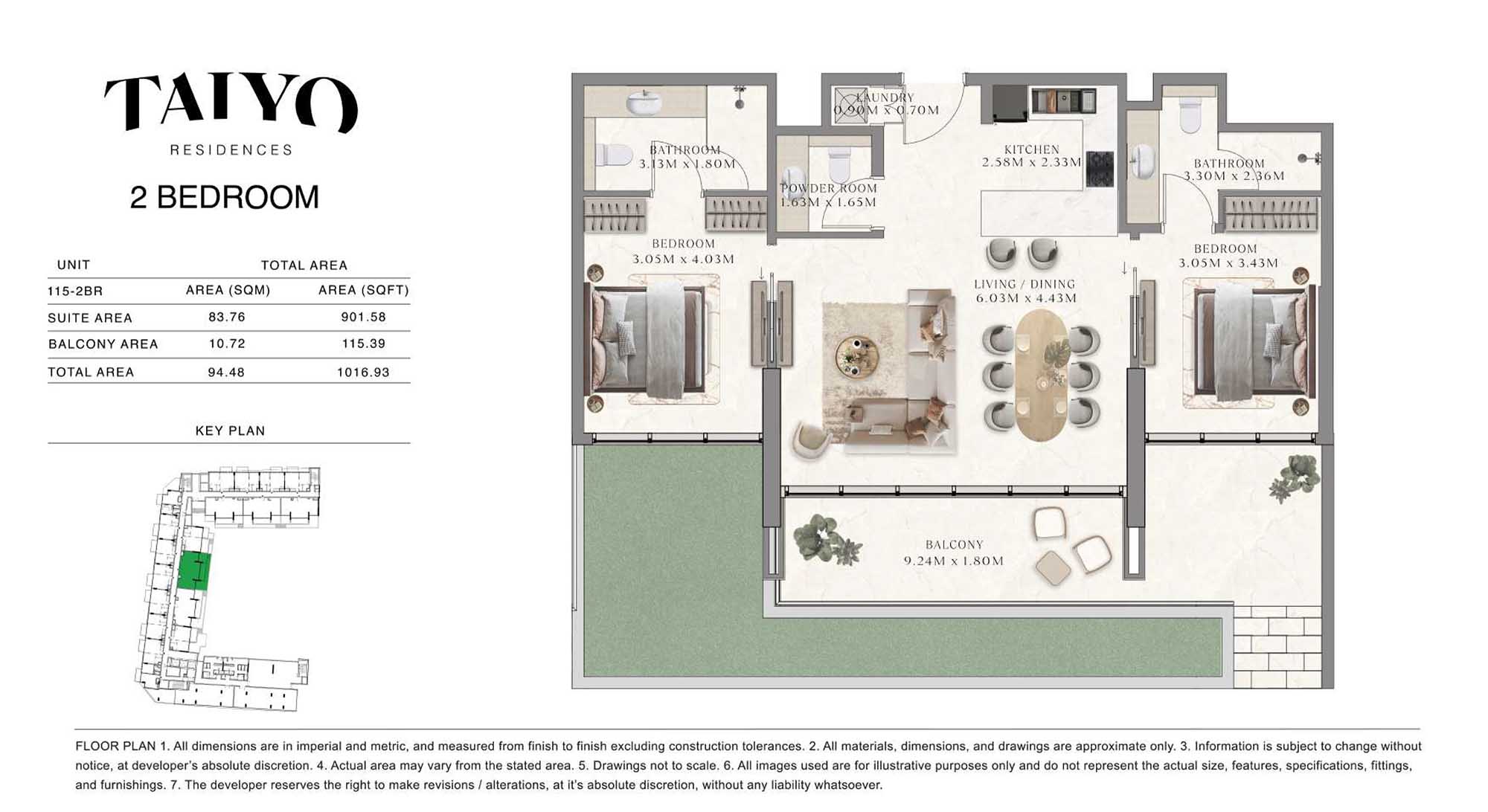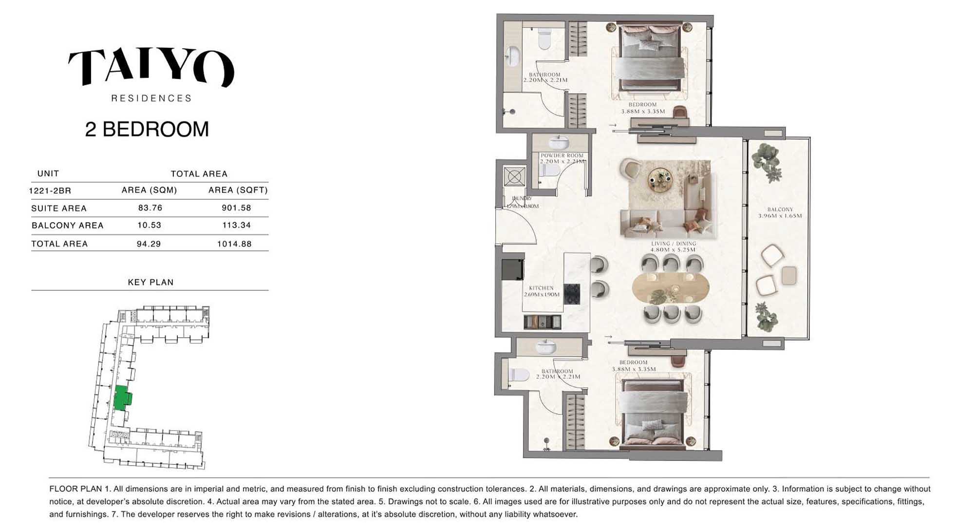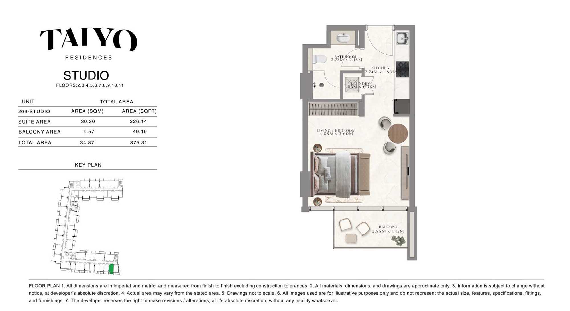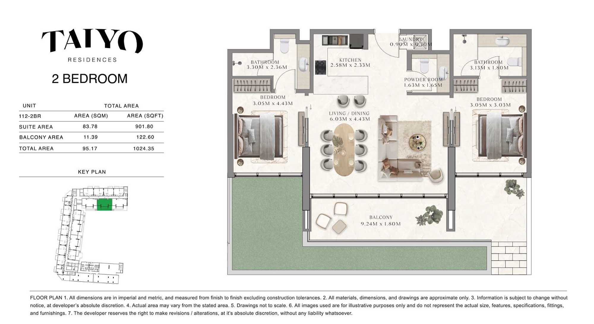 Taiyo Residences provides floor plans that demonstrate expert spatial design methodology with studios, 1, 2 and 3-bedroom apartments. All layouts within the development maintain a harmonious blend of style and practicality along with effective paths and abundant daylight. The units have integrated kitchens, premium sanitary fixtures and private balcony extensions which provide an indoor-outdoor living experience. Residents experience an airy and welcoming atmosphere because the tall ceilings and windows extending to the ceiling promote an open environment.
