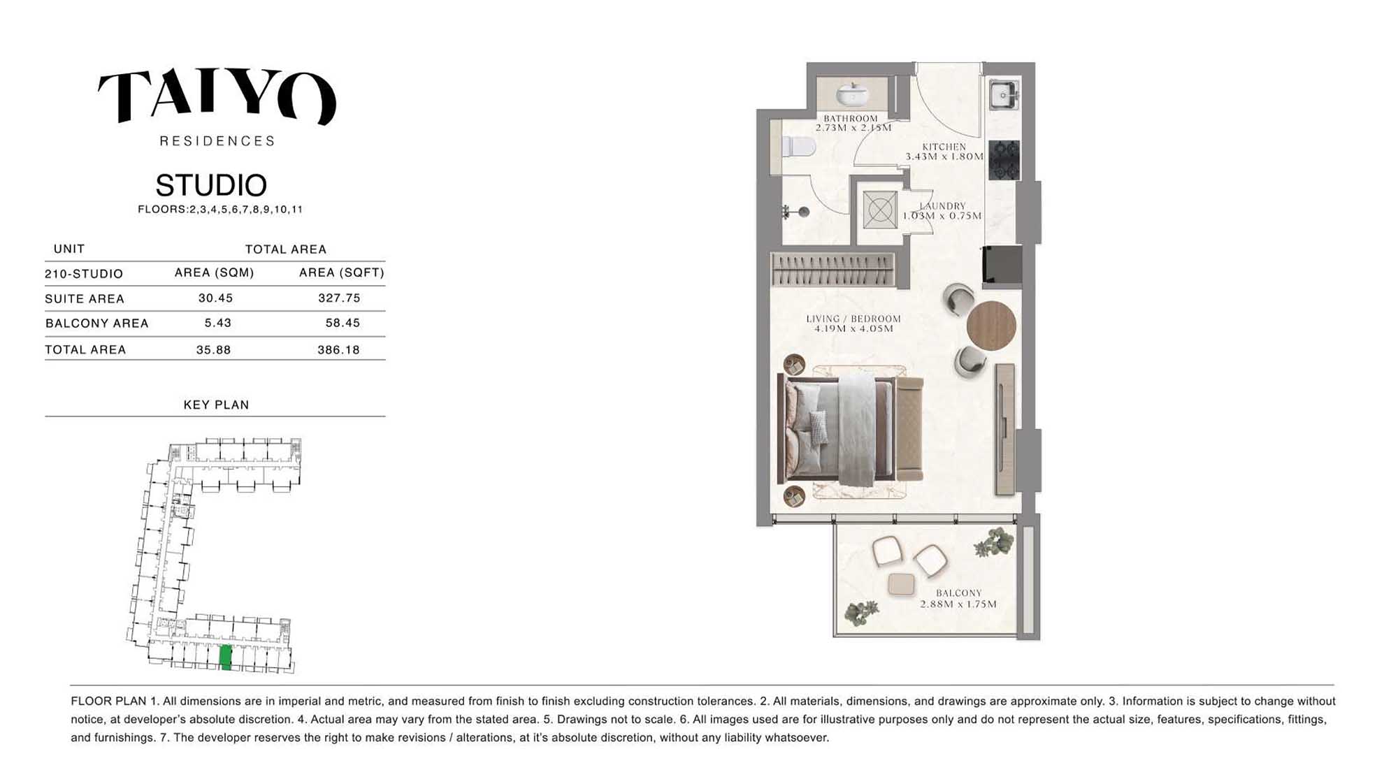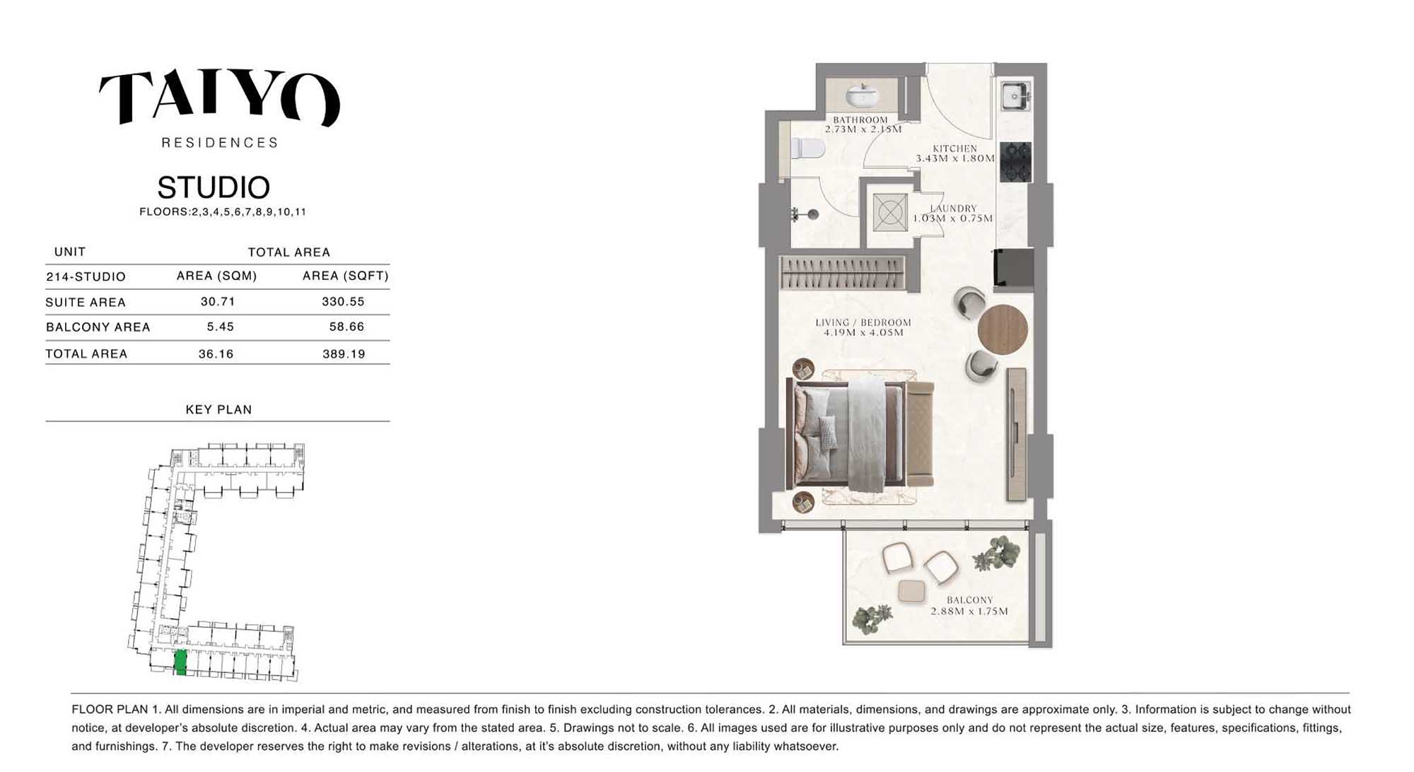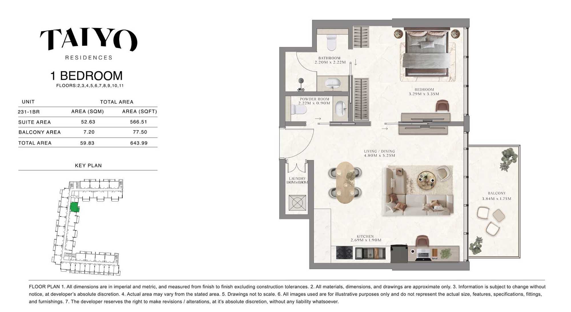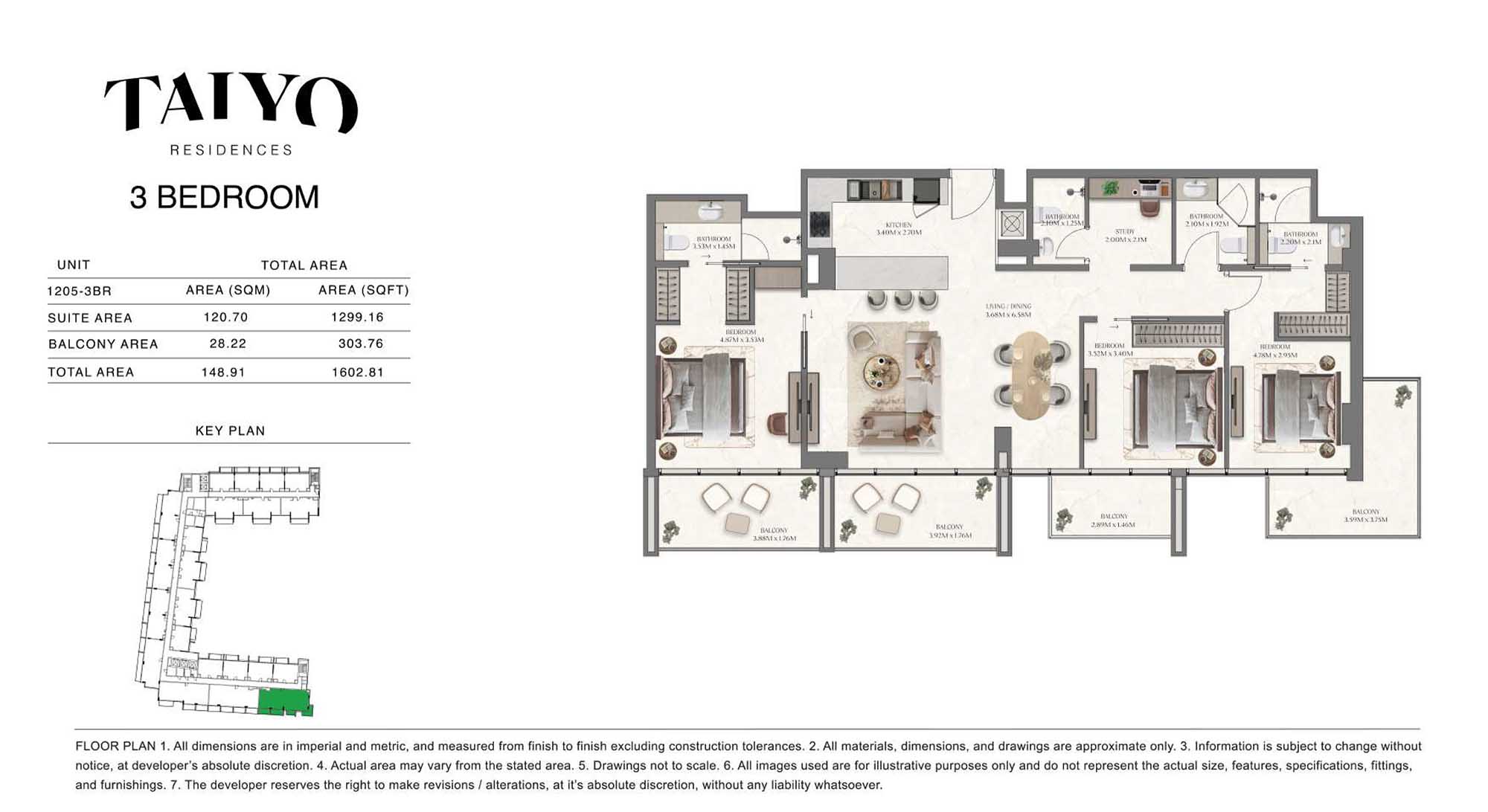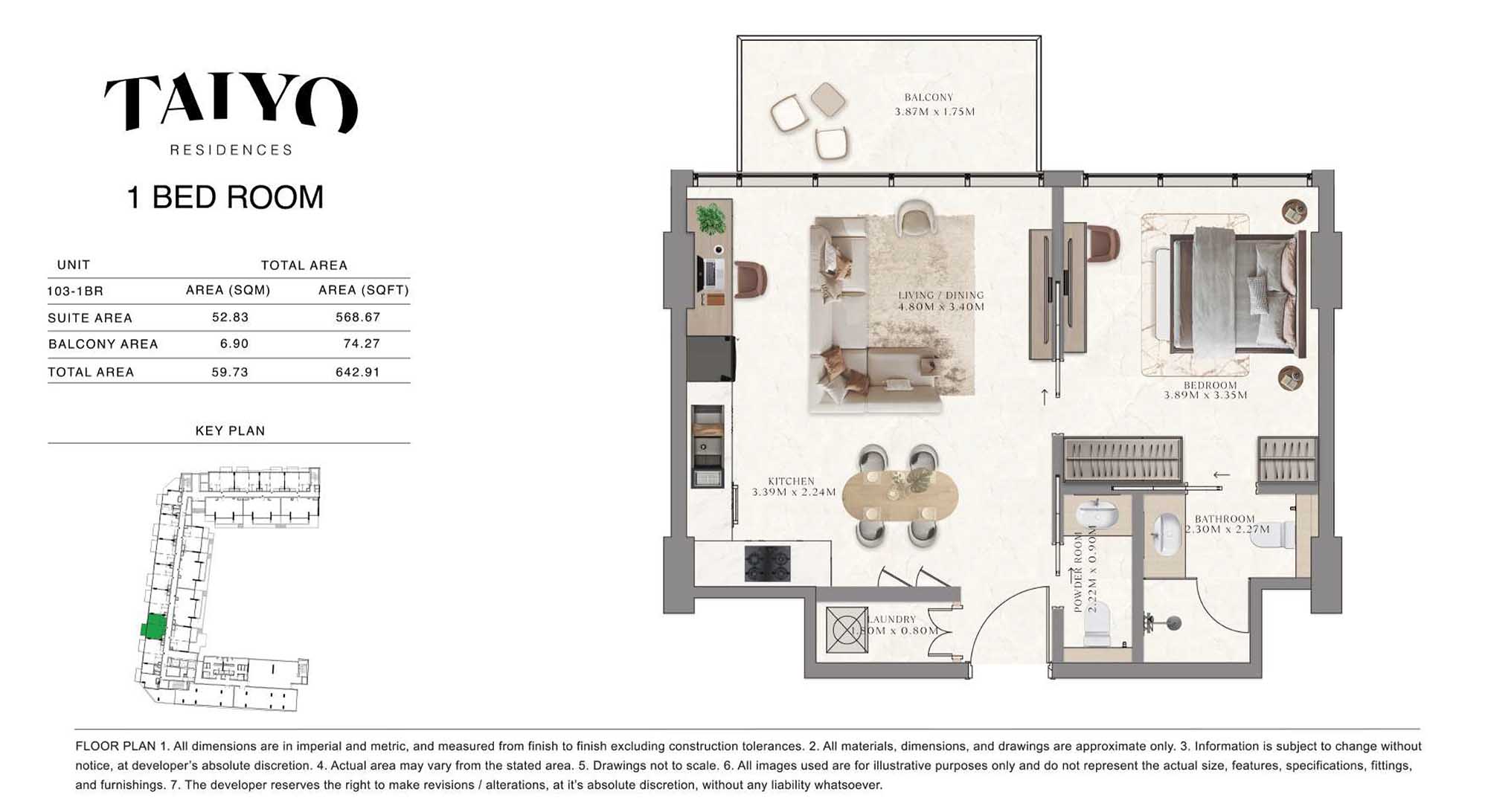 Taiyo Residences provides floor plans that demonstrate expert spatial design methodology with studios, 1, 2 and 3-bedroom apartments. All layouts within the development maintain a harmonious blend of style and practicality along with effective paths and abundant daylight. The units have integrated kitchens, premium sanitary fixtures and private balcony extensions which provide an indoor-outdoor living experience. Residents experience an airy and welcoming atmosphere because the tall ceilings and windows extending to the ceiling promote an open environment.
