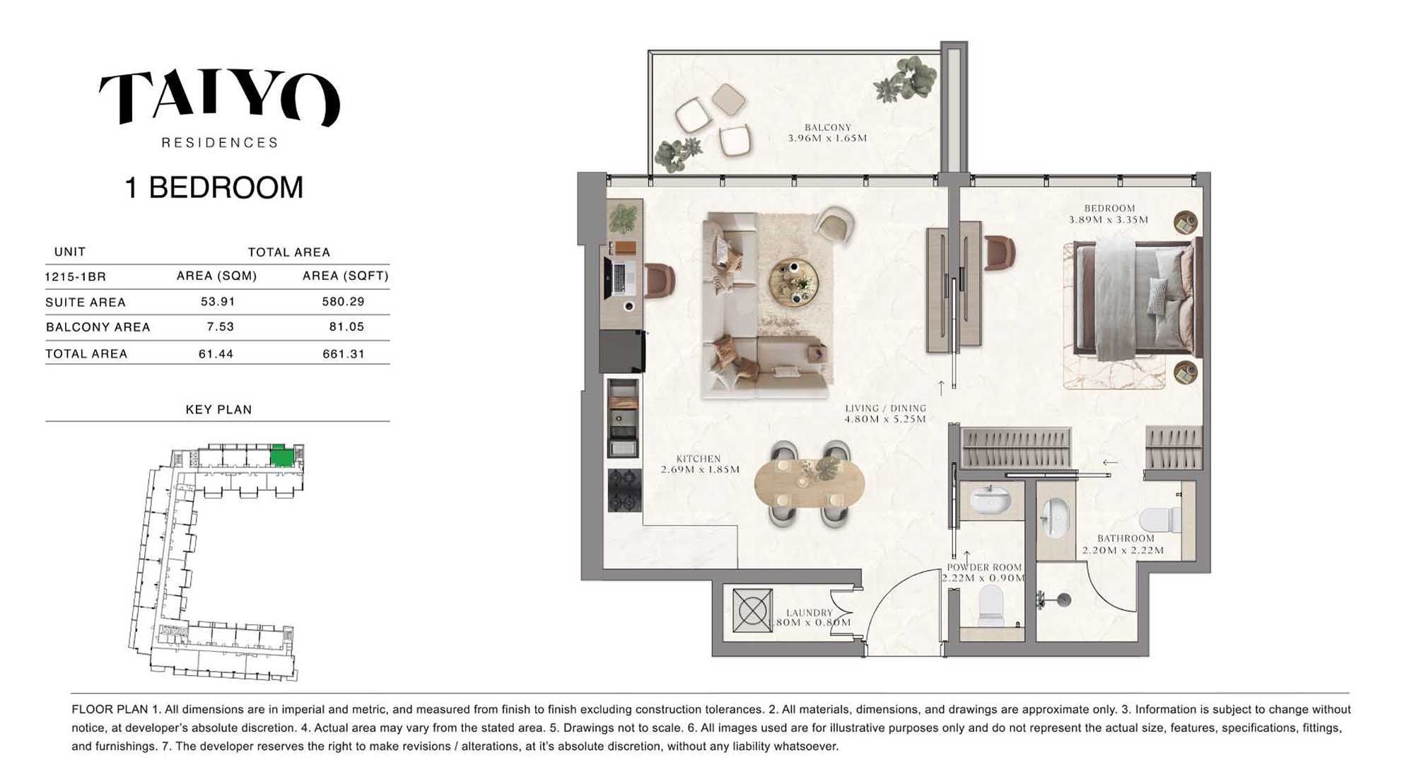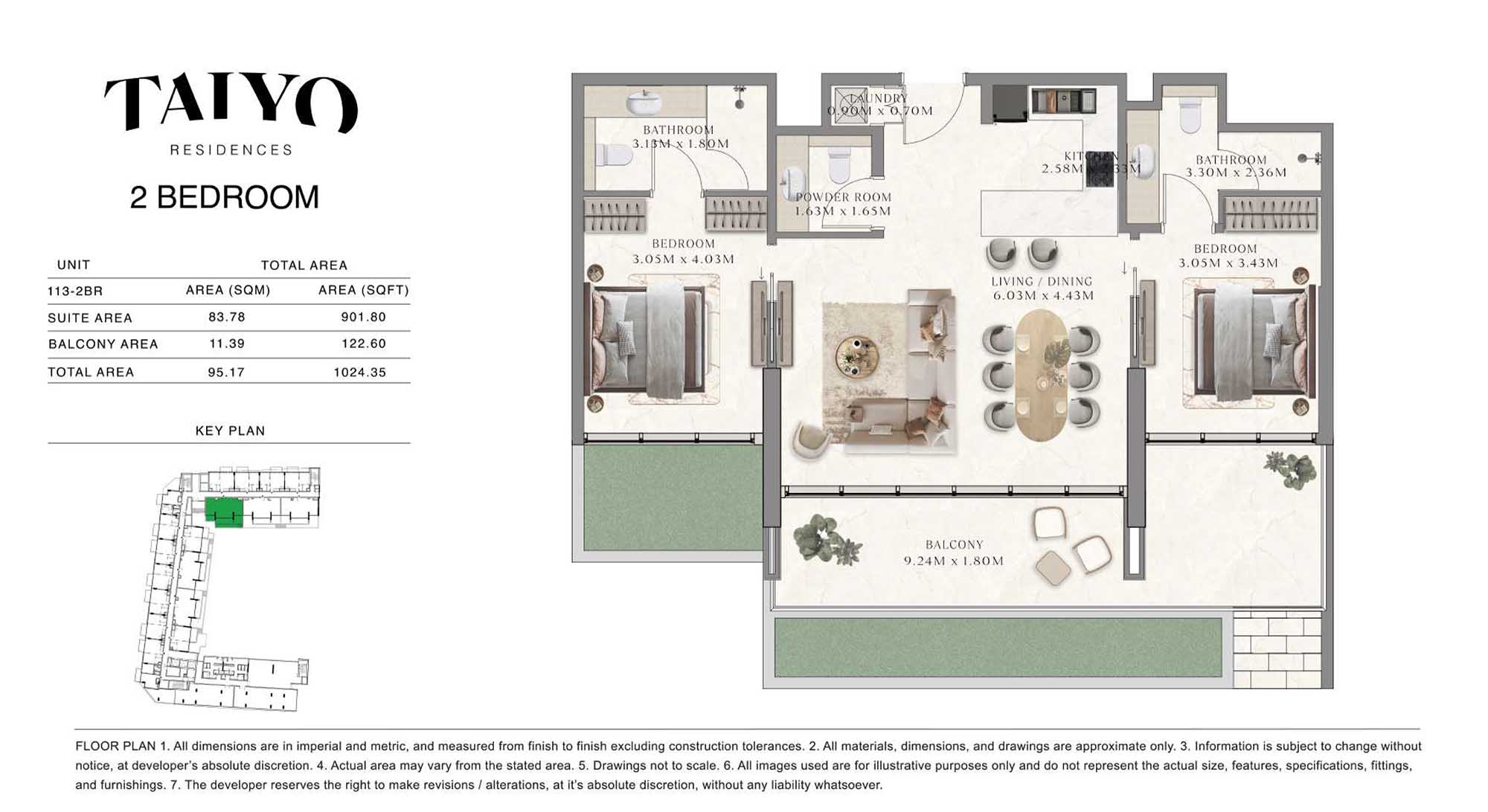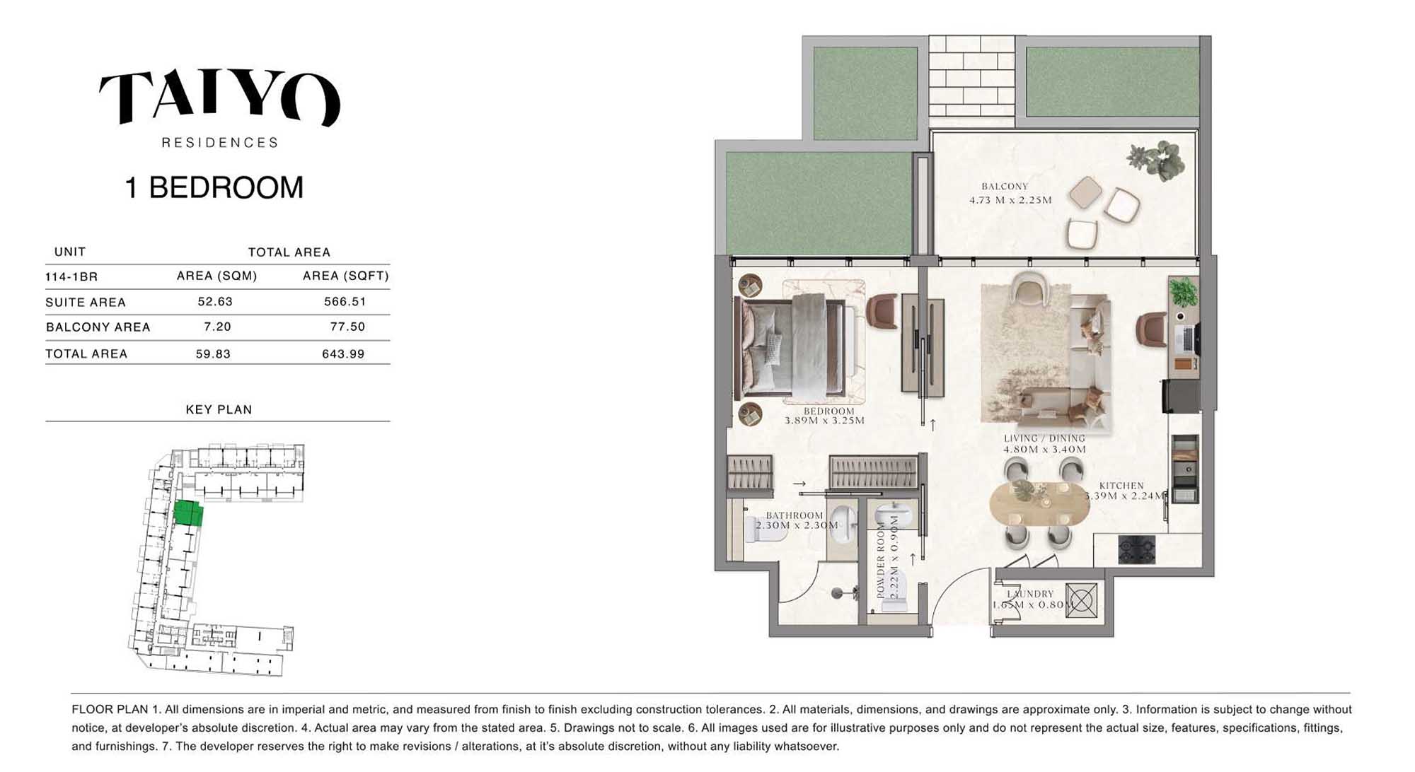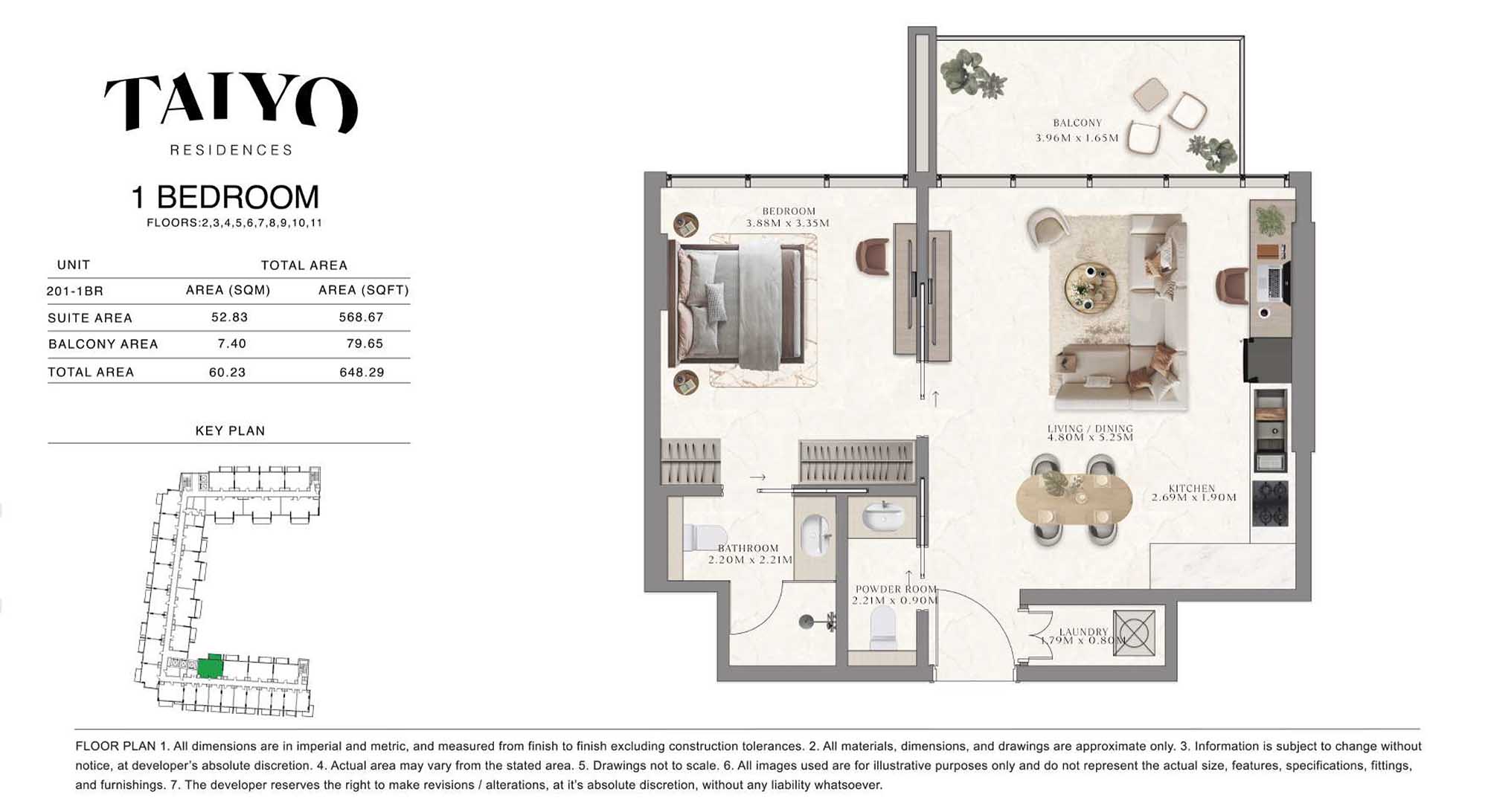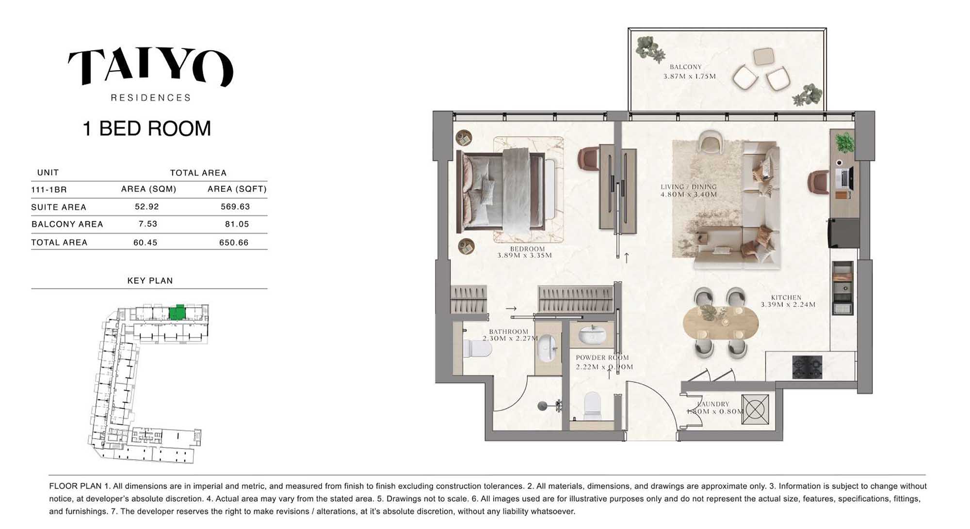 Taiyo Residences provides floor plans that demonstrate expert spatial design methodology with studios, 1, 2 and 3-bedroom apartments. All layouts within the development maintain a harmonious blend of style and practicality along with effective paths and abundant daylight. The units have integrated kitchens, premium sanitary fixtures and private balcony extensions which provide an indoor-outdoor living experience. Residents experience an airy and welcoming atmosphere because the tall ceilings and windows extending to the ceiling promote an open environment.