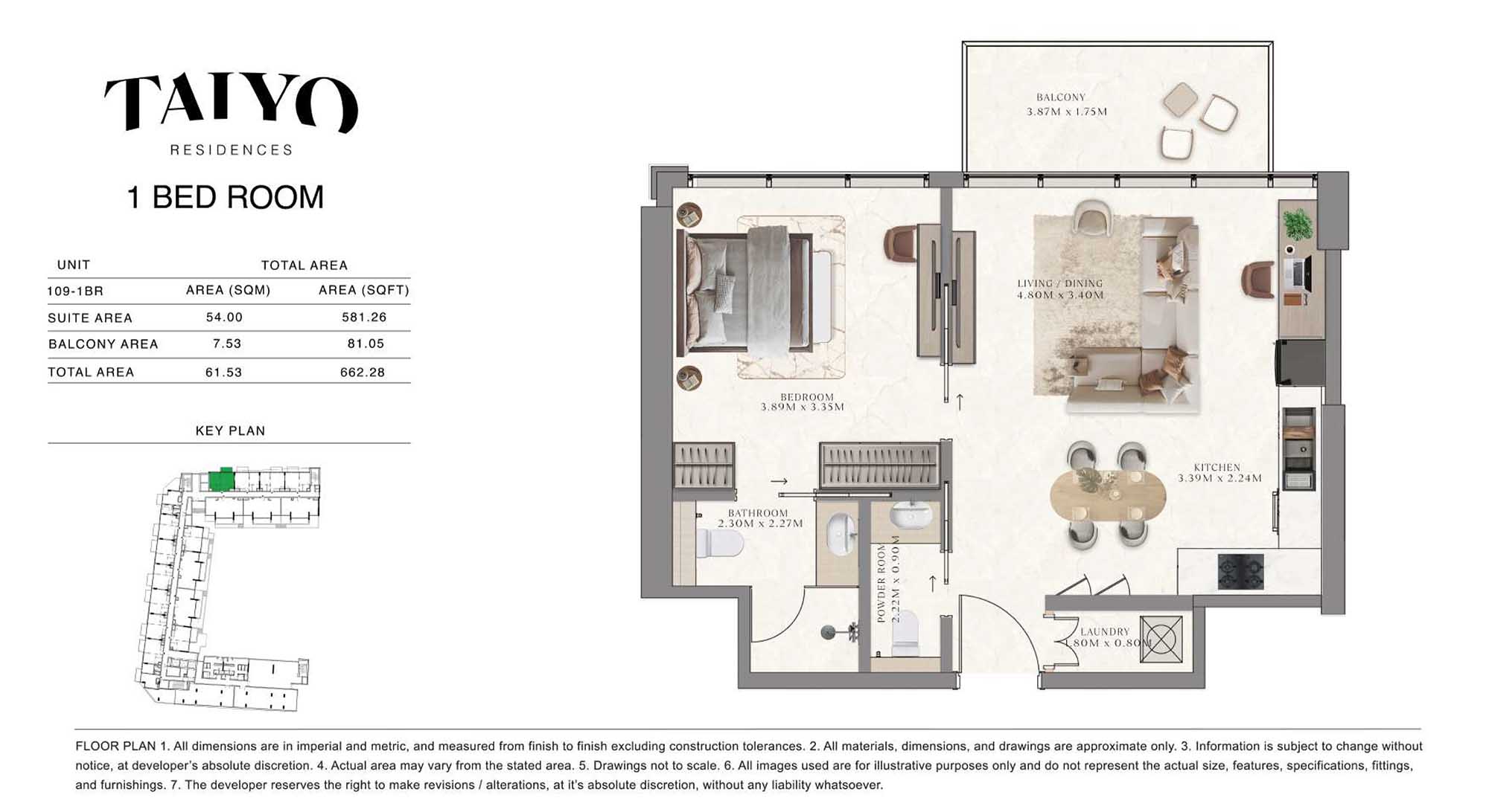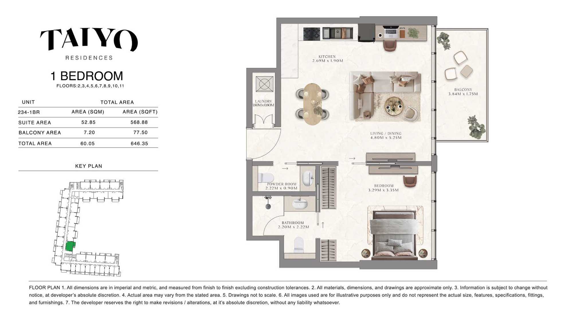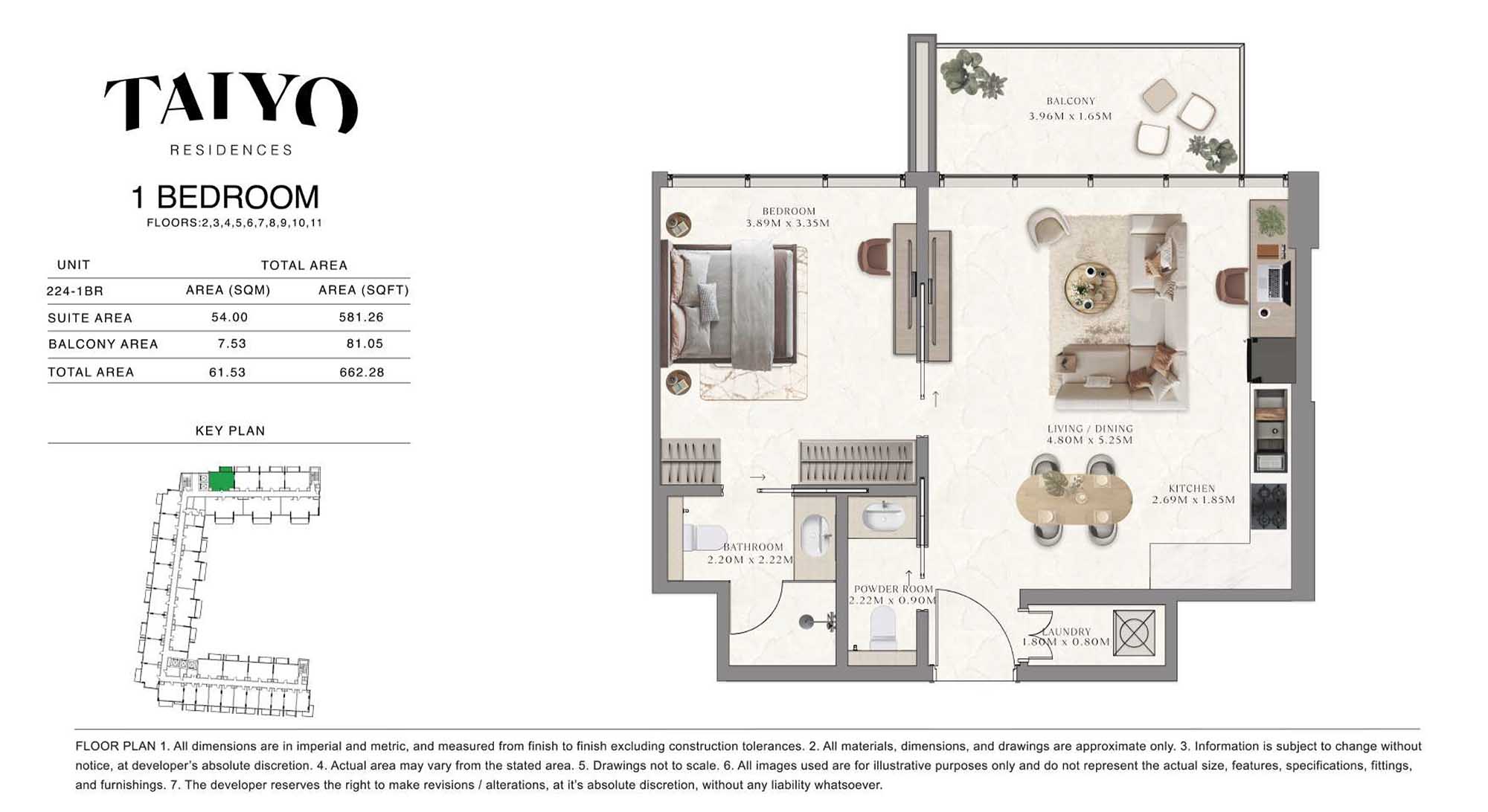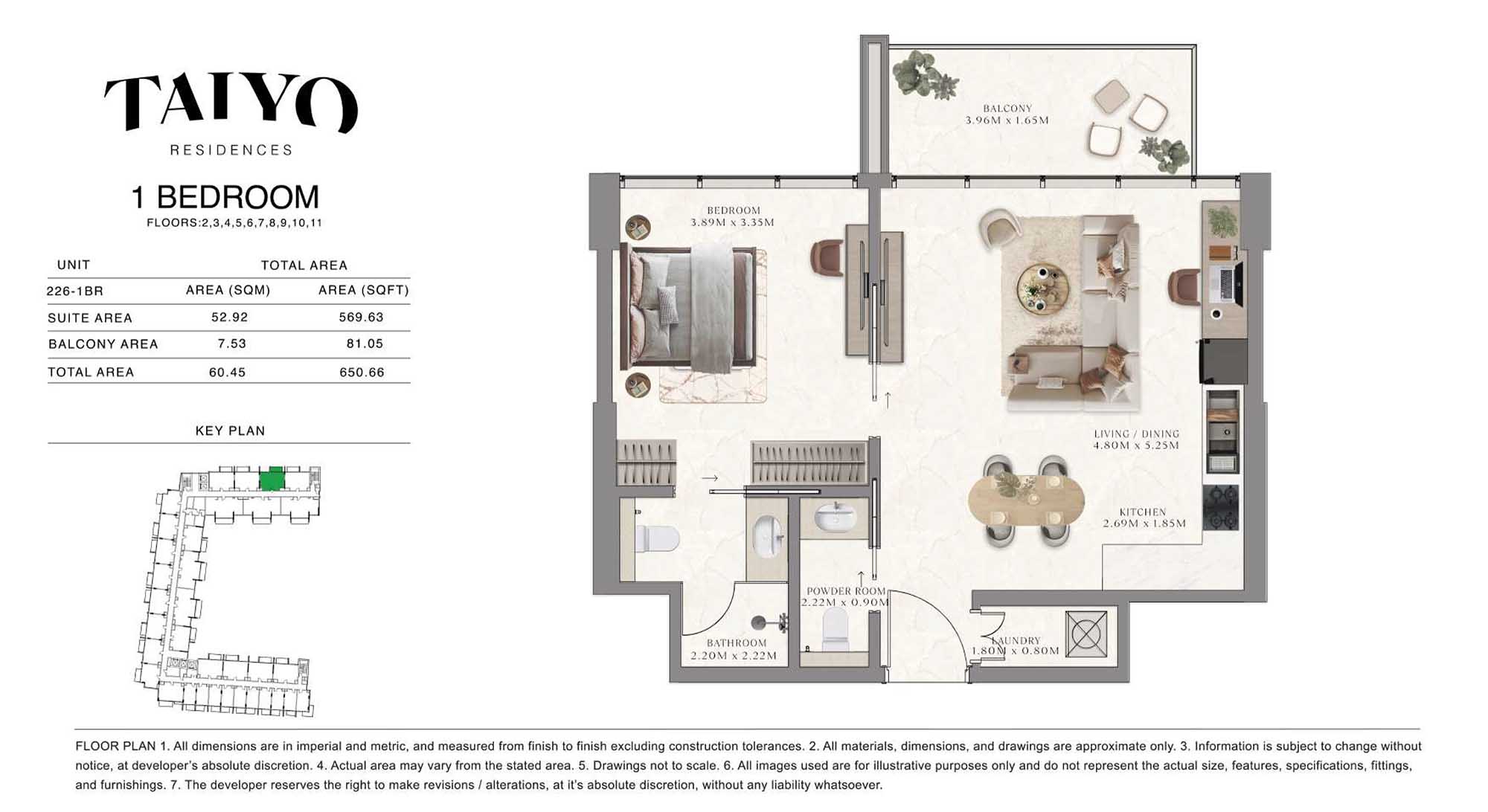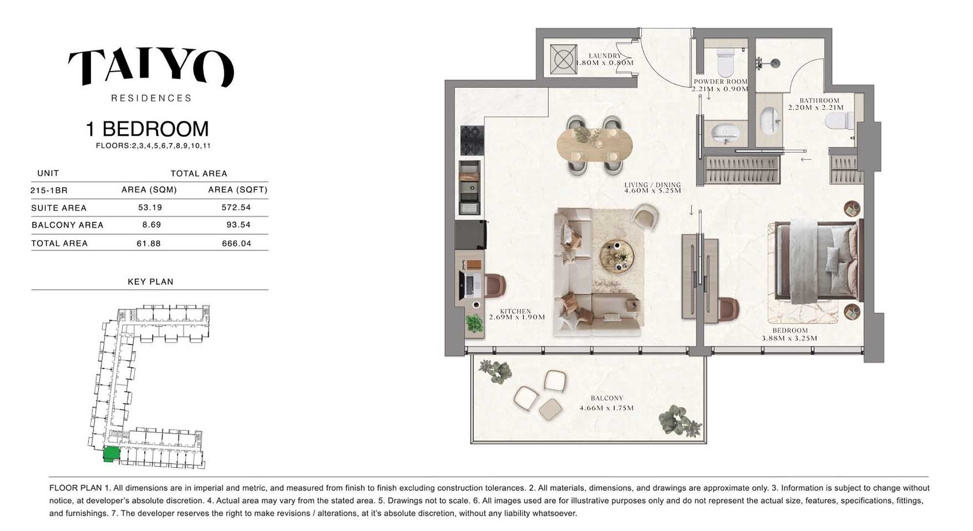 Taiyo Residences provides floor plans that demonstrate expert spatial design methodology with studios, 1, 2 and 3-bedroom apartments. All layouts within the development maintain a harmonious blend of style and practicality along with effective paths and abundant daylight. The units have integrated kitchens, premium sanitary fixtures and private balcony extensions which provide an indoor-outdoor living experience. Residents experience an airy and welcoming atmosphere because the tall ceilings and windows extending to the ceiling promote an open environment.