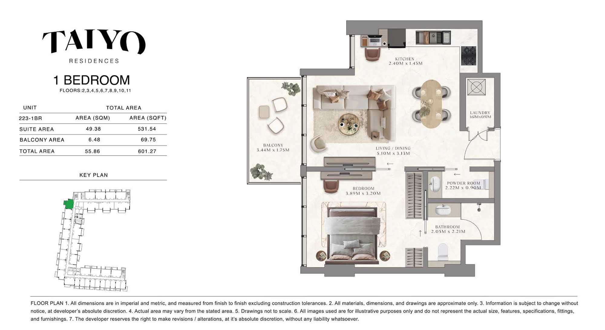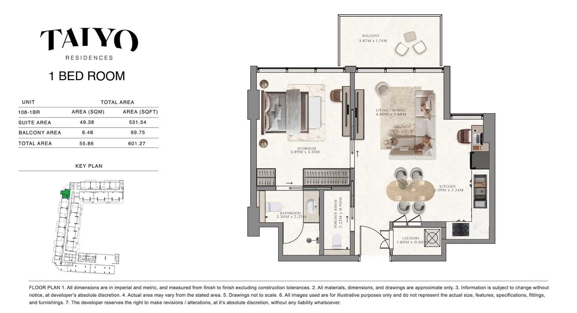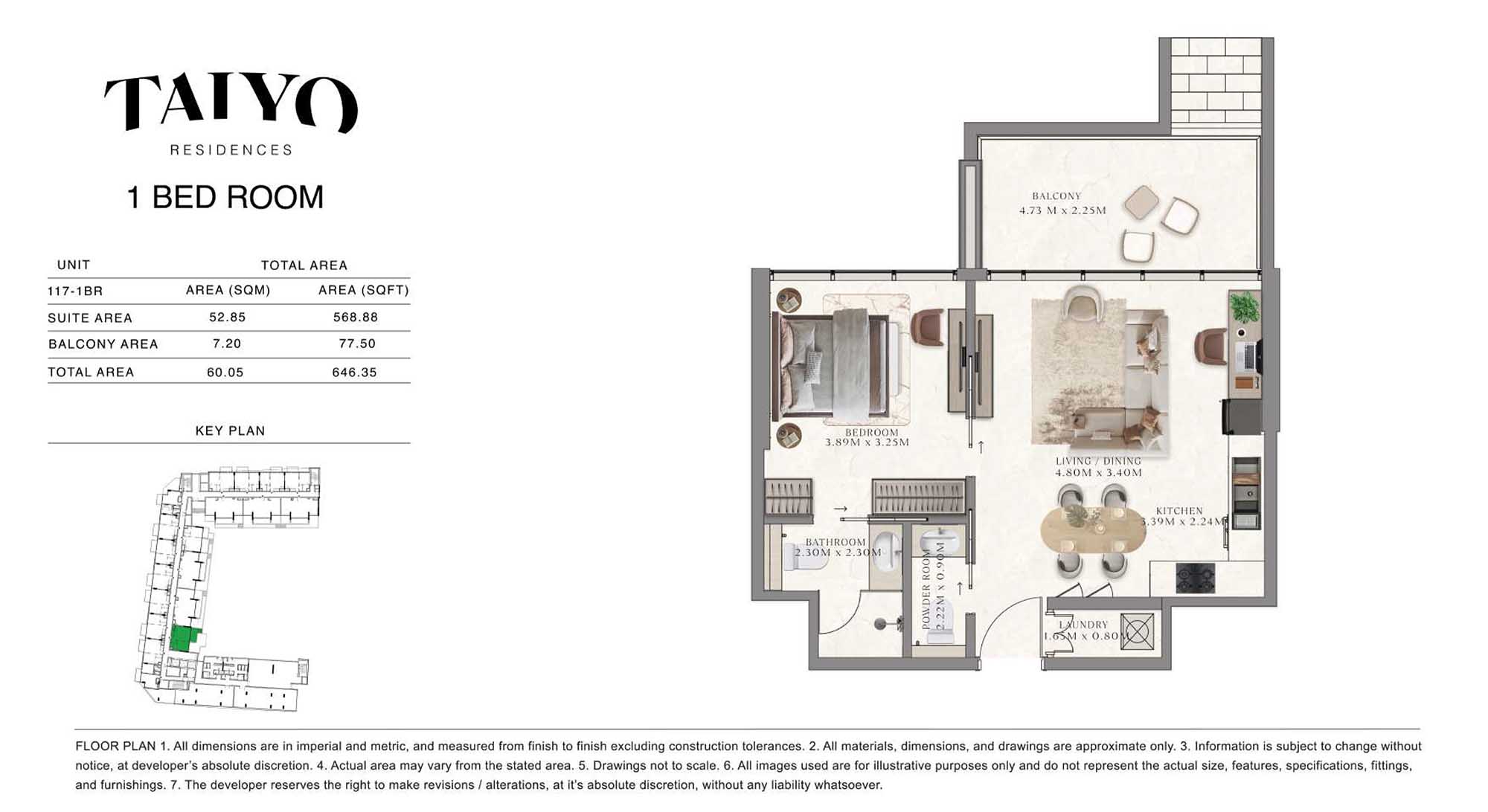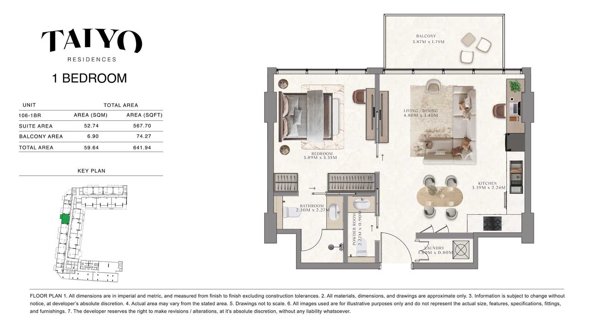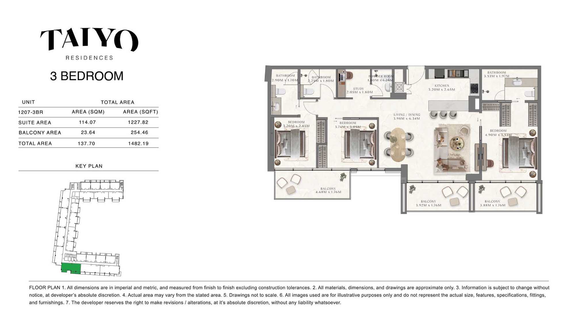 Taiyo Residences provides floor plans that demonstrate expert spatial design methodology with studios, 1, 2 and 3-bedroom apartments. All layouts within the development maintain a harmonious blend of style and practicality along with effective paths and abundant daylight. The units have integrated kitchens, premium sanitary fixtures and private balcony extensions which provide an indoor-outdoor living experience. Residents experience an airy and welcoming atmosphere because the tall ceilings and windows extending to the ceiling promote an open environment.