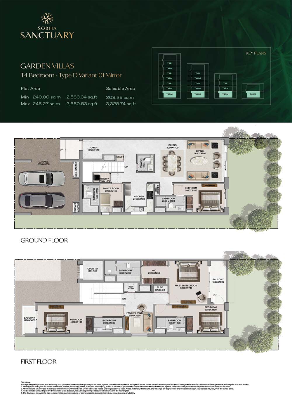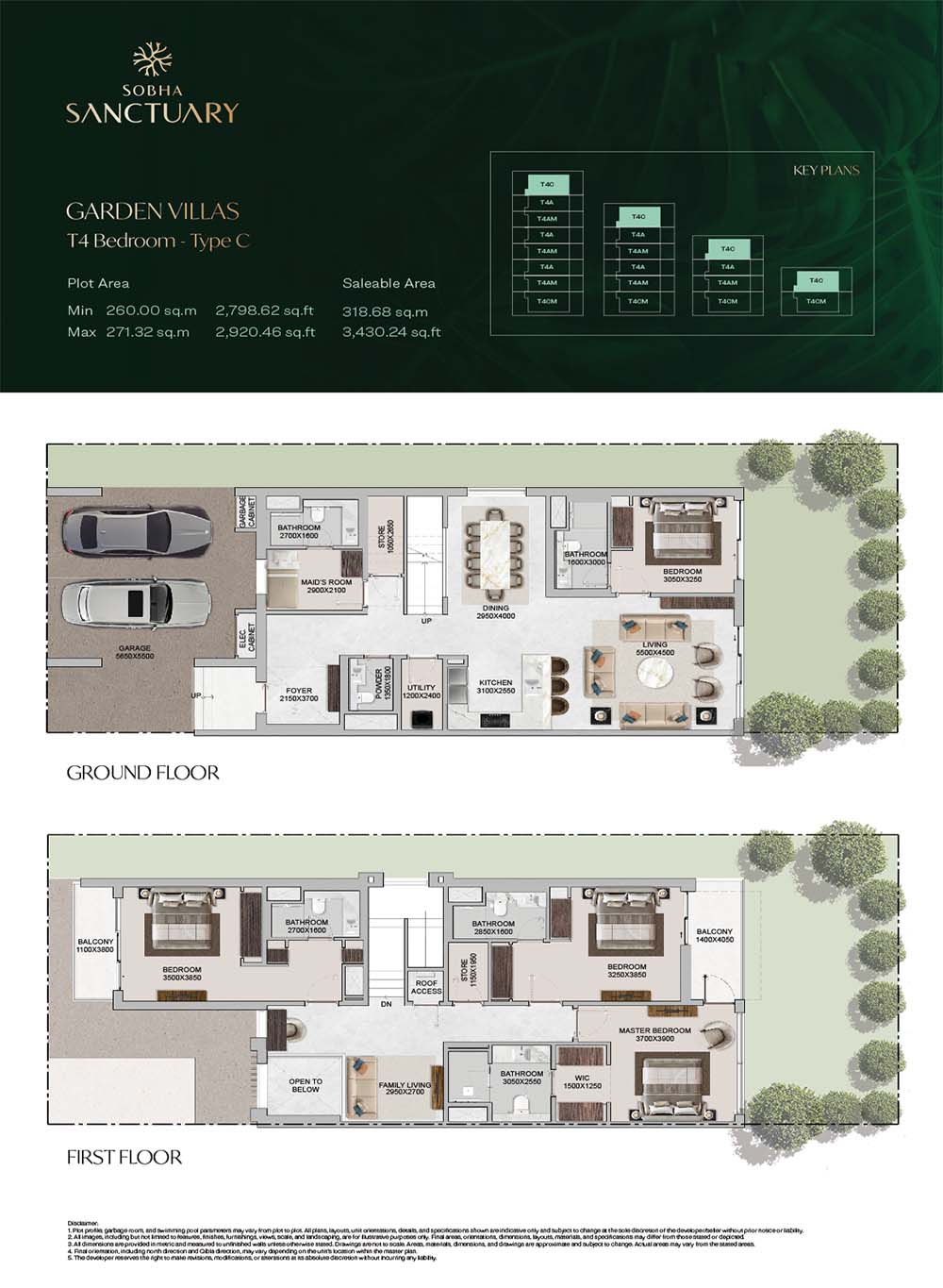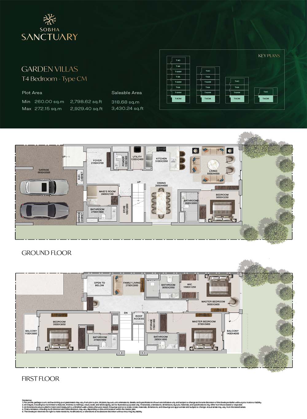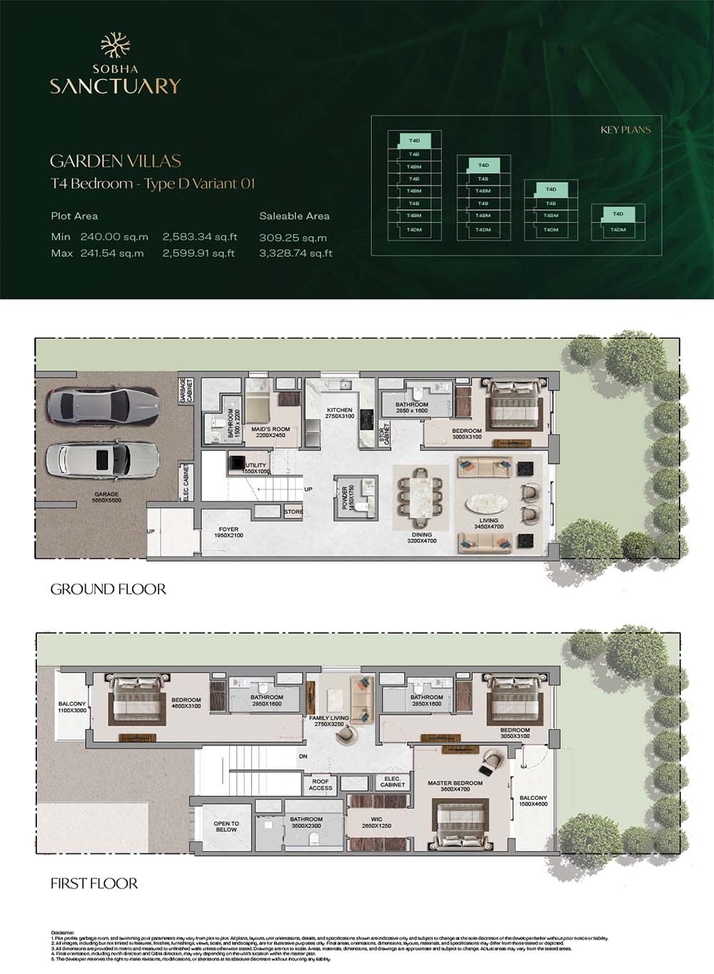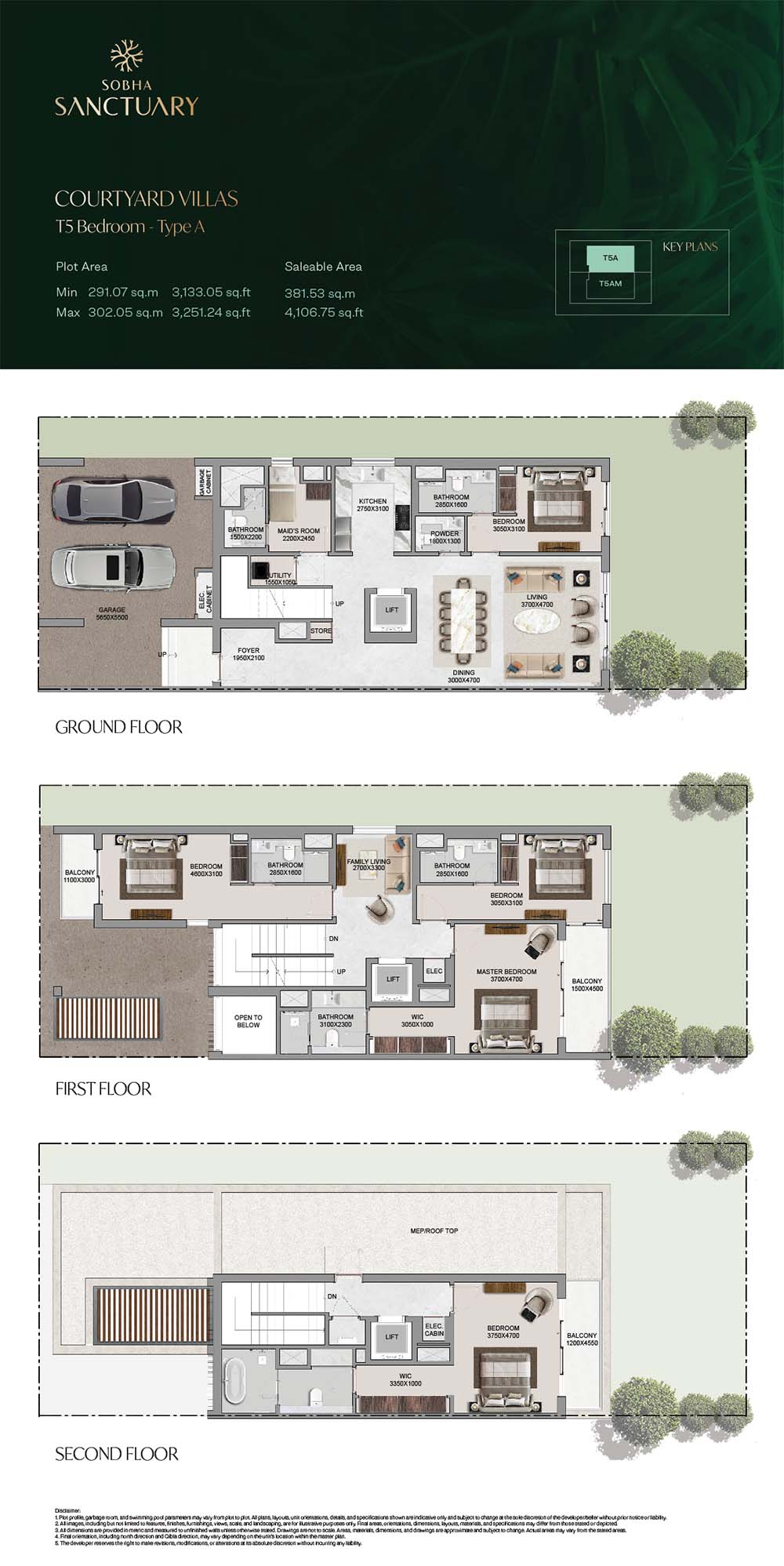 The Brooks is available in exclusively floor plans of spacious 4 & 5 bedroom garden and courtyard villas designs that are suited to the lifestyle of a modern family. The plans focus on natural lighting, flowing lines in the connections among the living, dining and outdoor environments. Living spaces are doubled, personal gardens, terraces, interior court yards also improve the quality of space and the amount of daylight. Some of the selected residences features private lifts, family lounges, or maid rooms, which verify the comfort and functionality at all levels. Both are designed to be privacy friendly and at the same time shared living to suit both daily living and special occasions.
