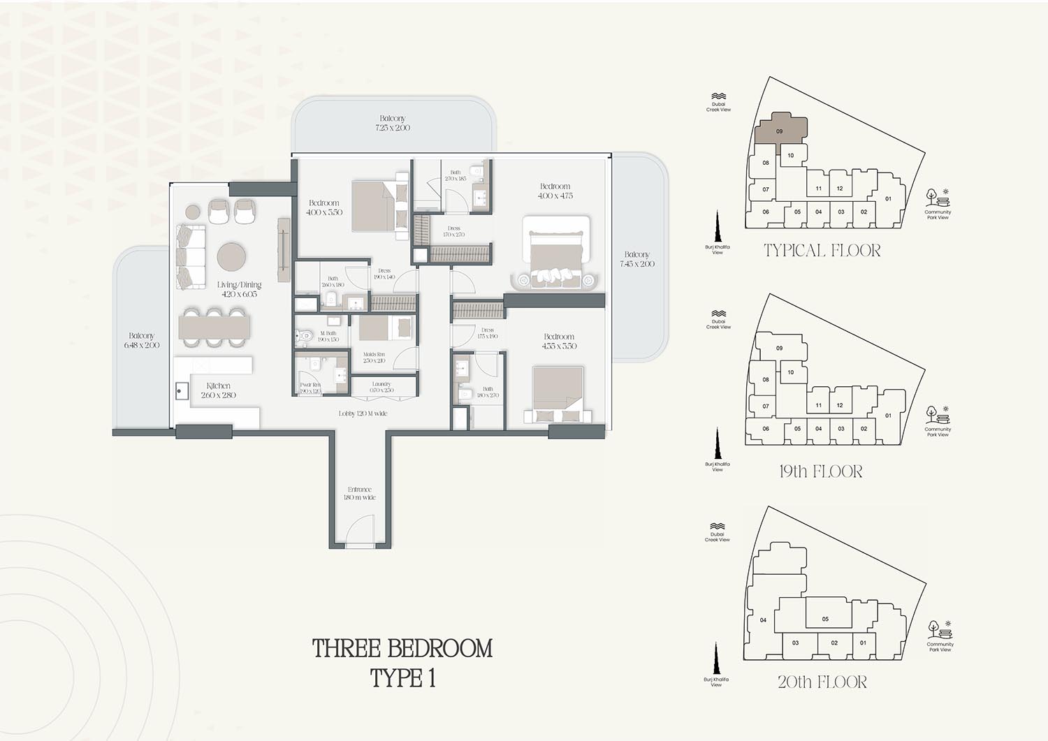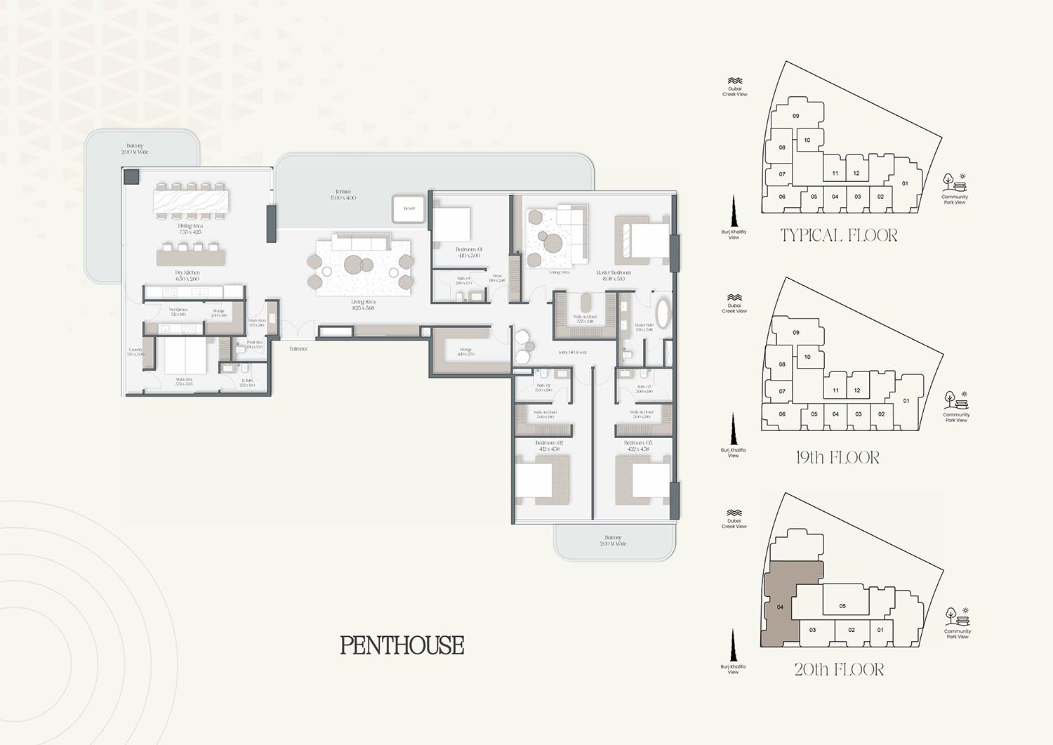 Each floor plans in The Caden has been carefully planned in terms of space, light and proportion offering 1, 2, 3 bedroom apartments and 4-bedroom duplexes, penthouses. The tower boasts of a sophisticated set with 221 homes consisting of luxury residences laced with premium class detailing and interiors. From smart-living features to the focused balanced elements, every unit is built with care and precision. The bedroom apartments are most comfortable to live in the unparalleled exclusivity, duplexes and penthouses are spacious and luxurious enough with panoramic views of the lagoons and skylines. The layouts are perfect blend of in-home comfort and natural environment, with cross-flow, and intelligent automation that would make experience graceful.