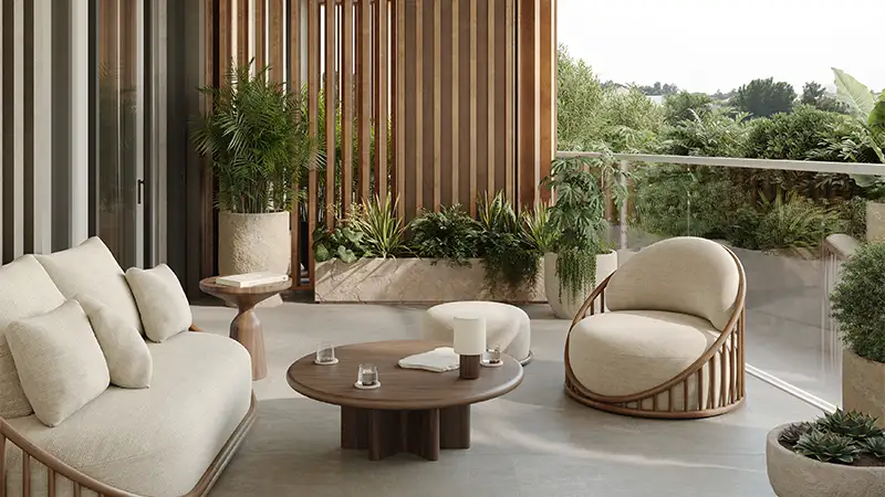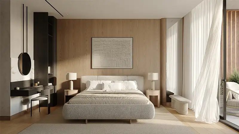 - Interiors curated with natural tones, textured finishes, and gentle lighting to create warm, calming, and enduring living spaces.