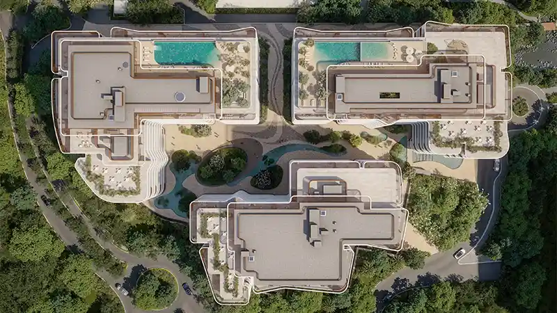 - Composed of three contemporary low-rise buildings, offering 286 residences with expansive terraces, open views, and serene natural surroundings.