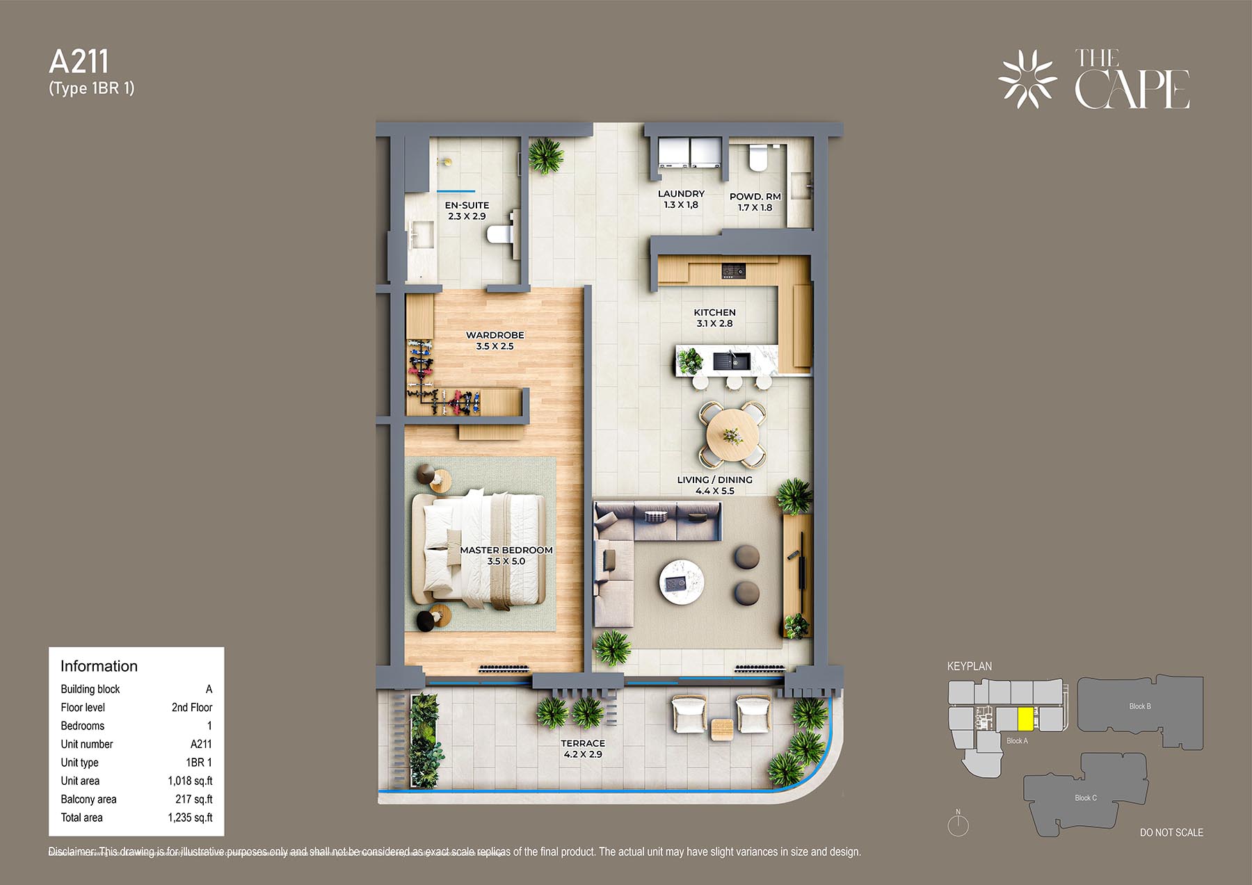 | Block A | 1 Bedroom | 2nd Floor Unit-A211 (Type 1BR 1) | 1235.00 Sq Ft | Click Here |