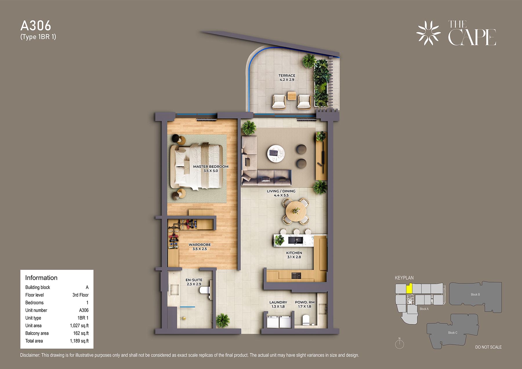 | Block A | 1 Bedroom | 3rd Floor Unit-A306 (Type 1BR 1) | 1189.00 Sq Ft | Click Here |