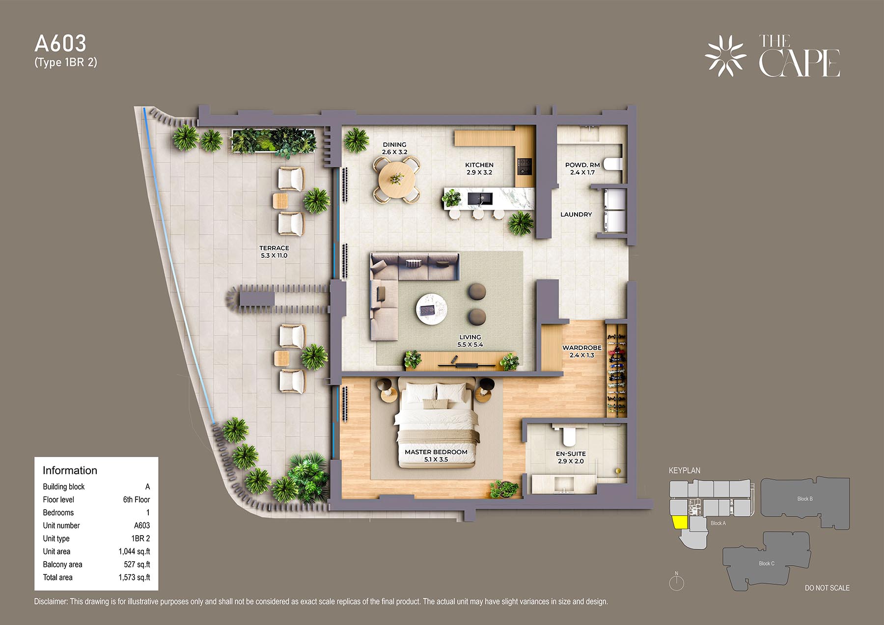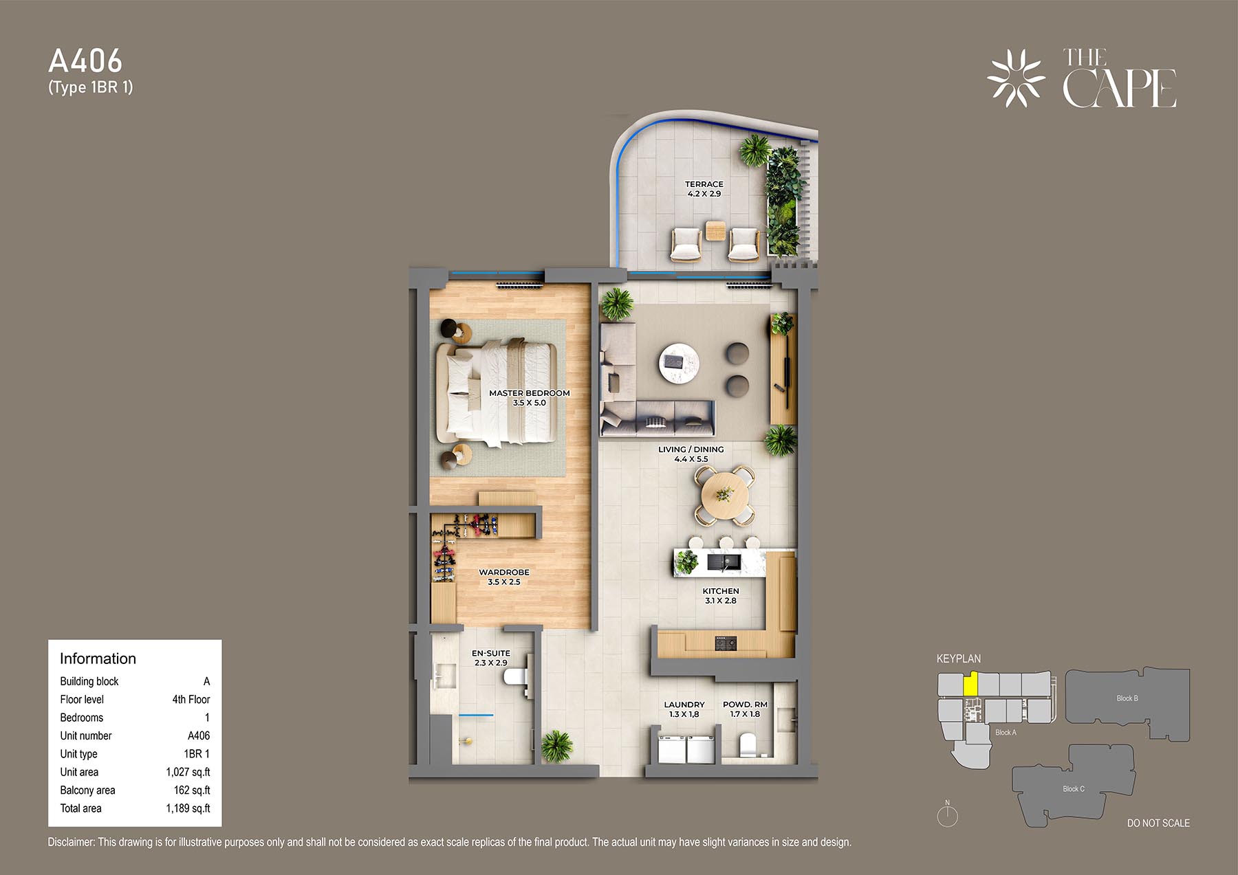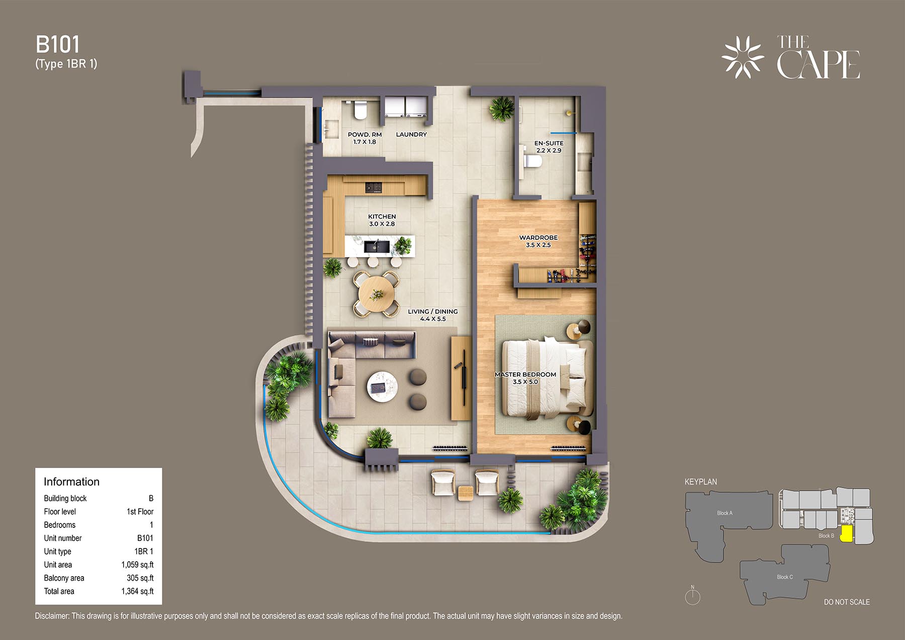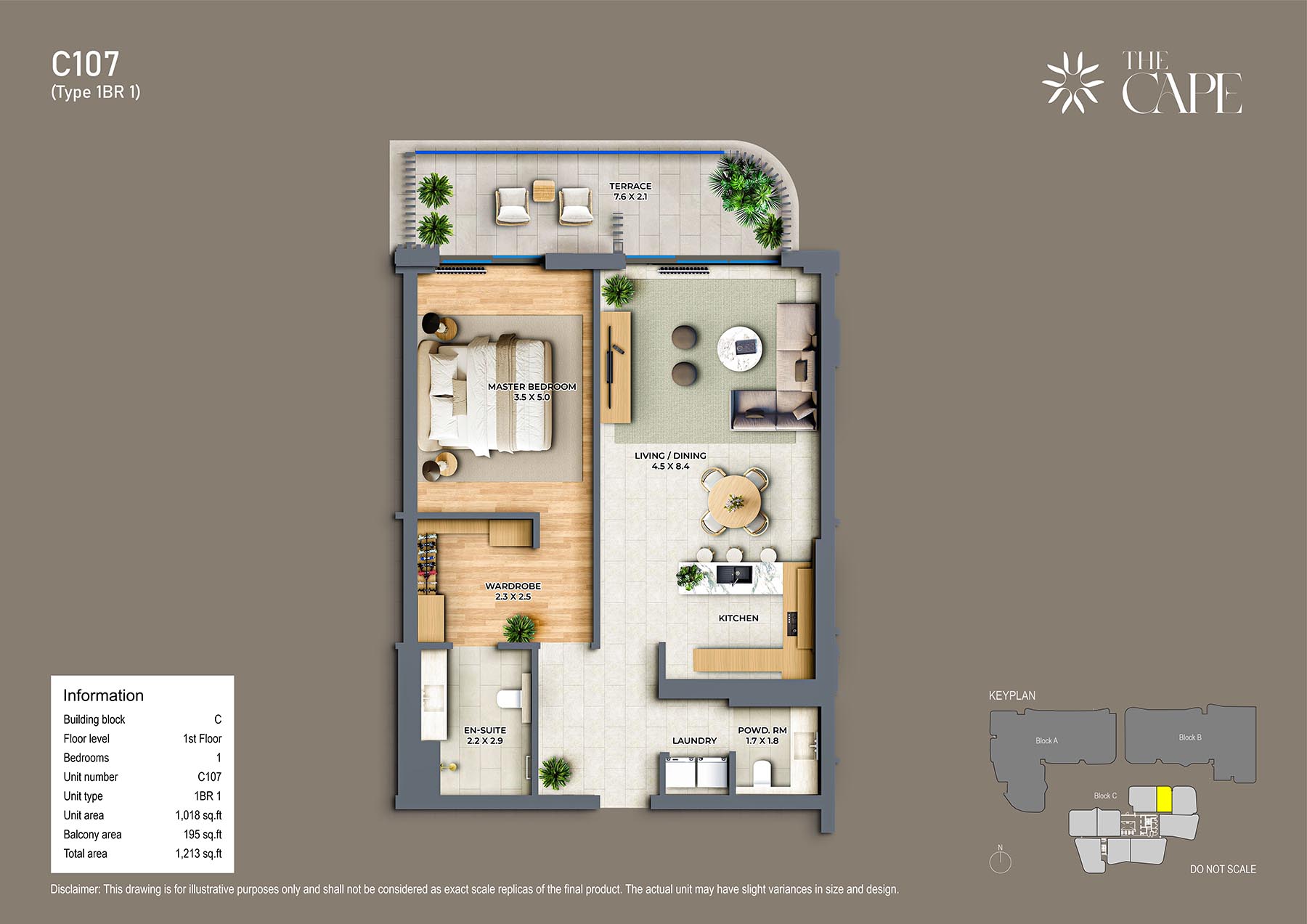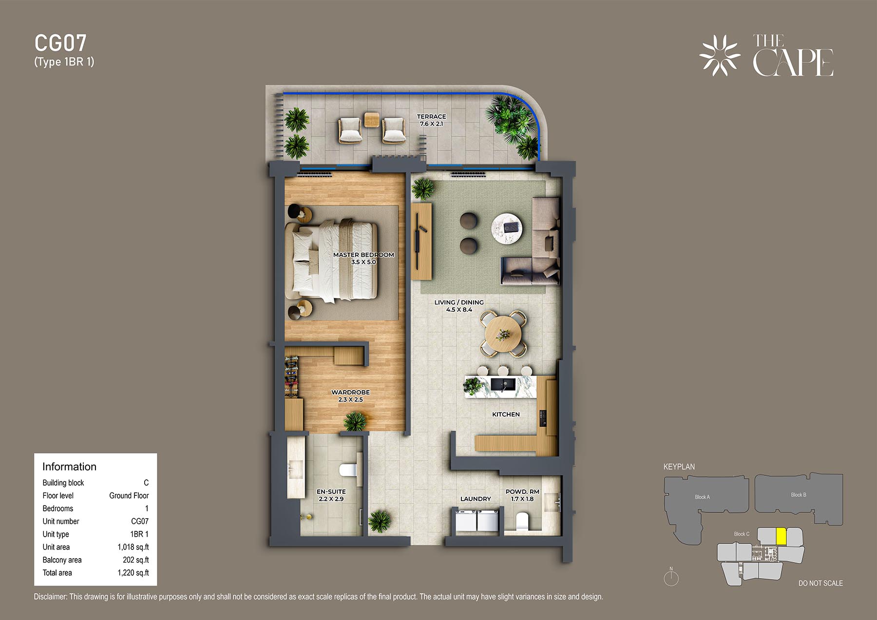 | Block C | 1 Bedroom | Ground Floor Unit-CG07 (Type 1BR 1) | 1220.00 Sq Ft | Click Here |