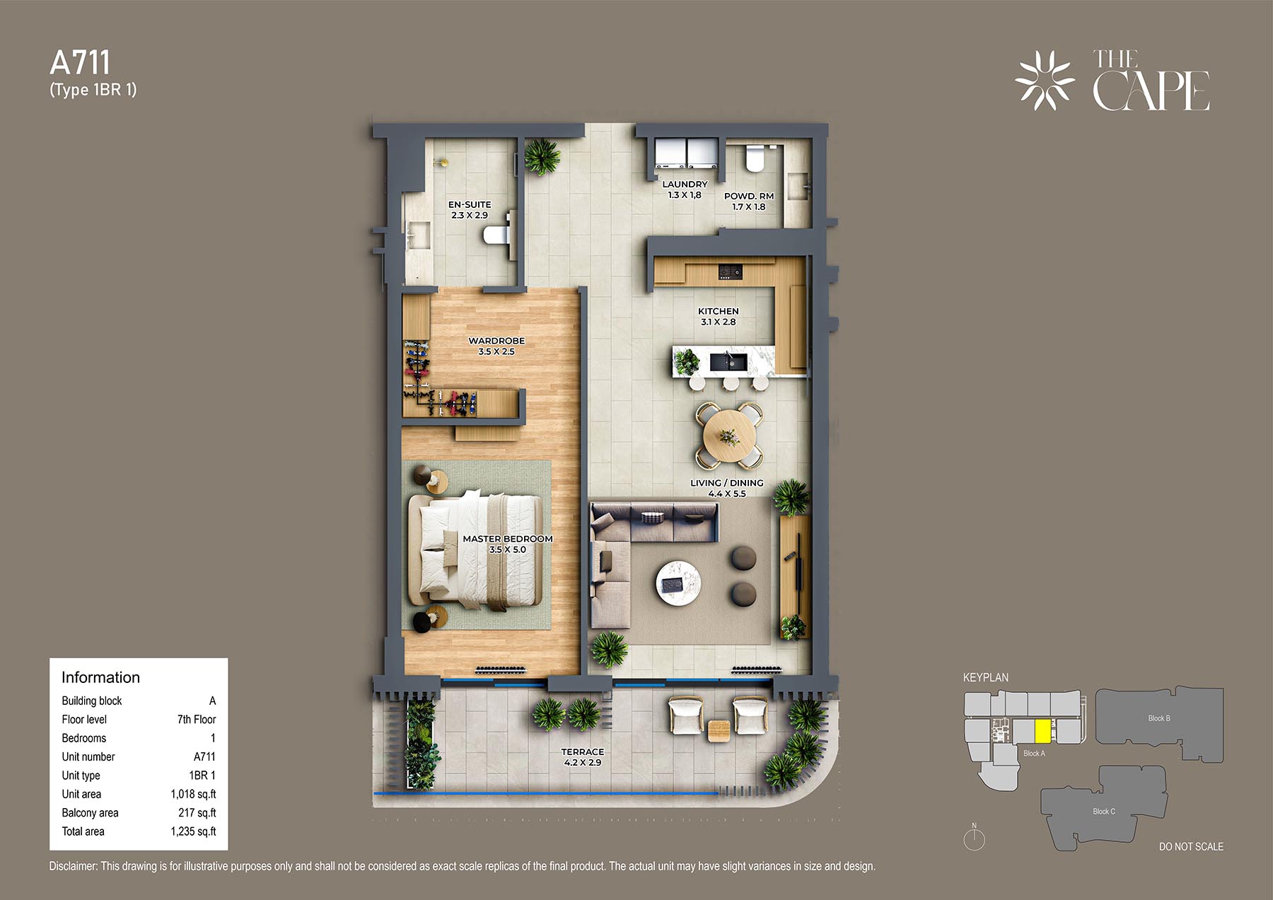 | Block A | 1 Bedroom | 7th Floor Unit-A711 (Type 1BR 1) | 1235.00 Sq Ft | Click Here |