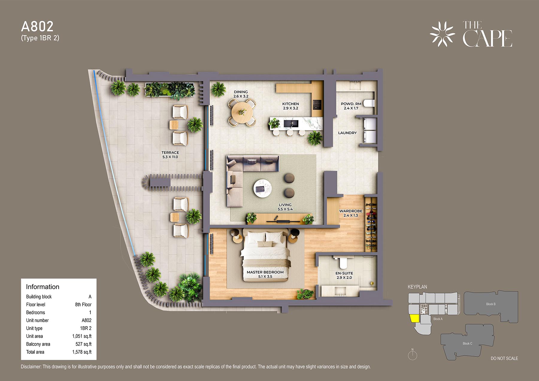 | Block A | 1 Bedroom | 8th Floor Unit-A802 (Type 1BR 2) | 1578.00 Sq Ft | Click Here |