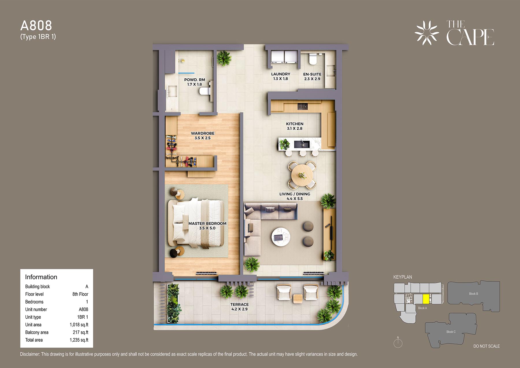 | Block A | 1 Bedroom | 8th Floor Unit-A808 (Type 1BR 1) | 1235.00 Sq Ft | Click Here |