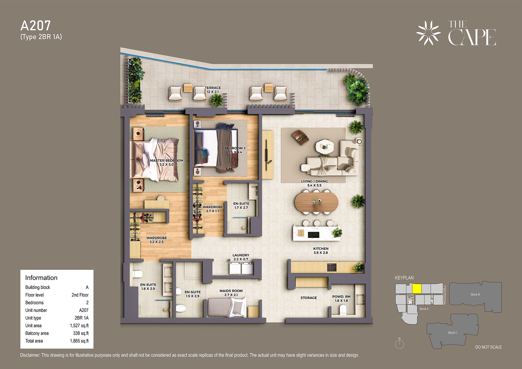 | Block C | 2 Bedrooms + Maid | 2nd Floor Unit-C207 (Type 2BR 3) | 2197.00 Sq Ft | Click Here |
