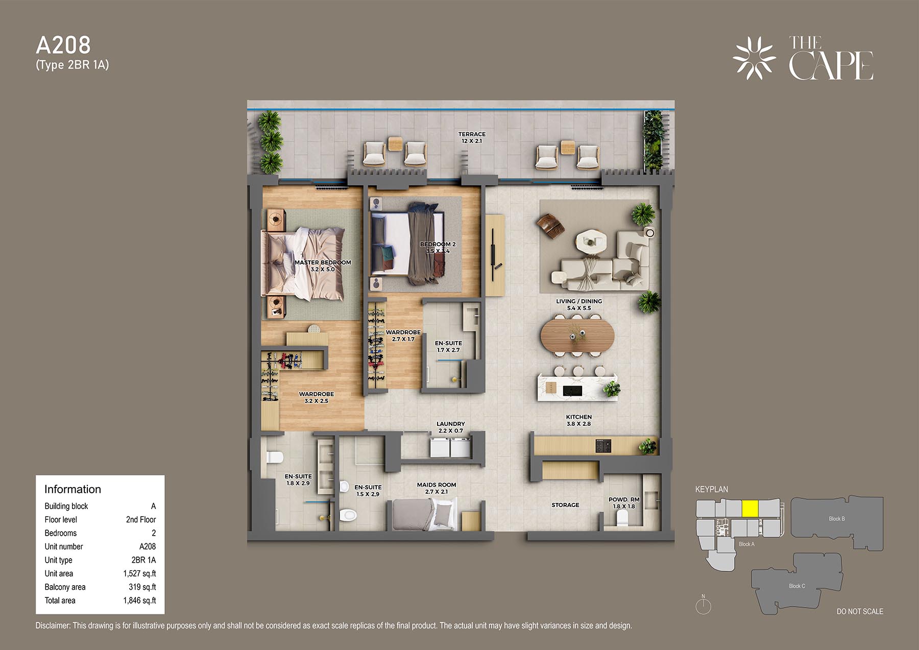 | Block A | 2 Bedrooms + Maid | 2nd Floor Unit-A208 (Type 2BR 1A) | 1846.00 Sq Ft | Click Here |