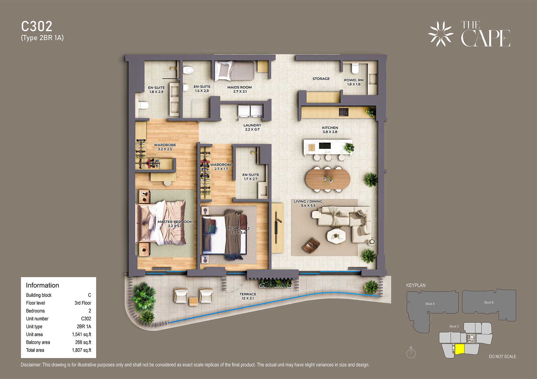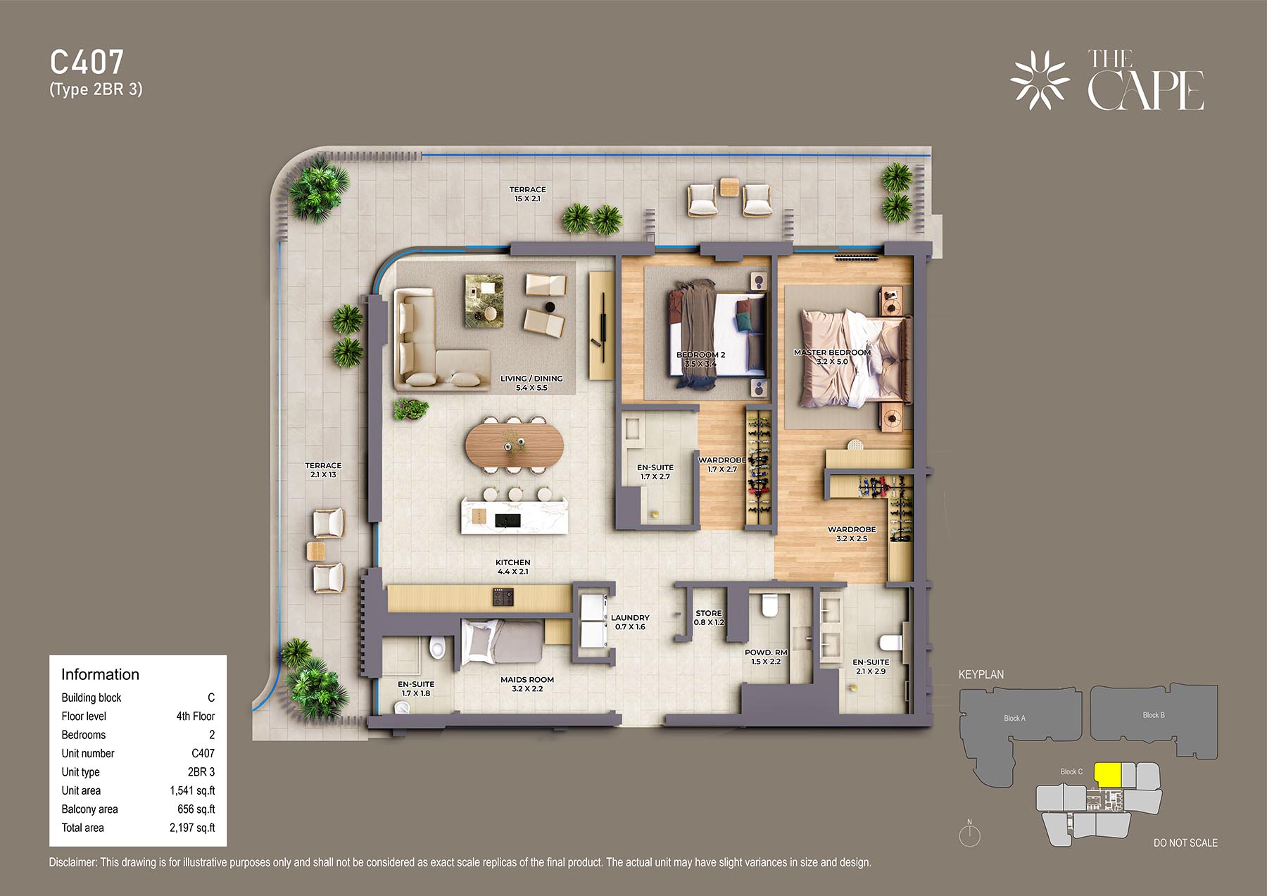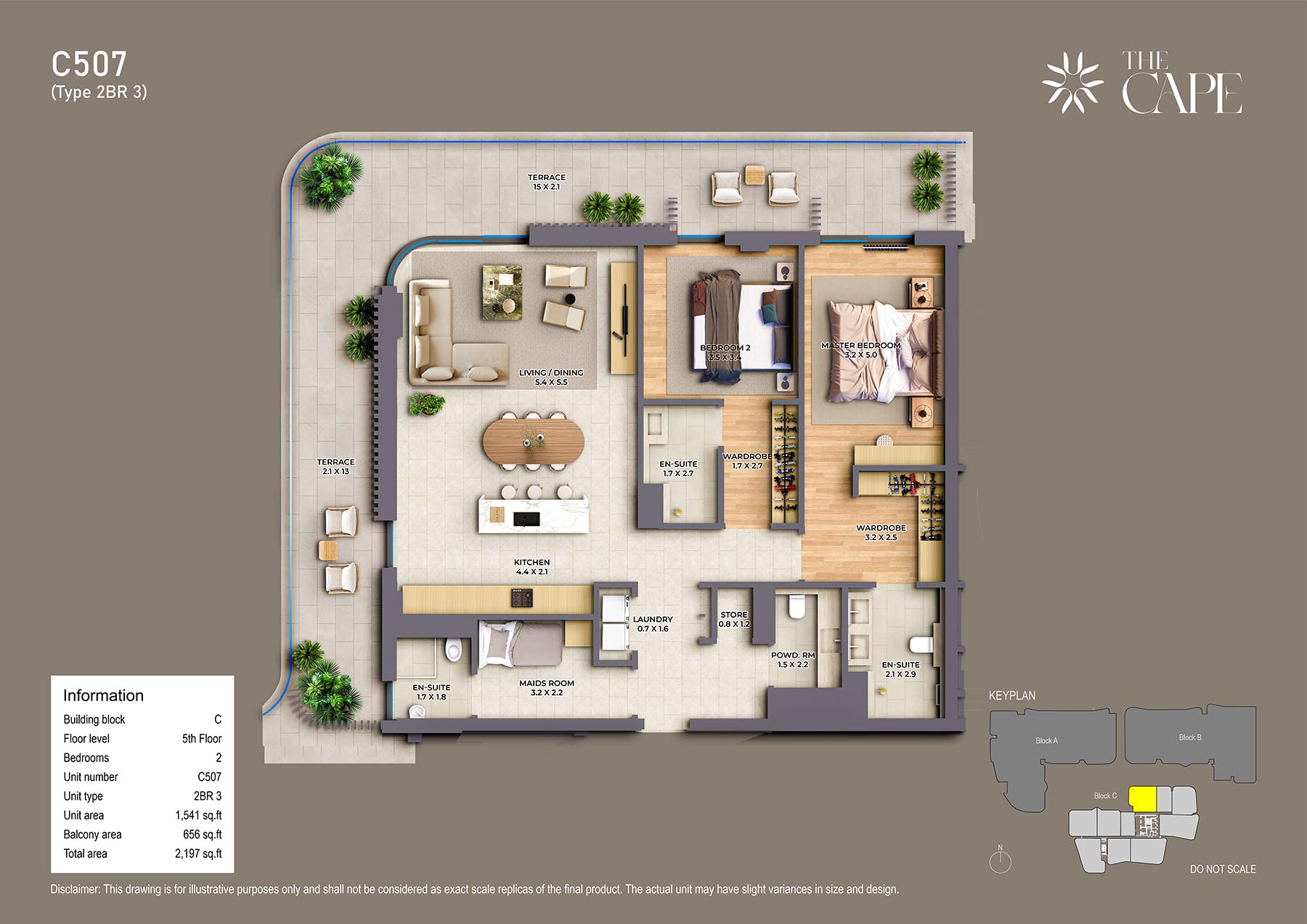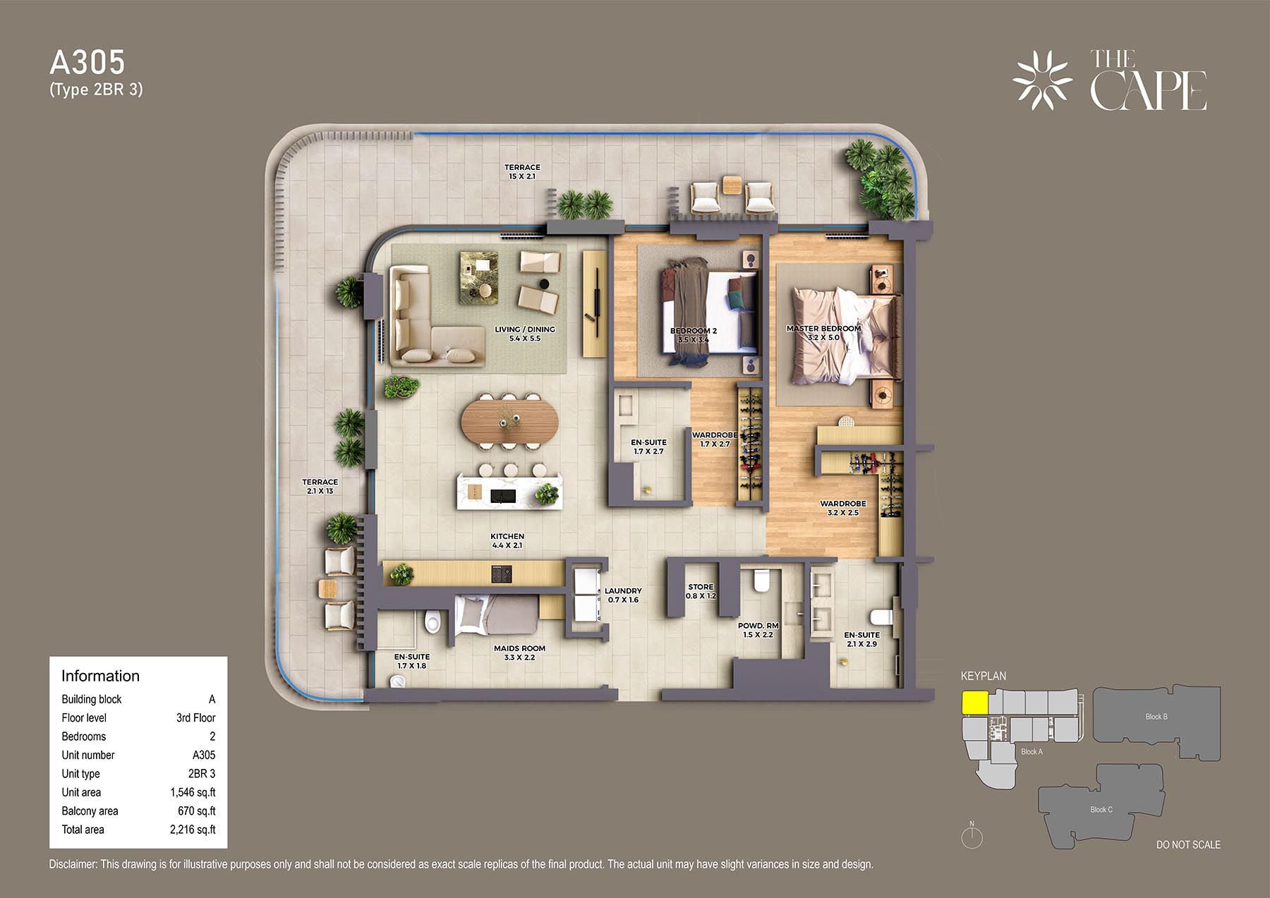 | Block C | 2 Bedrooms + Maid | 3rd Floor Unit-C307 (Type 2BR 3) | 2197.00 Sq Ft | Click Here |