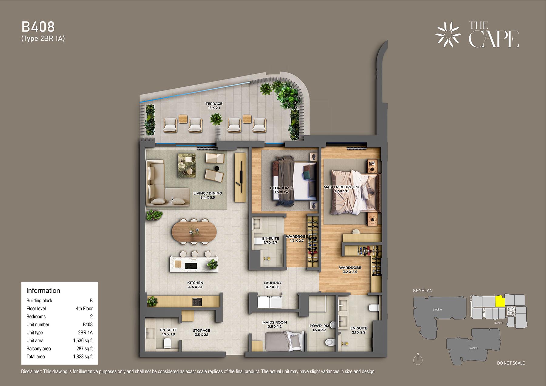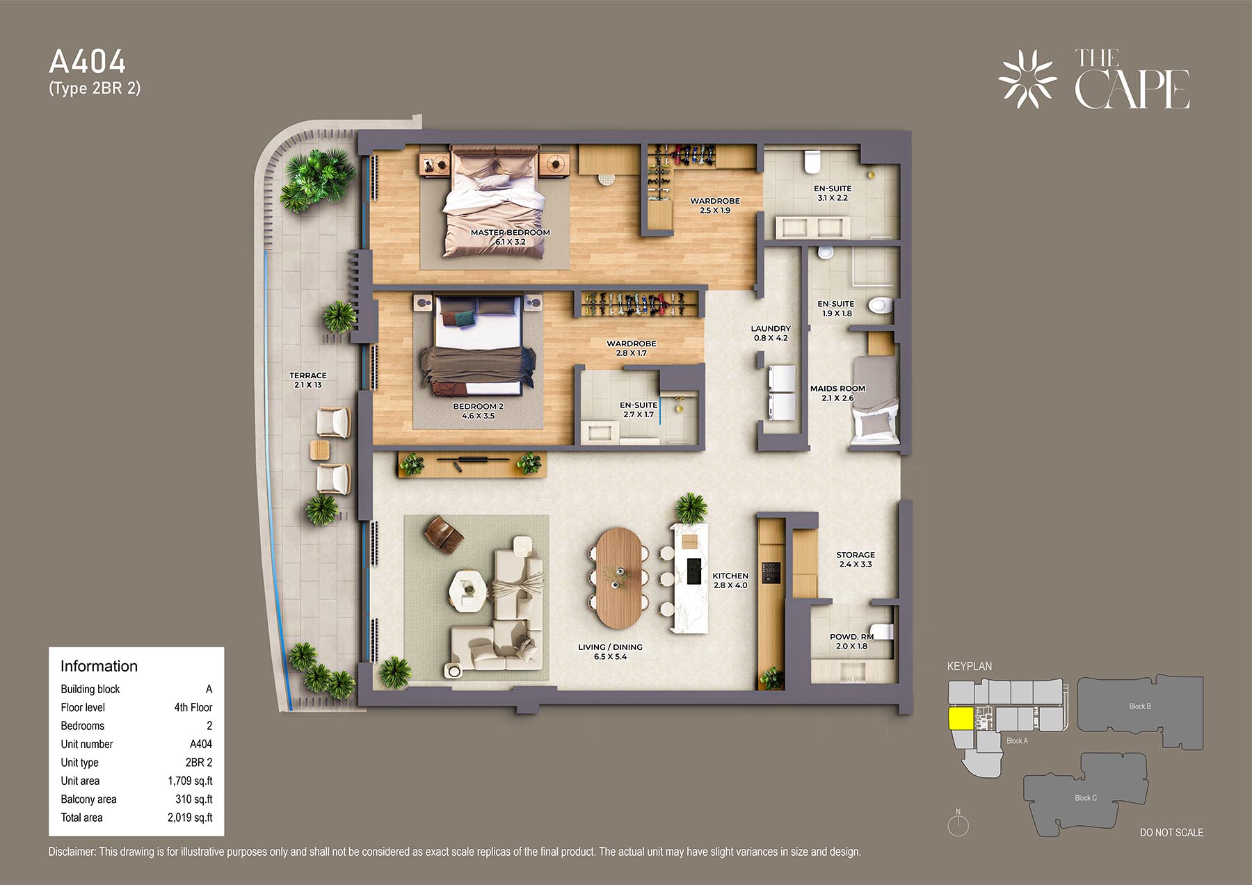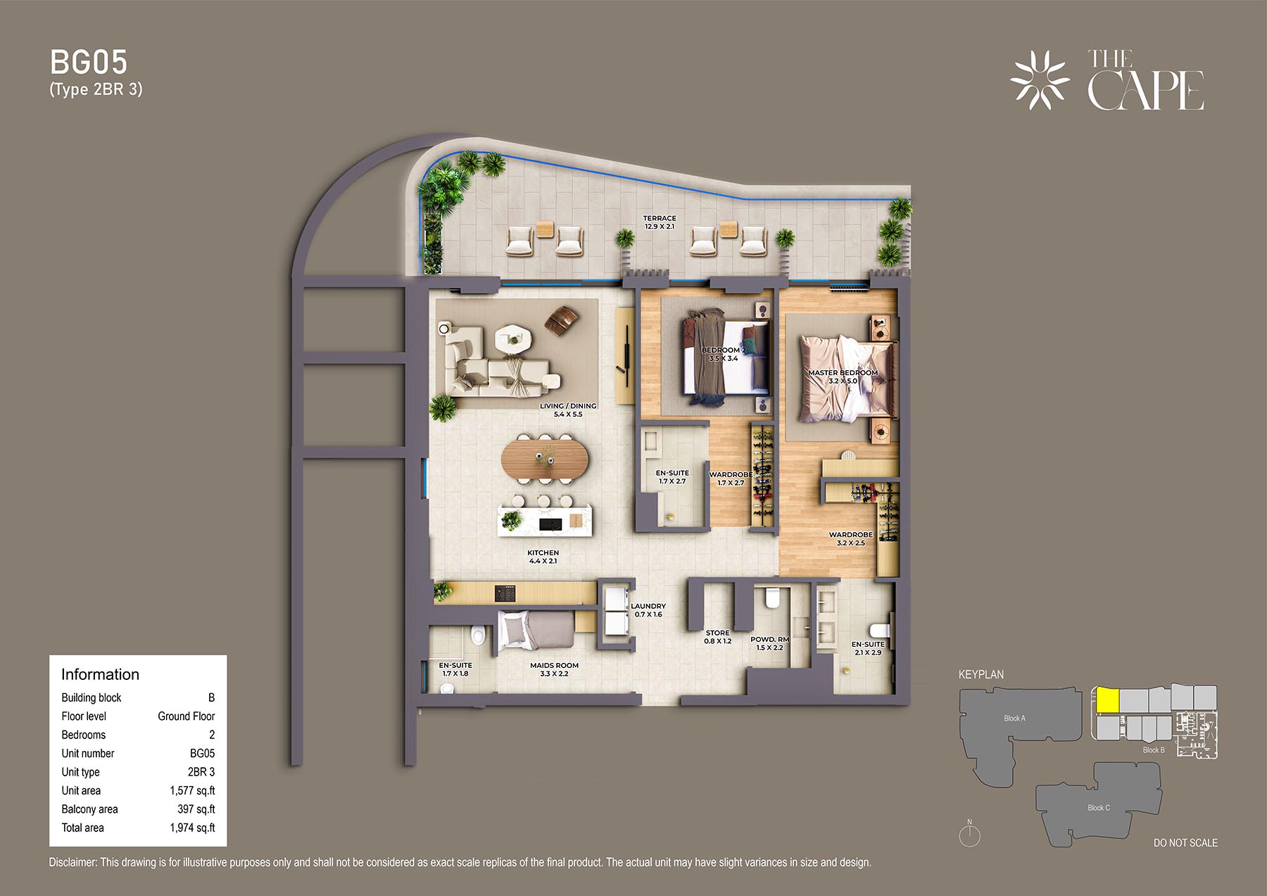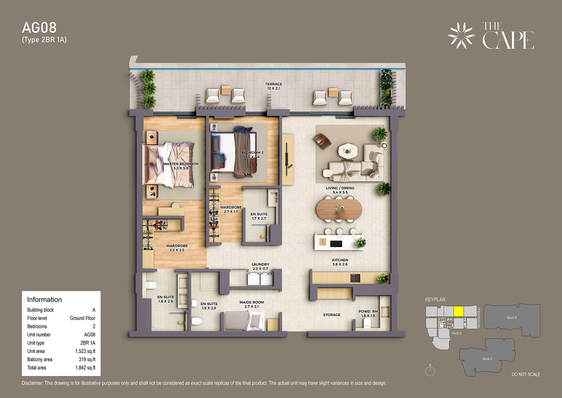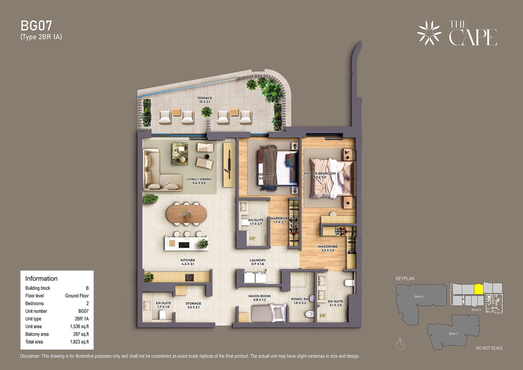 | Block C | 2 Bedrooms + Maid | Ground Floor Unit-CG02 (Type 2BR 1A) | 1823.00 Sq Ft | Click Here |