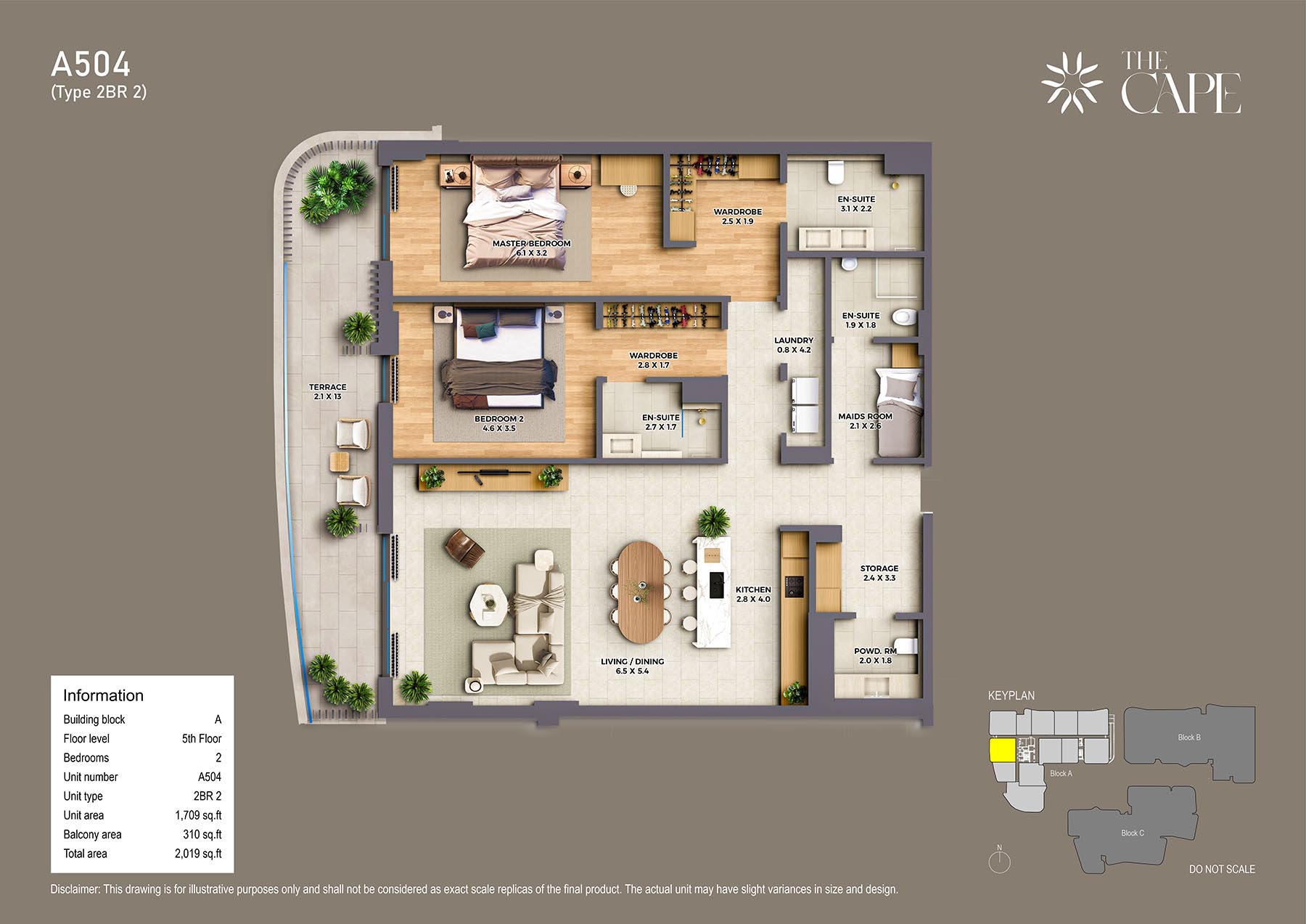 | Block A | 2 Bedrooms + Maid | 7th Floor Unit-A710 (Type 2BR 3) | 1905.00 Sq Ft | Click Here |