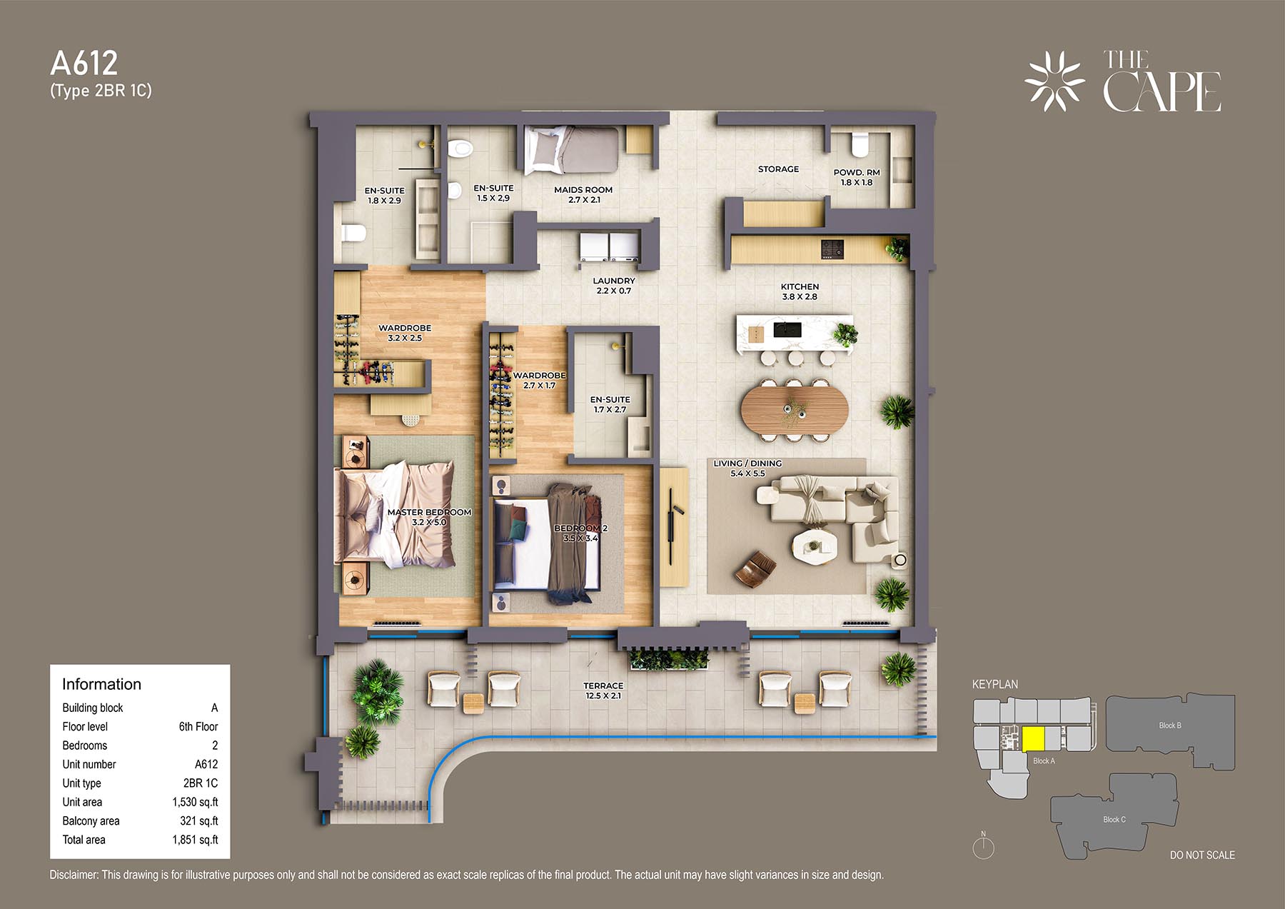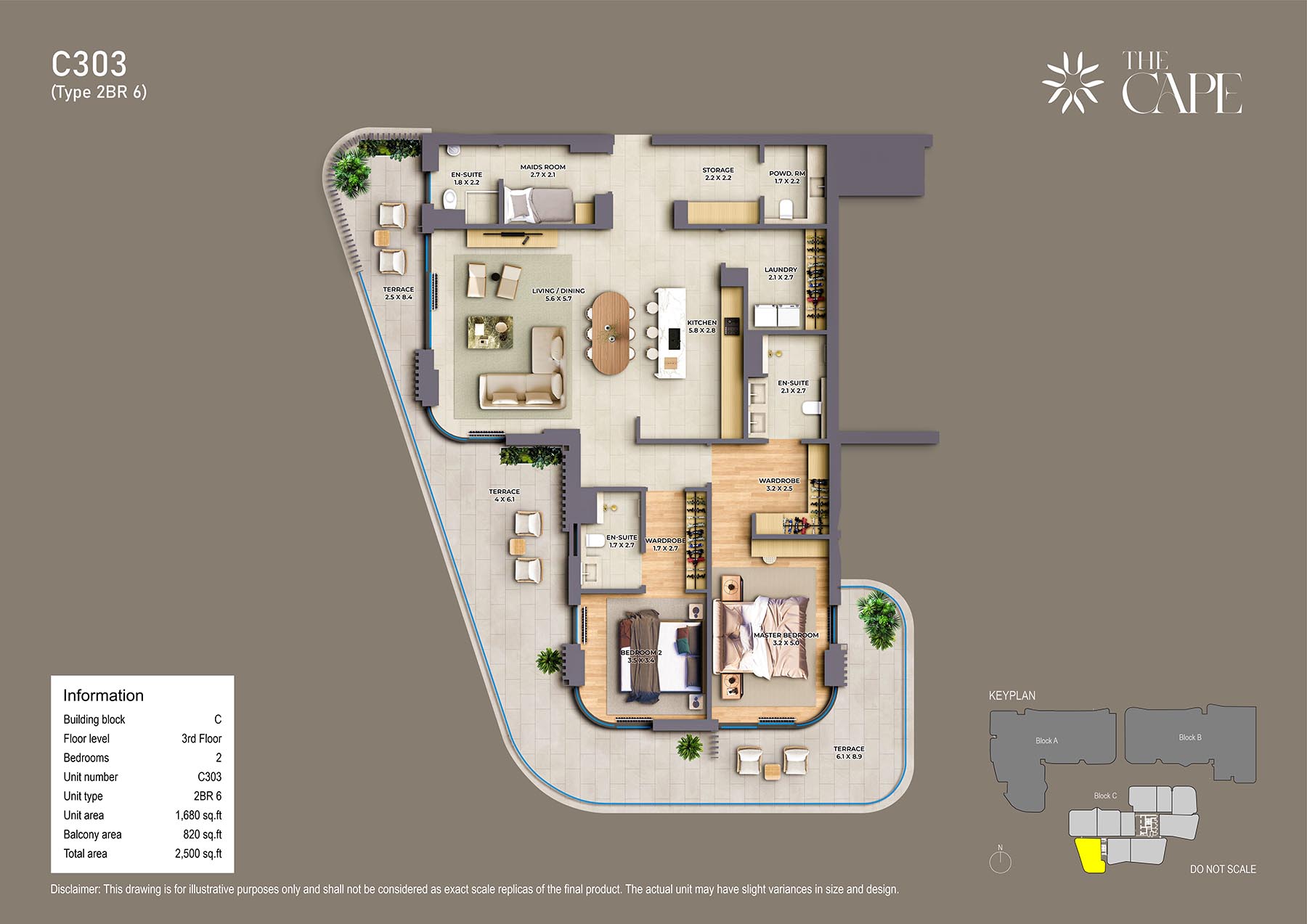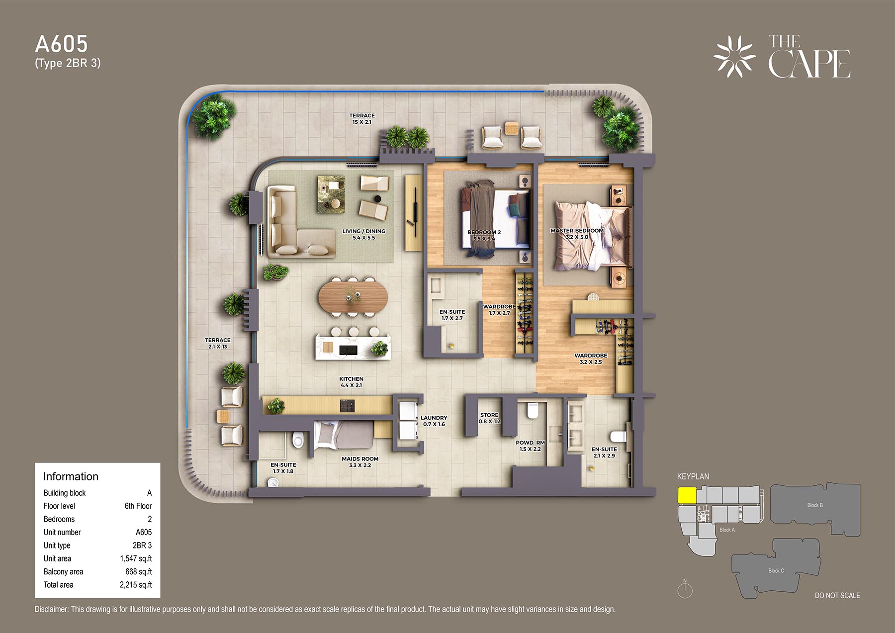 | Block C | 2 Bedrooms + Maid | 6th Floor Unit-C603 (Type 2BR 6) | 2500.00 Sq Ft | Click Here |