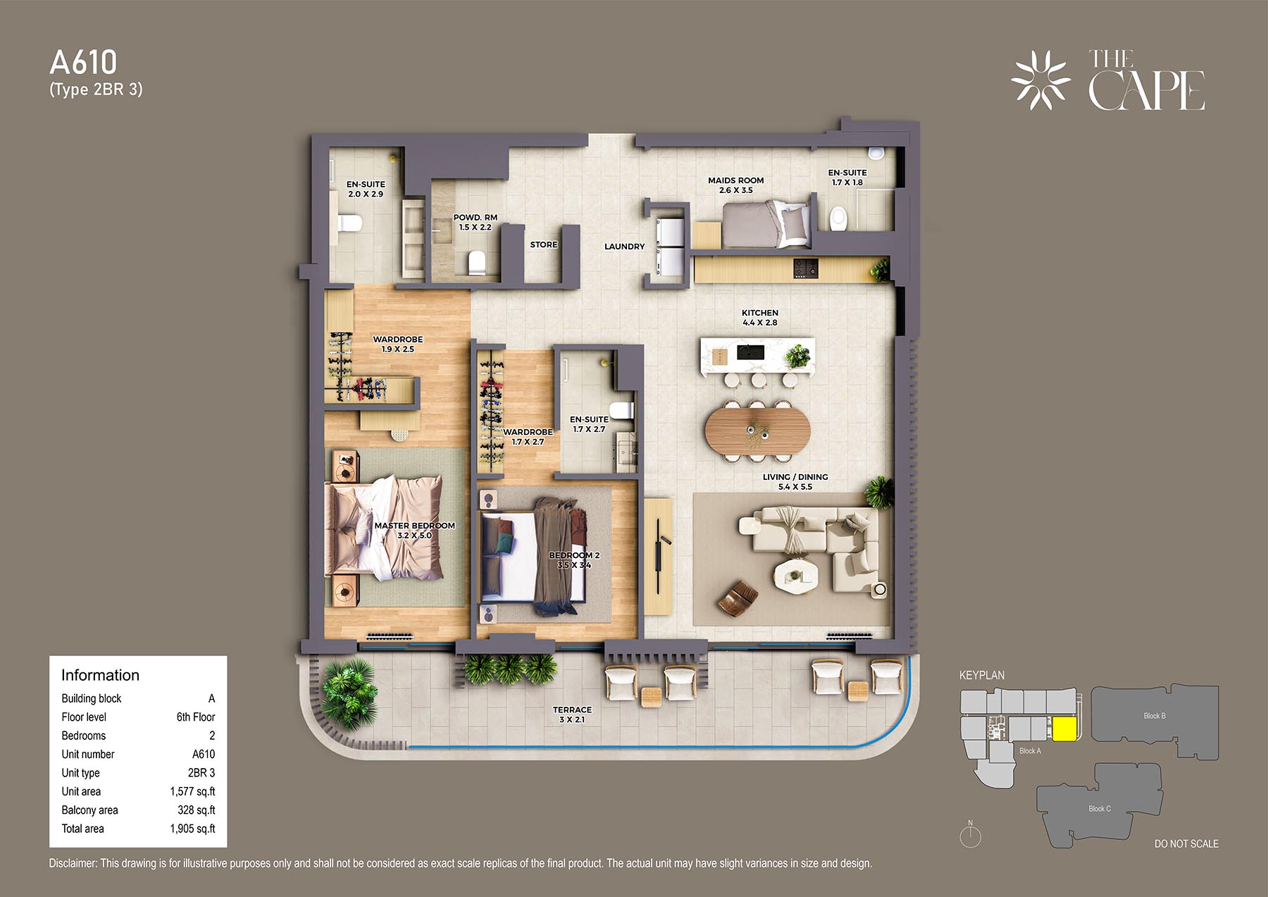 | Block C | 3 Bedrooms + Maid | 6th Floor Unit-C610 (Type 3BR 3) | 2677.00 Sq Ft | Click Here |
