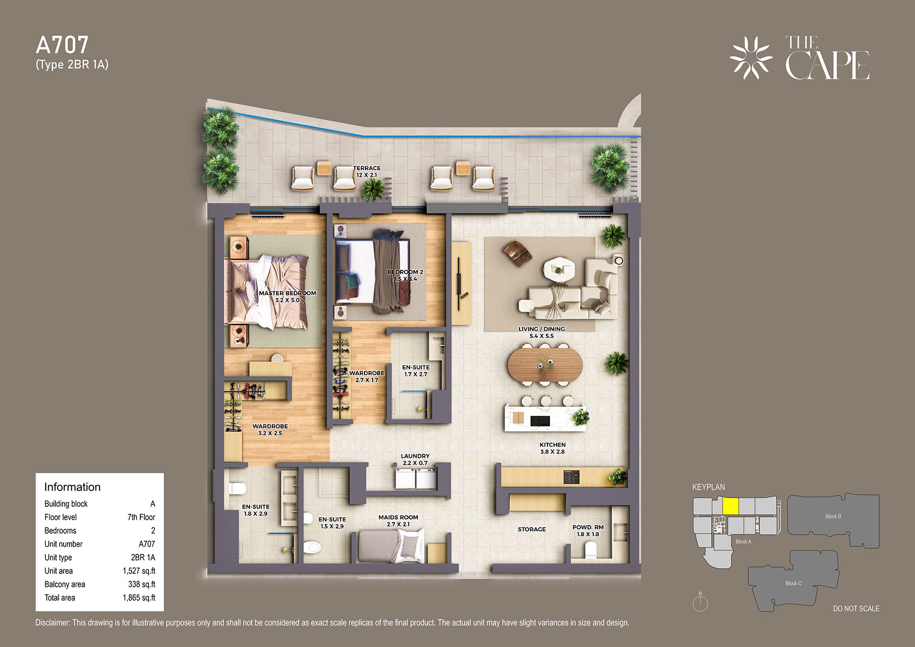 | Block A | 2 Bedrooms + Maid | 7th Floor Unit-A707 (Type 2BR 1A) | 1865.00 Sq Ft | Click Here |