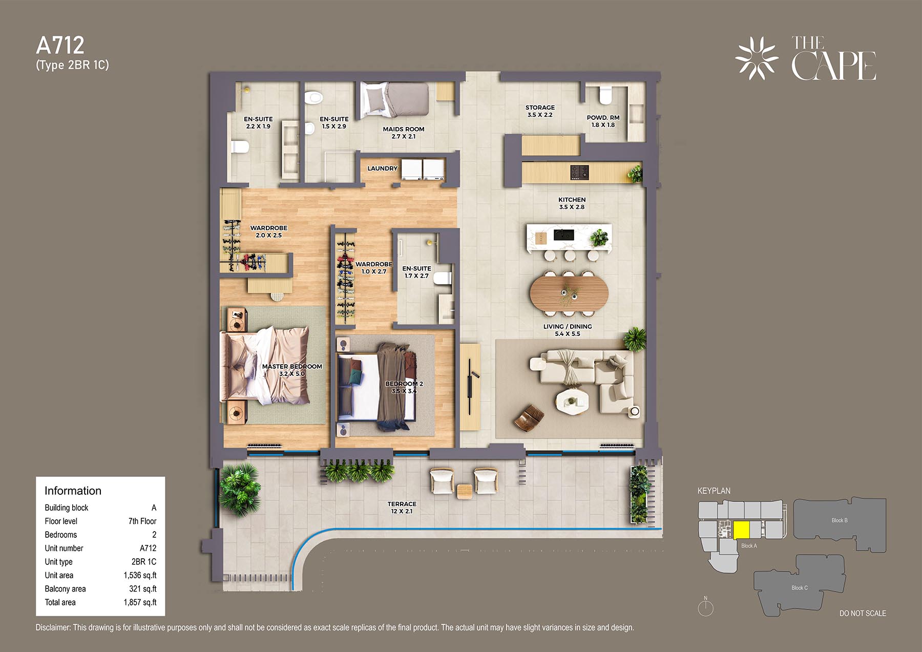 | Block A | 2 Bedrooms + Maid | 7th Floor Unit-A712 (Type 2BR 1C) | 1857.00 Sq Ft | Click Here |