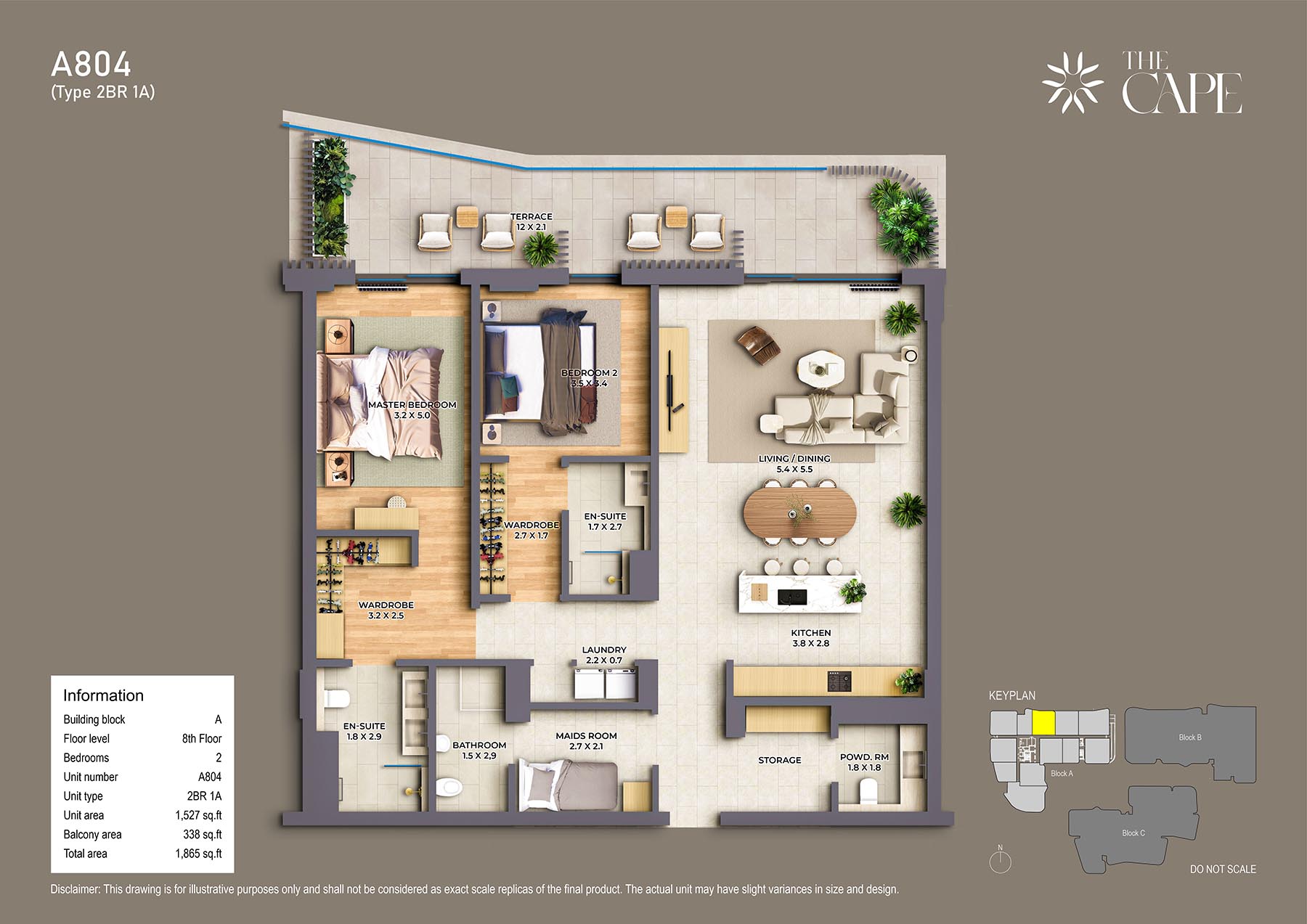 | Block A | 2 Bedrooms + Maid | 8th Floor Unit-A804 (Type 2BR 1A) | 1865.00 Sq Ft | Click Here |