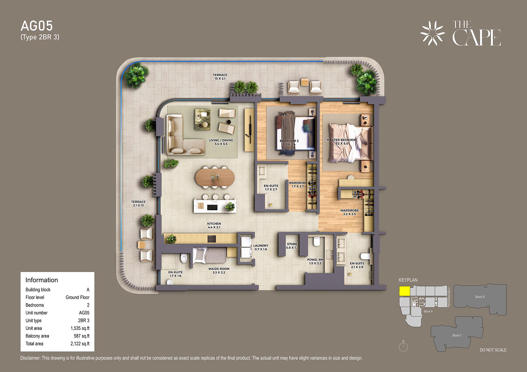 | Block A | 2 Bedrooms + Maid | Ground Floor Unit-AG05 (Type 2BR 3) | 2122.00 Sq Ft | Click Here |