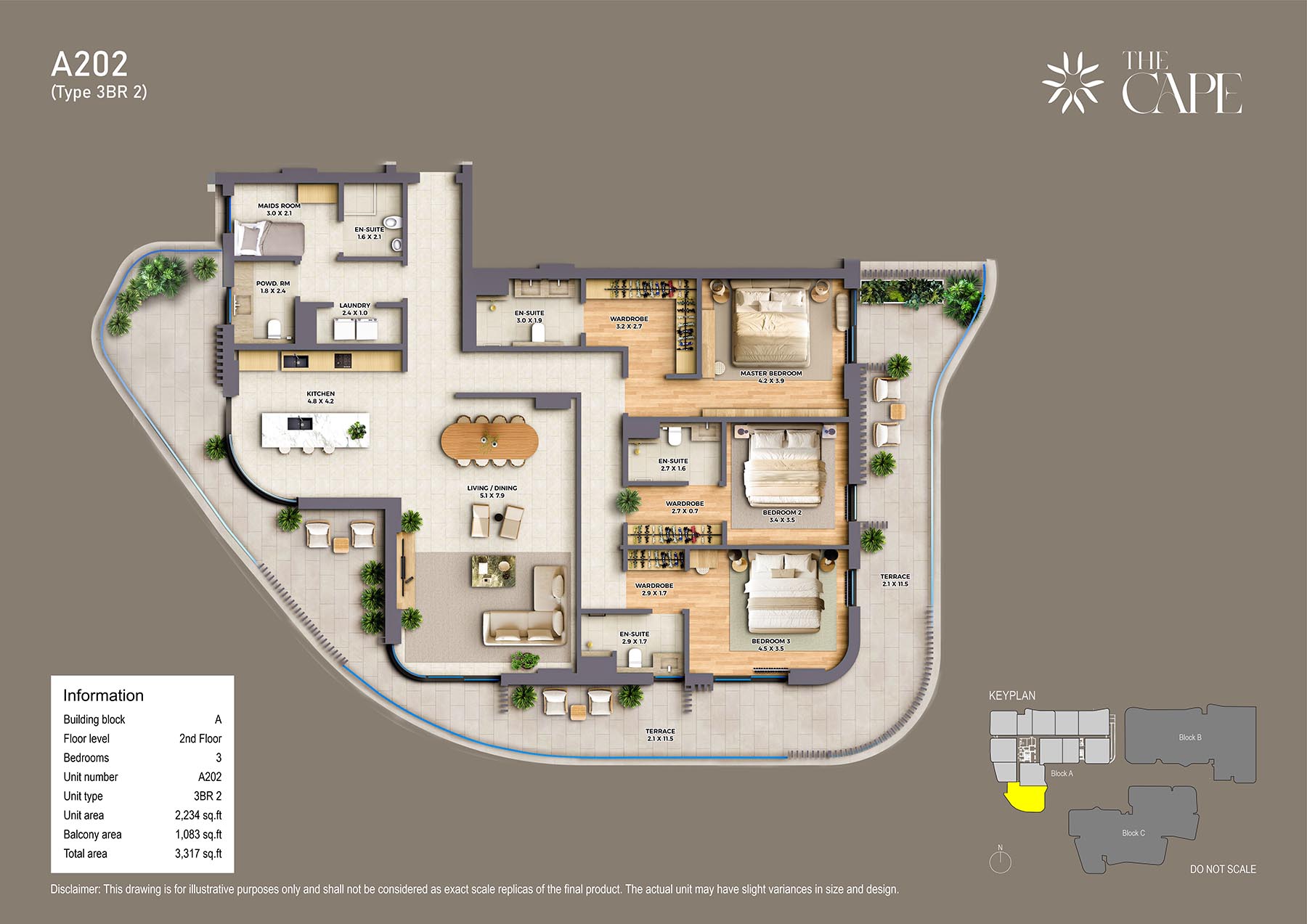 | Block A | 3 Bedrooms + Maid | 2nd Floor Unit-A202 (Type 3BR 2) | 3317.00 Sq Ft | Click Here |