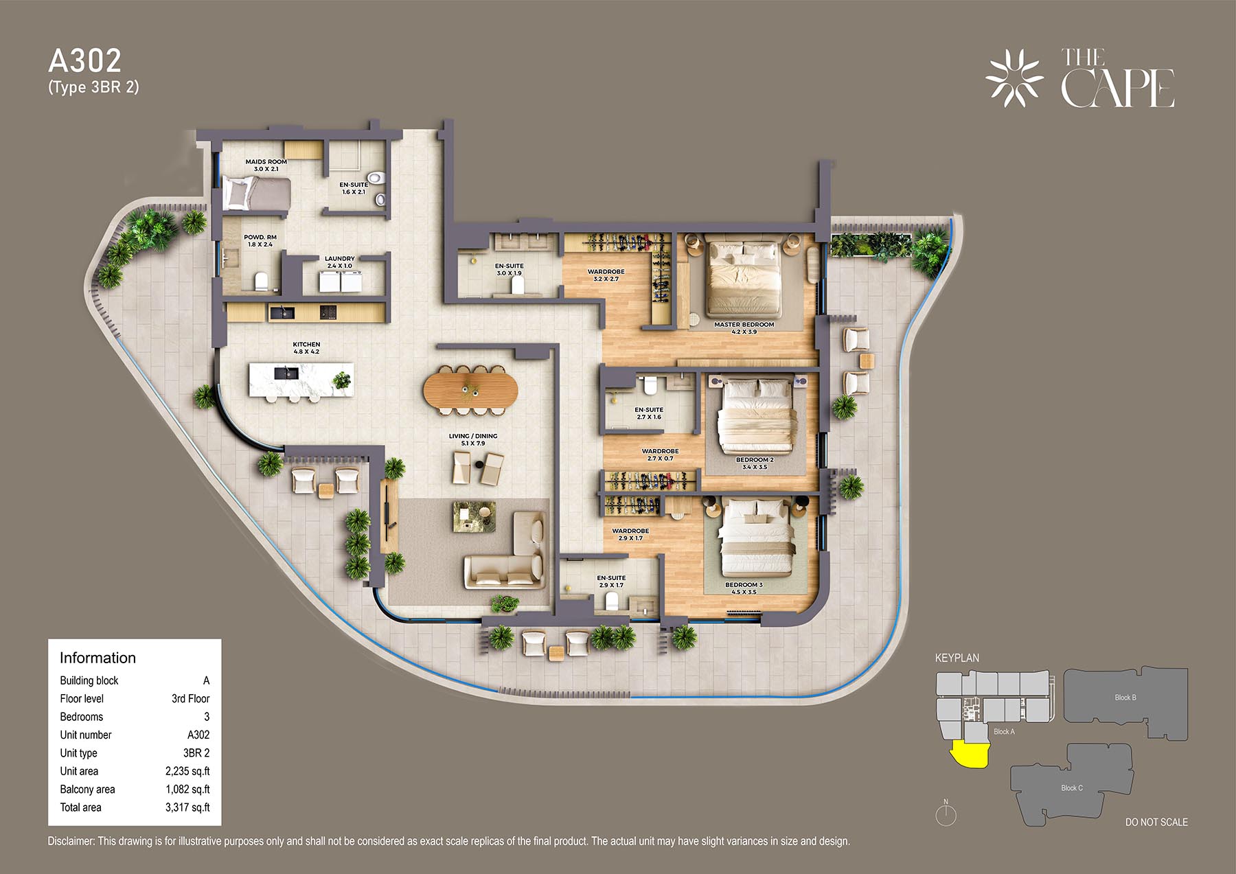 | Block A | 3 Bedrooms + Maid | 3rd Floor Unit-A302 (Type 3BR 2) | 3317.00 Sq Ft | Click Here |